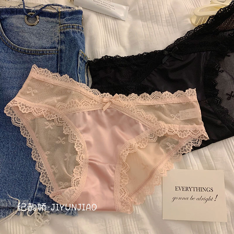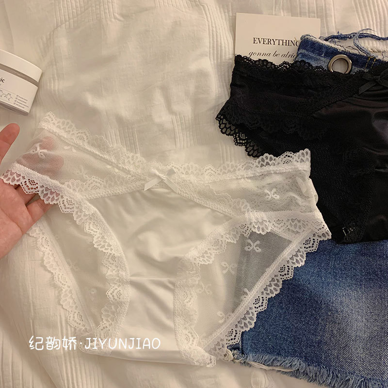 纯欲网纱轻薄蕾丝性感内裤女士低腰交叉冰丝火辣孕妇可穿内裤女
