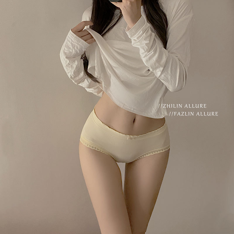 日系奶油少女内裤女士高弹无缝透气中腰甜美简约女士内裤