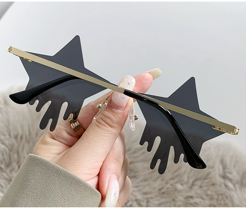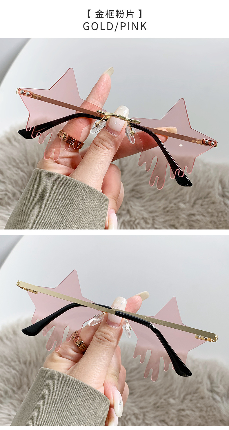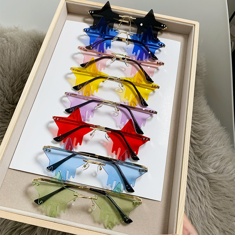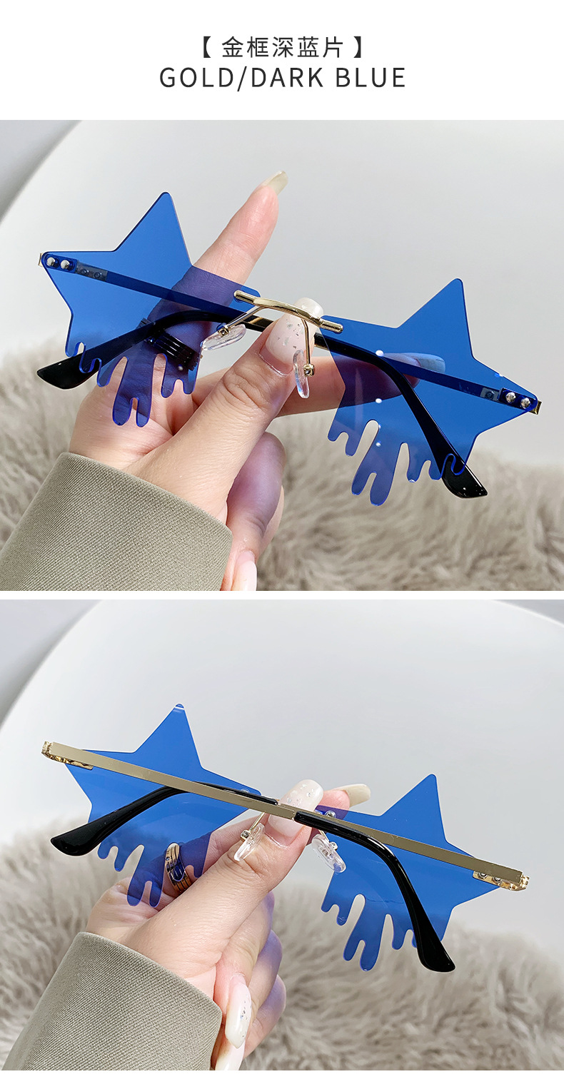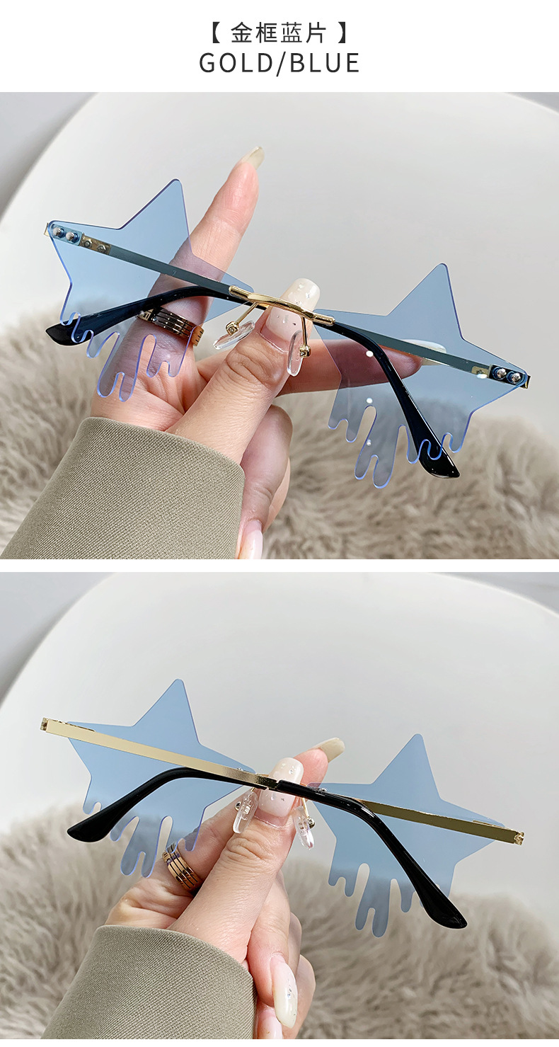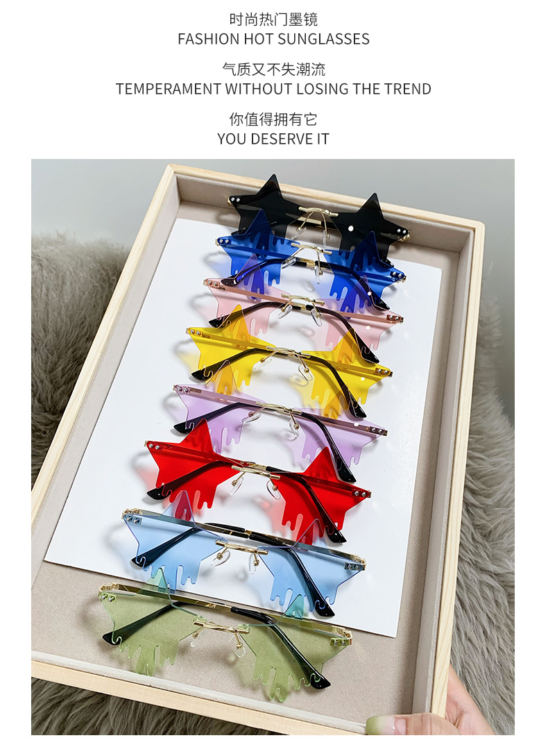 外贸个性五角星水滴造型太阳镜sunglasses无框切边海洋片金属墨镜