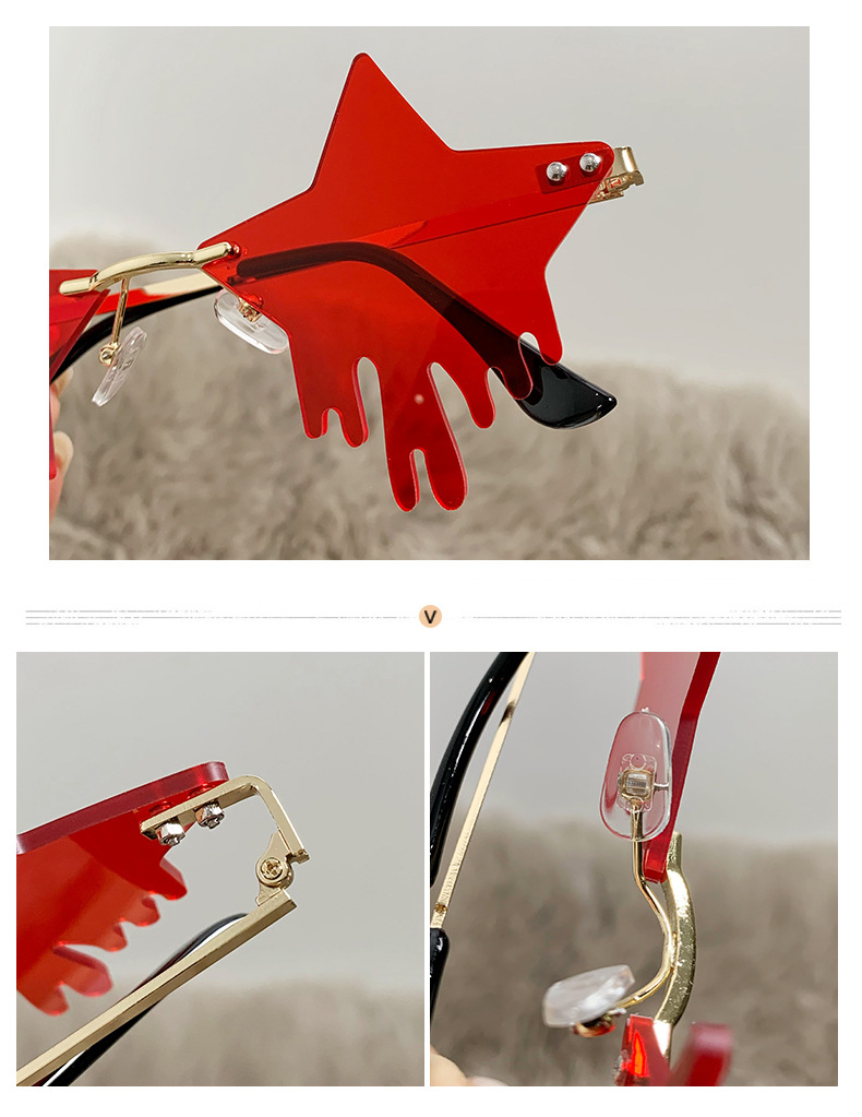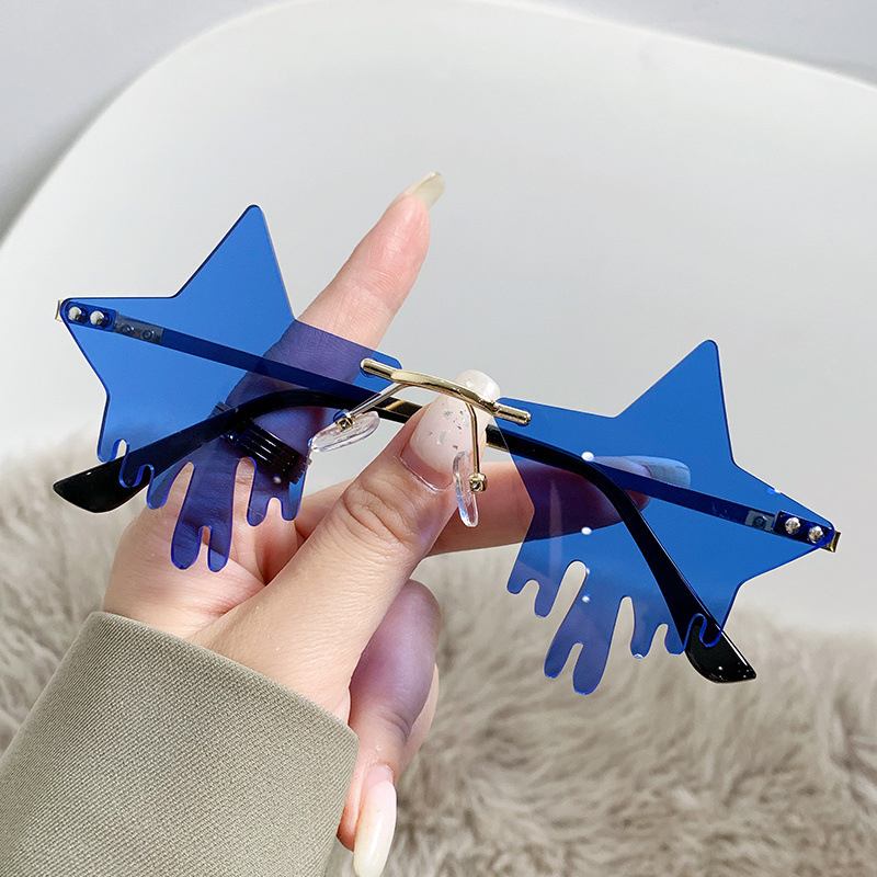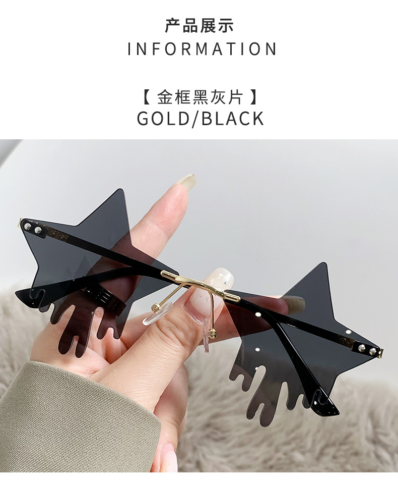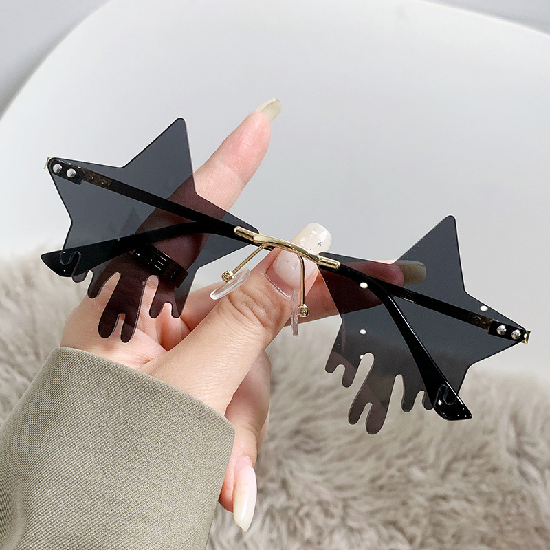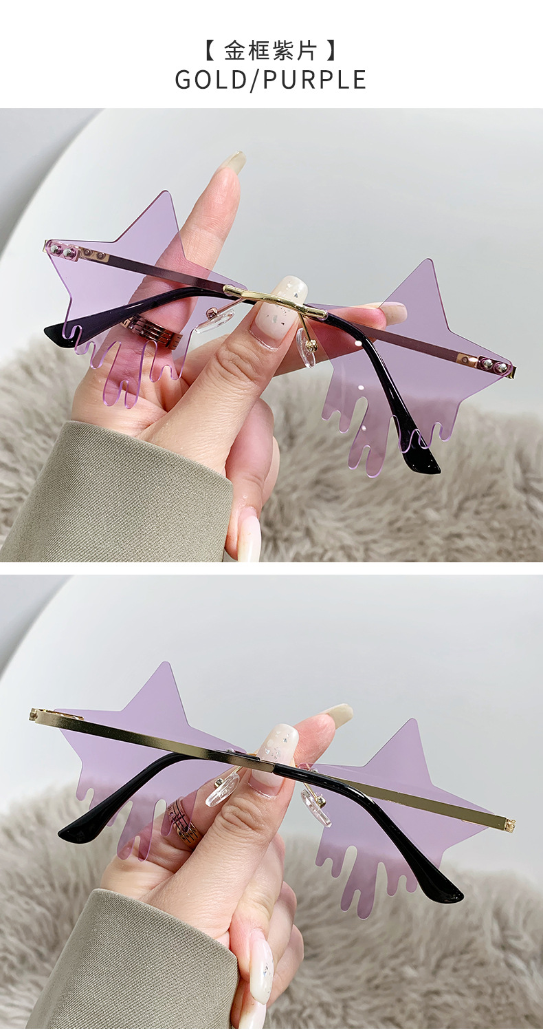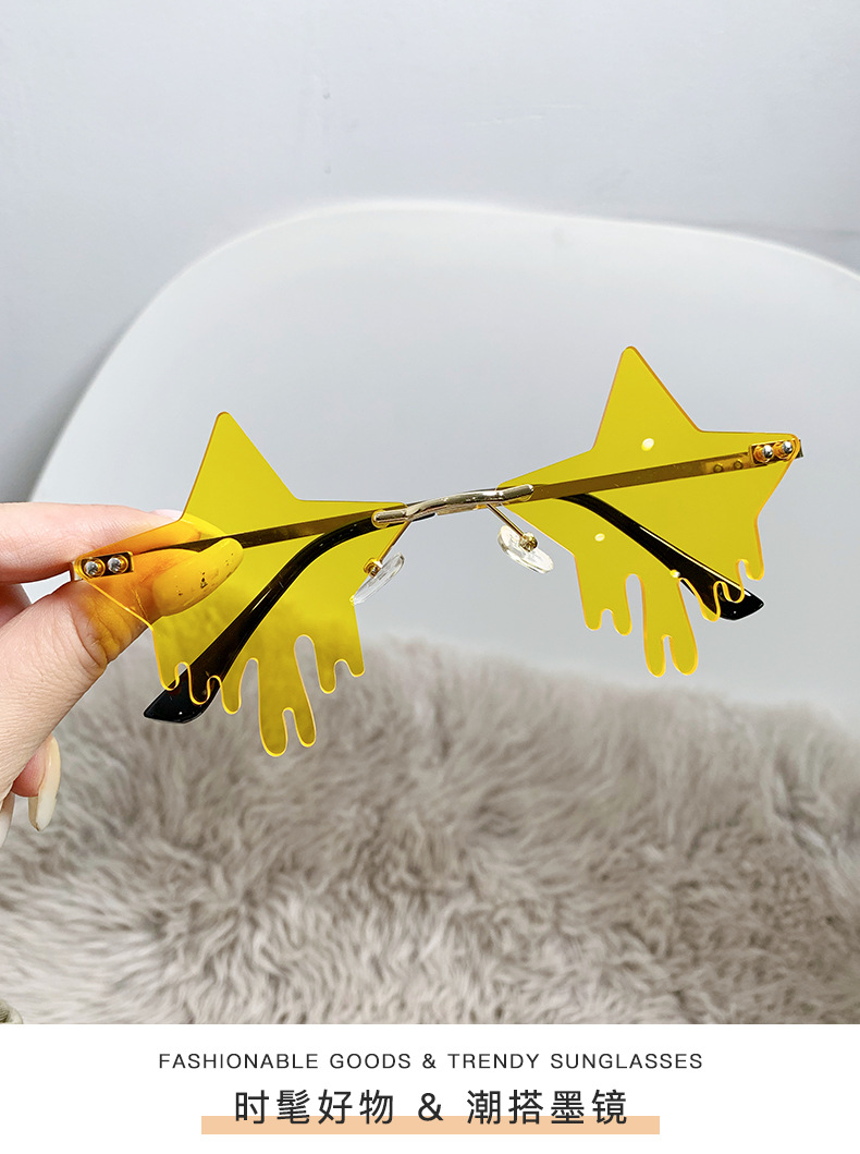 外贸个性五角星水滴造型太阳镜sunglasses无框切边海洋片金属墨镜