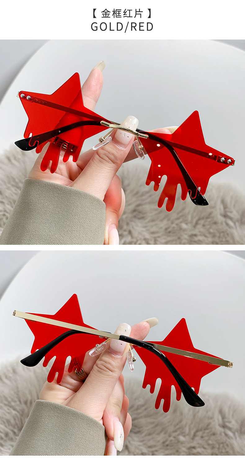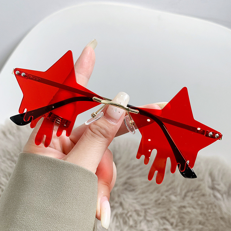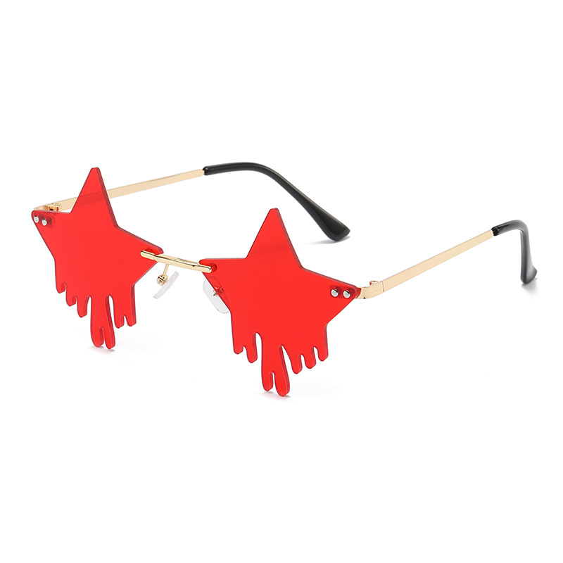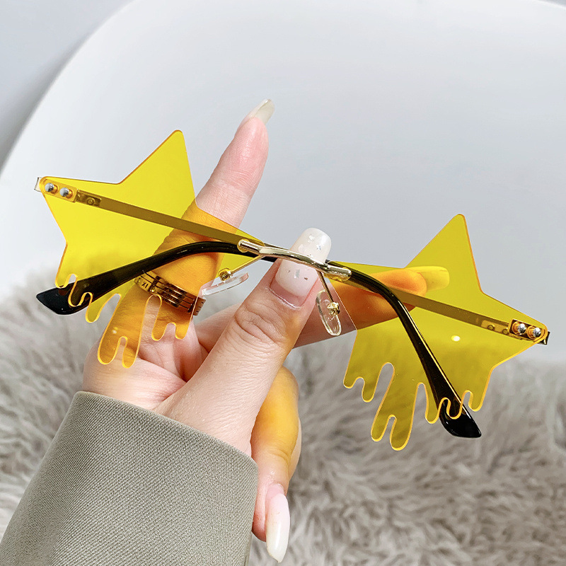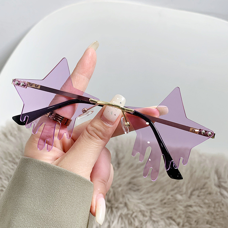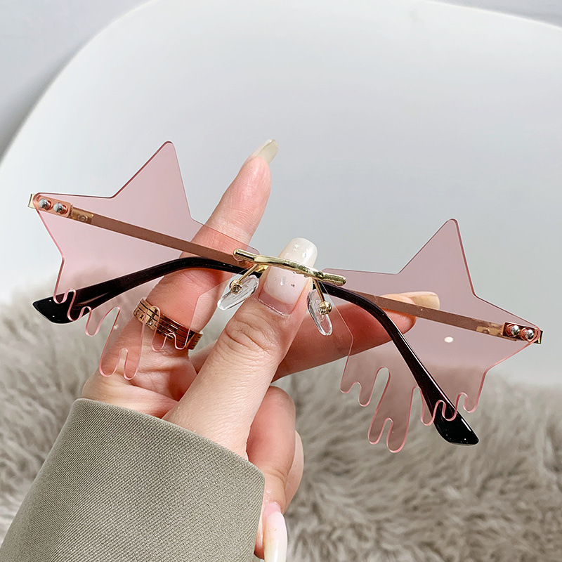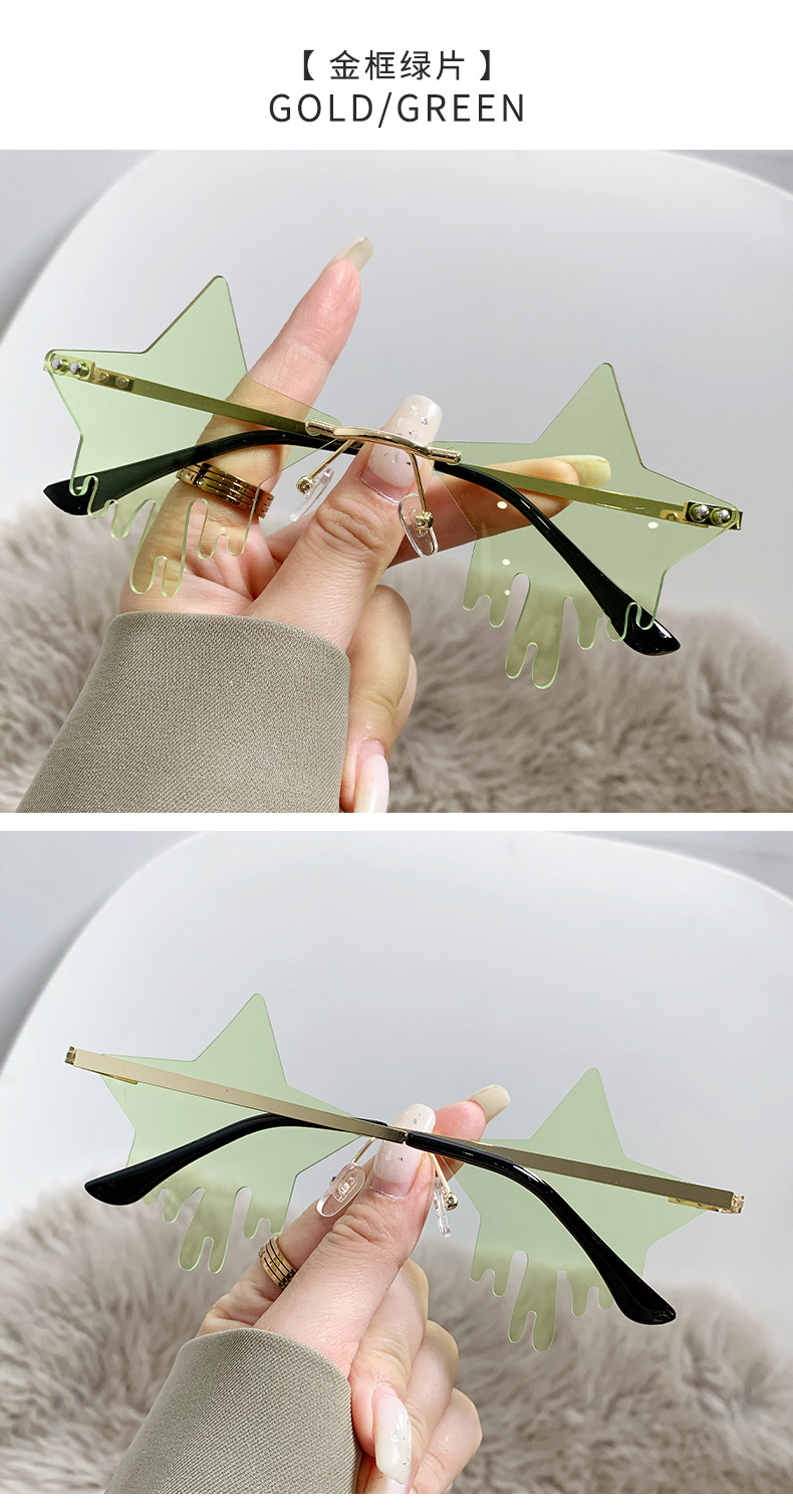 外贸个性五角星水滴造型太阳镜sunglasses无框切边海洋片金属墨镜