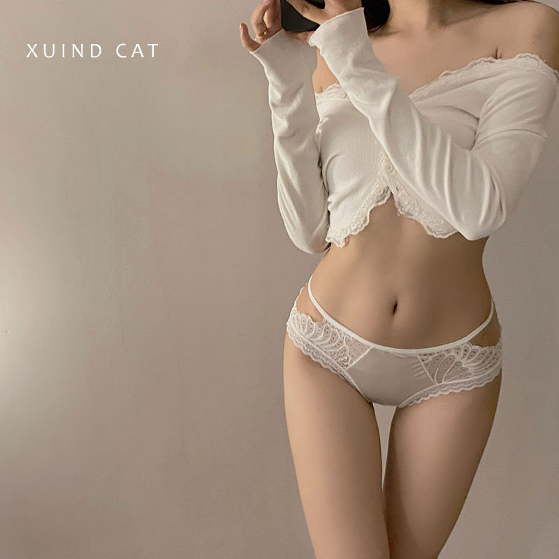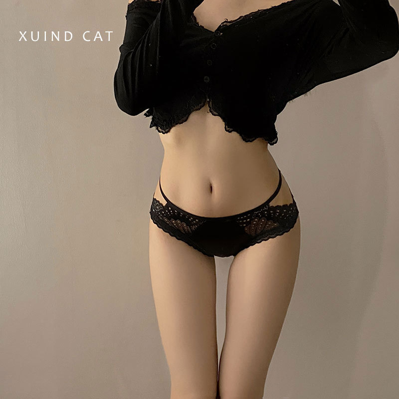 纯欲少女缎面冰丝蕾丝内裤女中腰镂空性感火辣内裤女