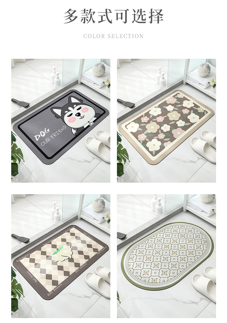 硅藻泥软地垫吸水速干防滑厨房卫生间浴室卧室门口客厅家用脚垫