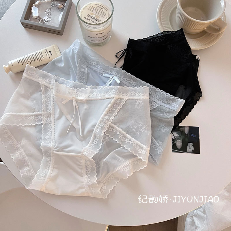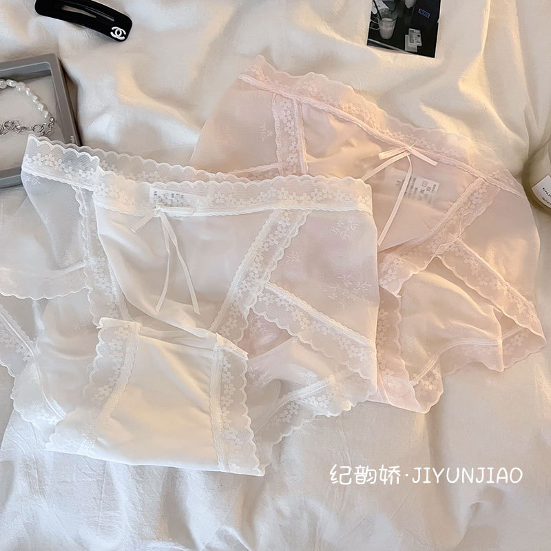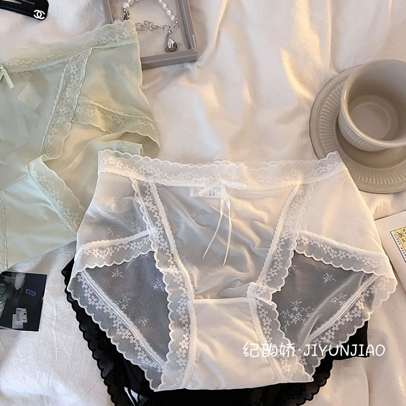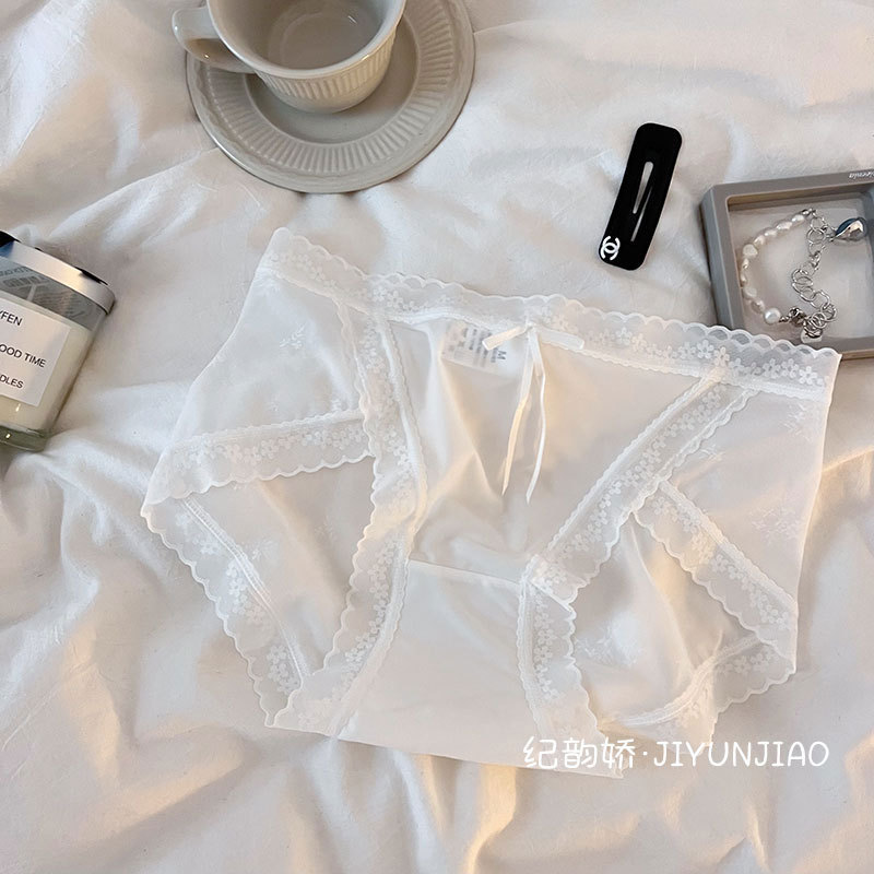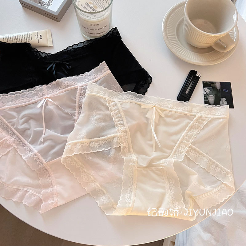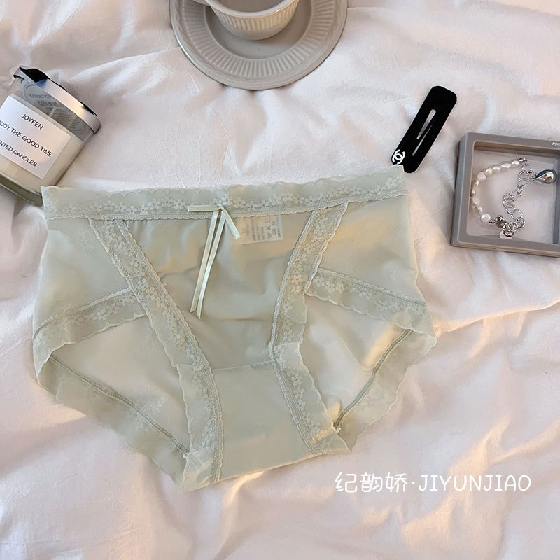 纯欲性感内裤女士中腰冰丝无痕蕾丝网纱甜美日系少女内裤女