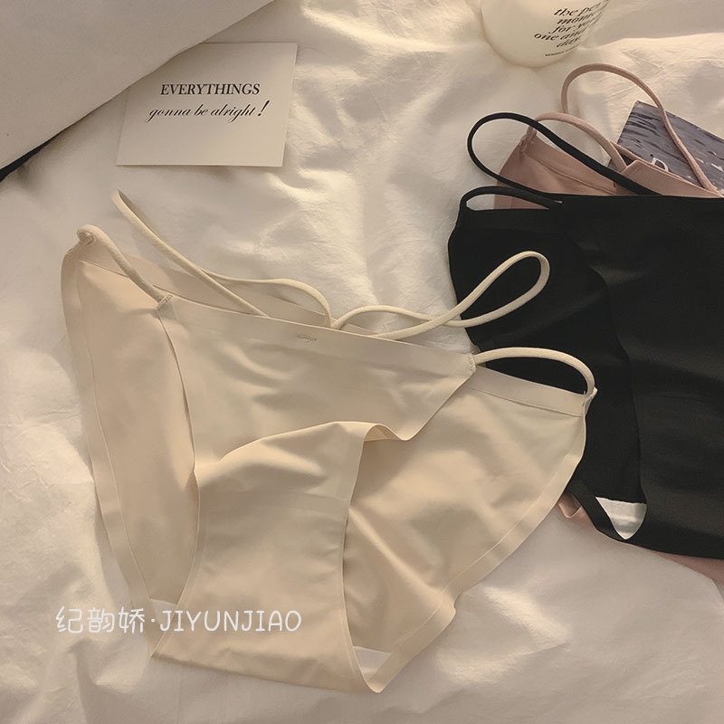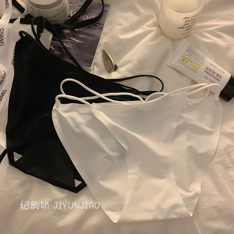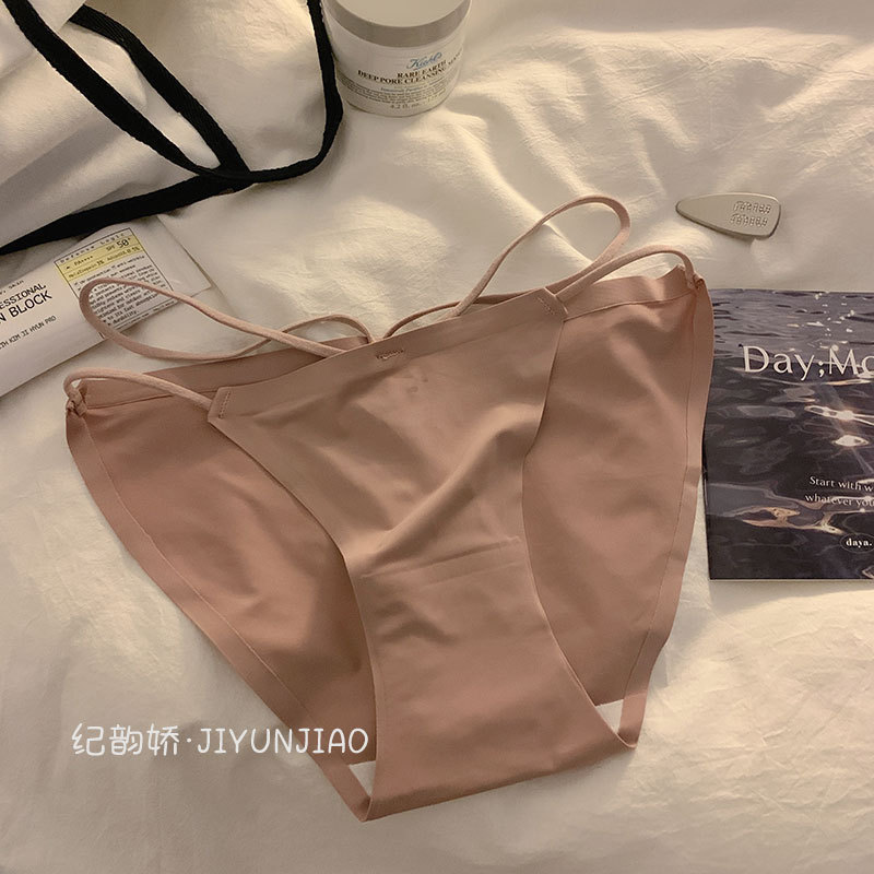 性感少女交叉内裤女士火辣冰丝无痕甜美小心机透气简约女生内裤女