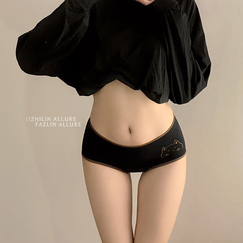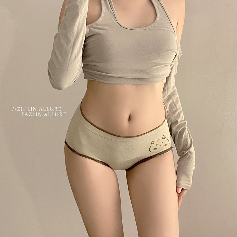 日系可爱小猫咪内裤女士少女中腰无缝高弹纯棉裆透气内裤女