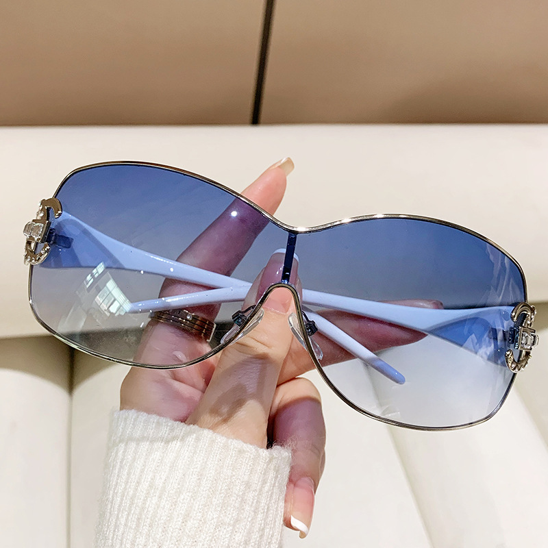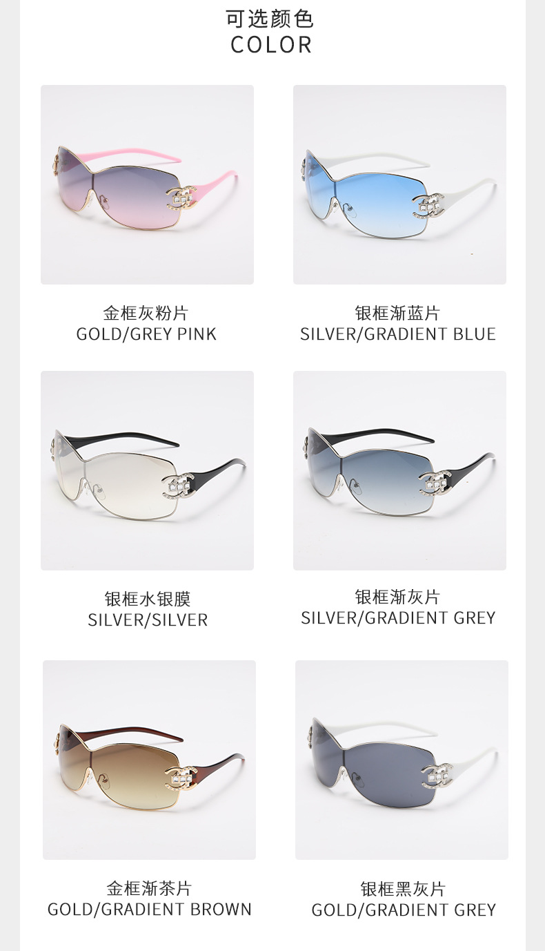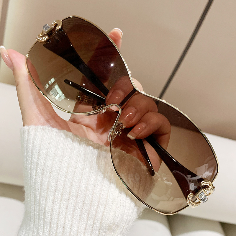 镶钻欧美时尚太阳镜女 2024新款金属连体女士墨镜凹造型眼镜批发
