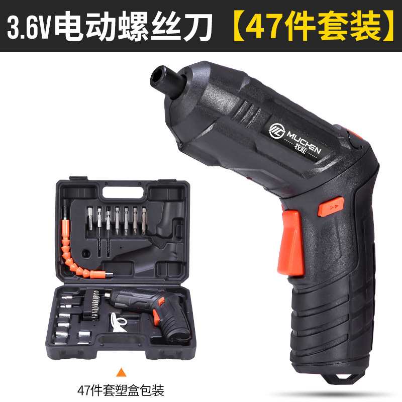 3.6v电动螺丝刀 家用电动塑盒套装起子 充电式迷你螺丝刀47套批发