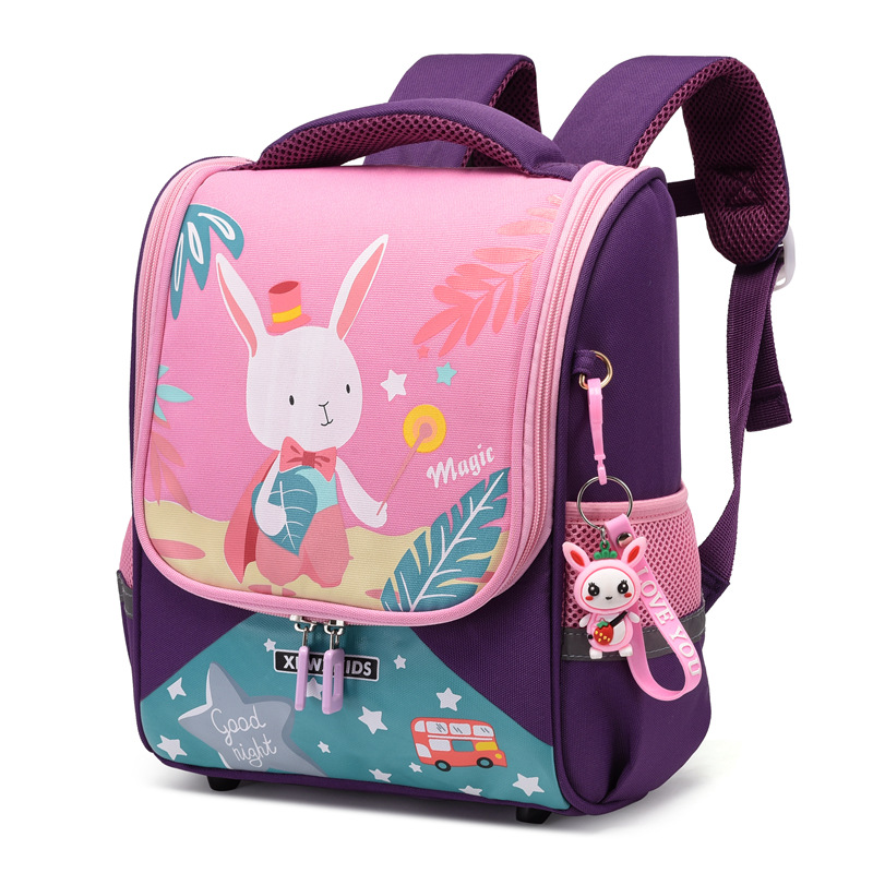 可爱卡通幼儿园书包3-6岁儿童轻便护脊小兔子双肩太空背包带挂件