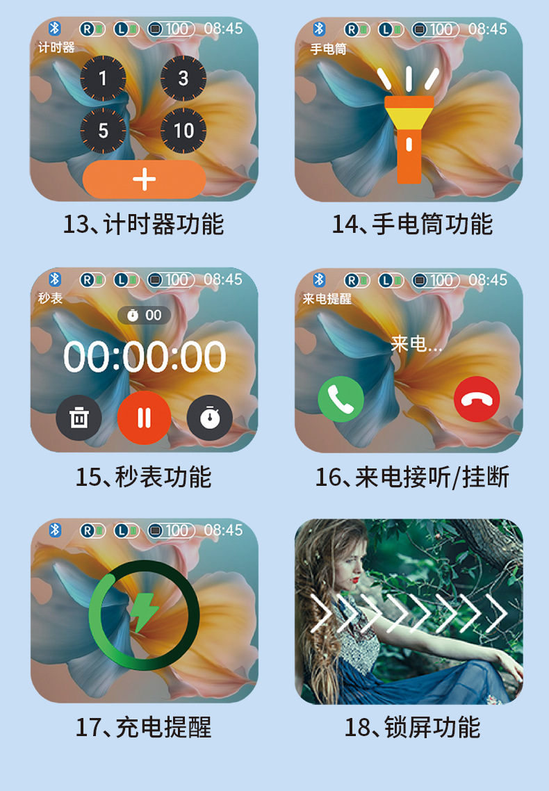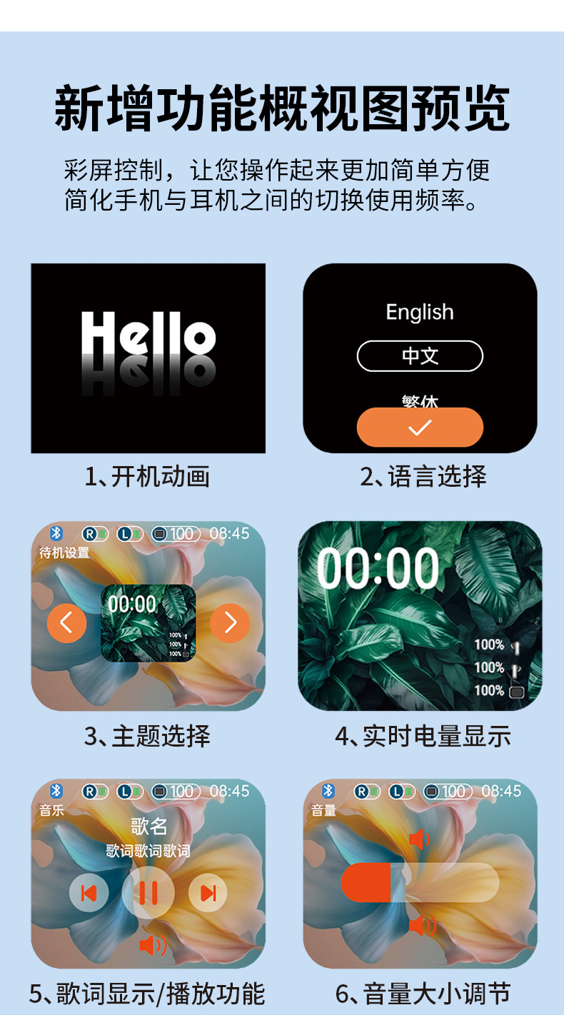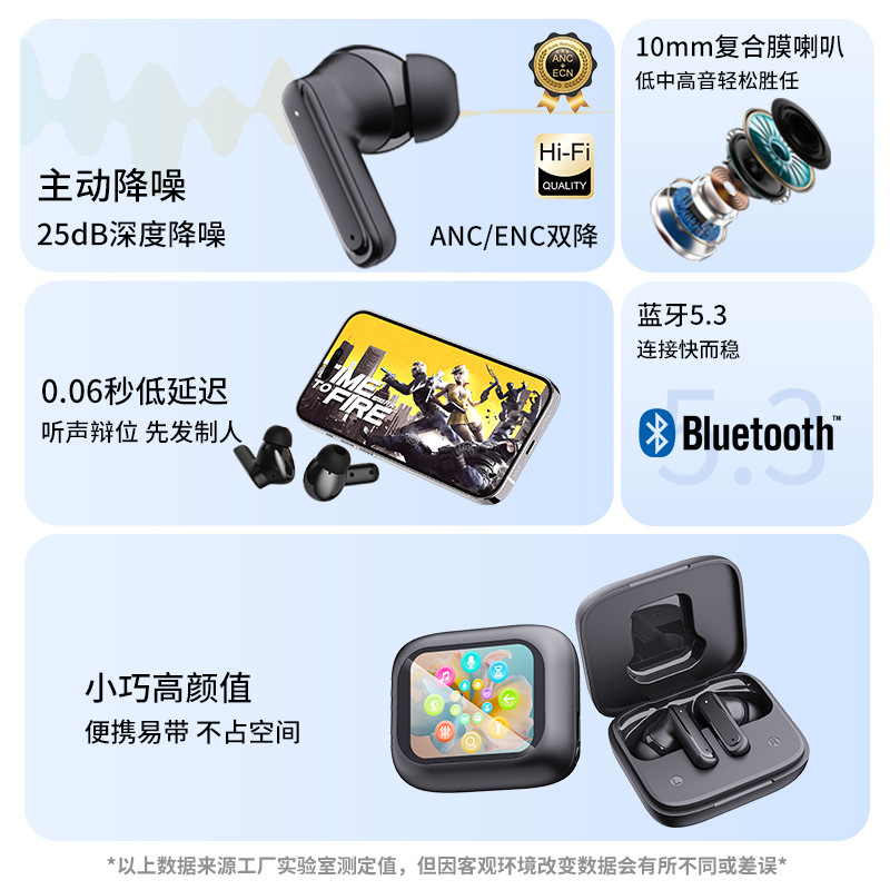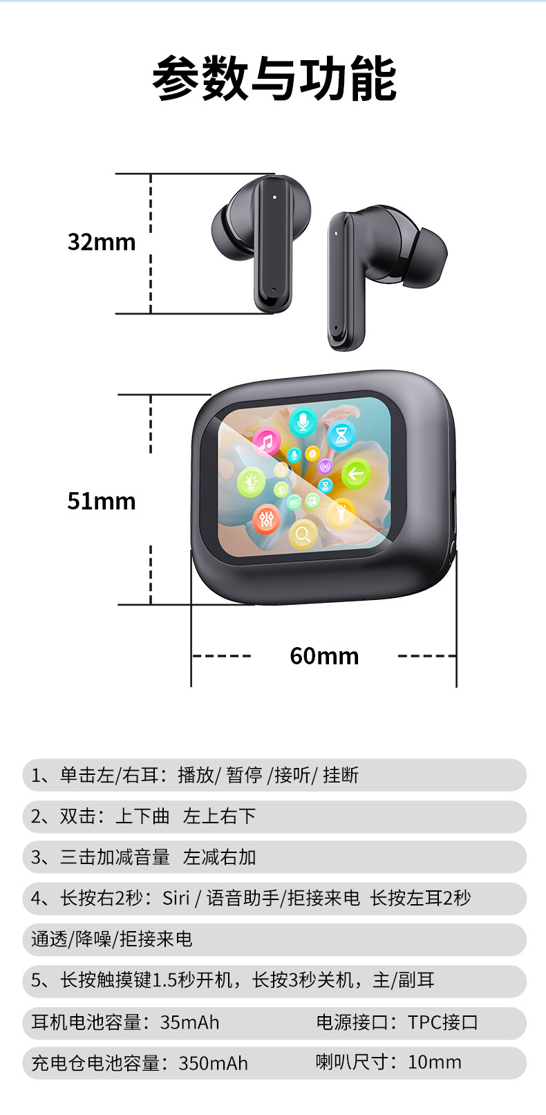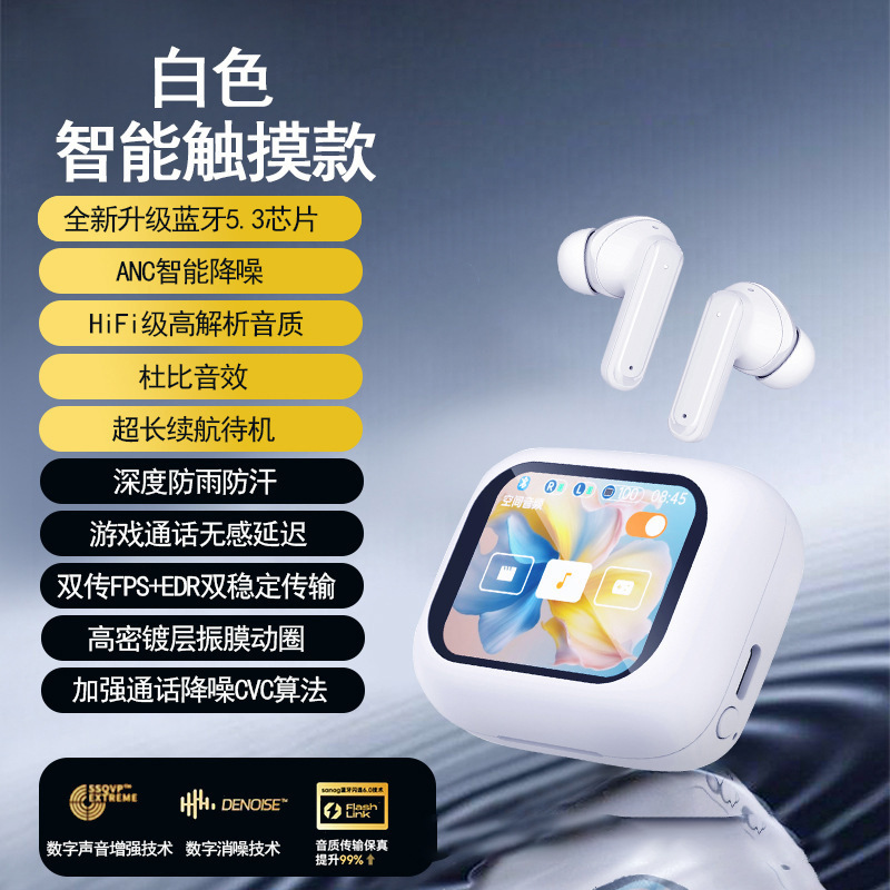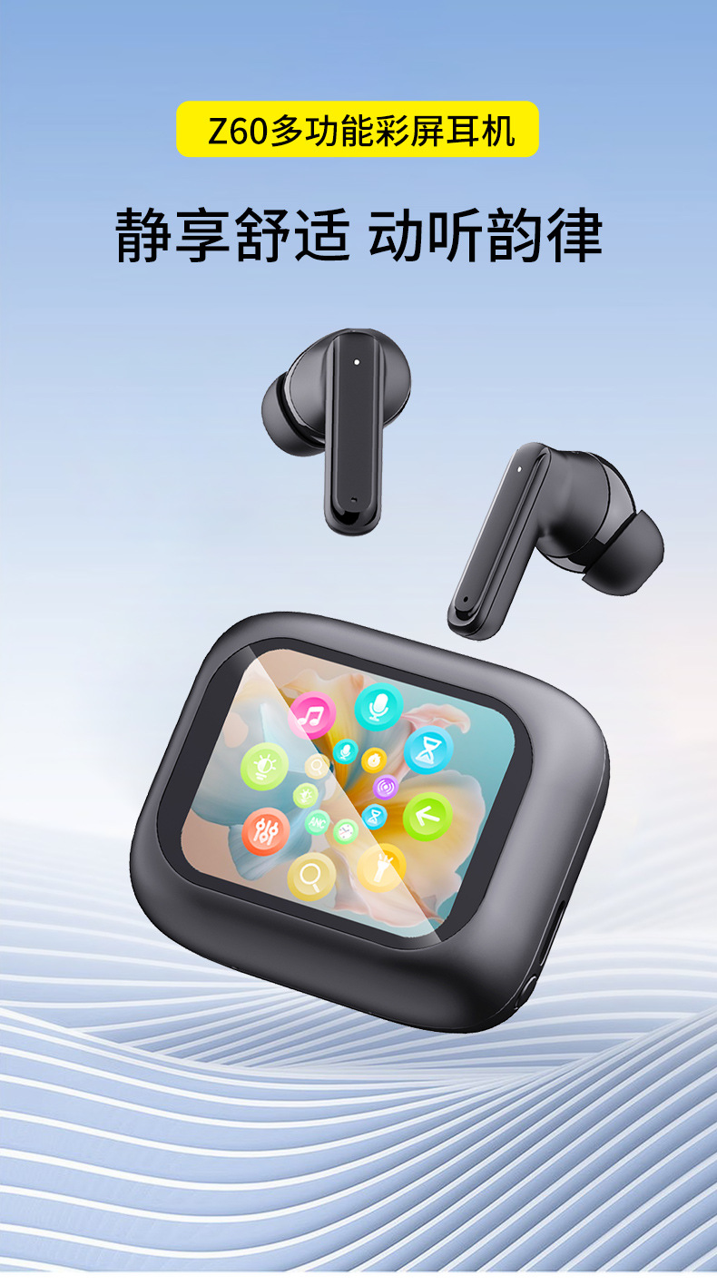 2024年爆款Z60无线蓝牙耳机LCD大屏全彩智能触摸屏入耳式ANC ENC
