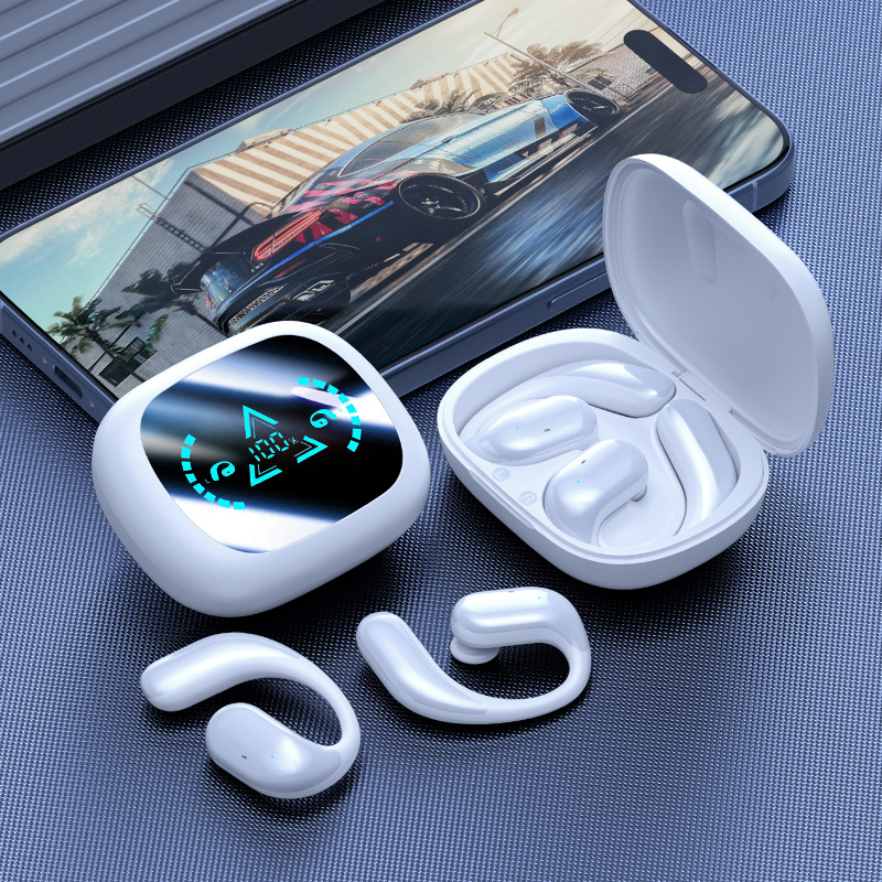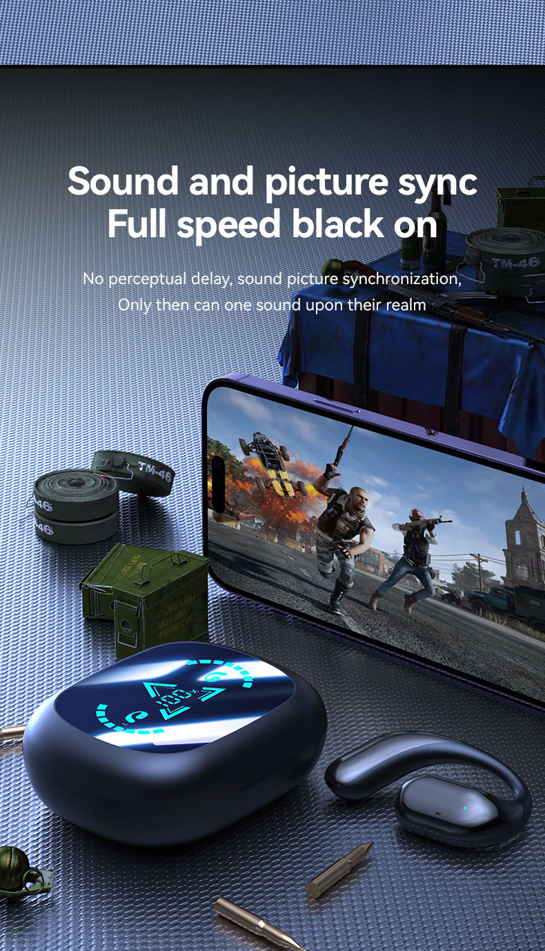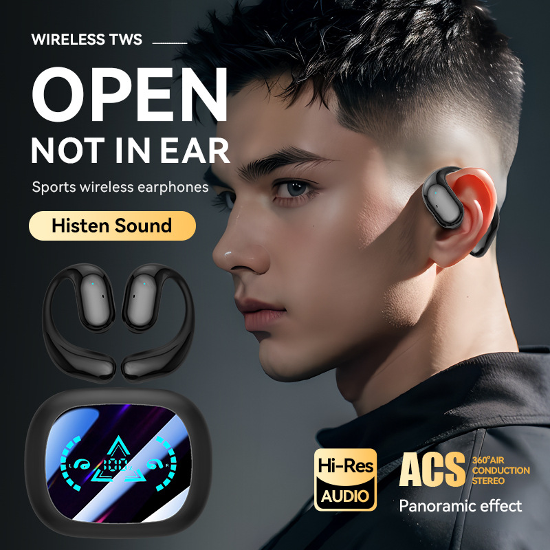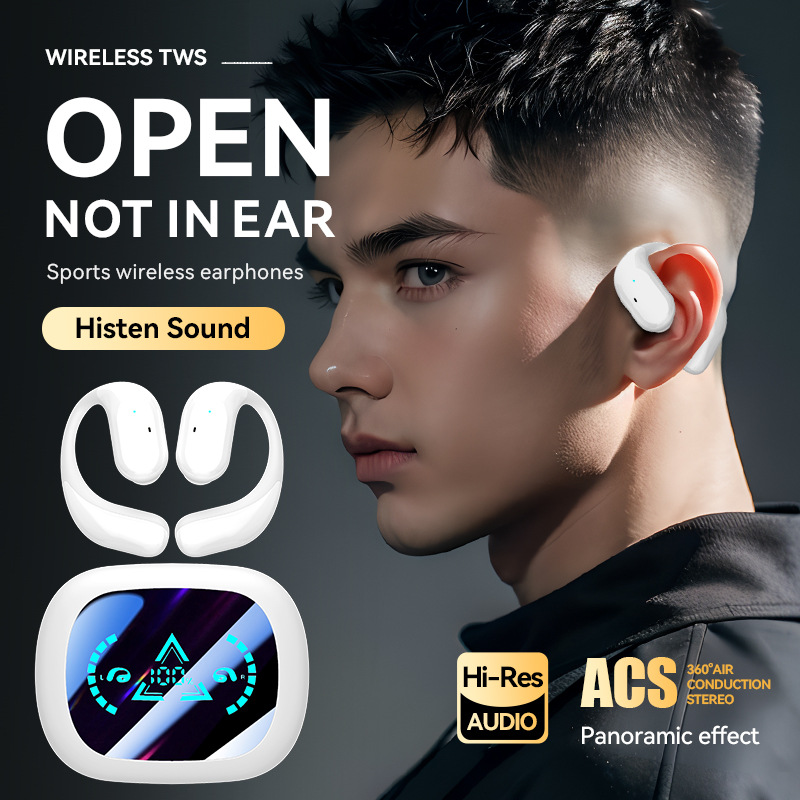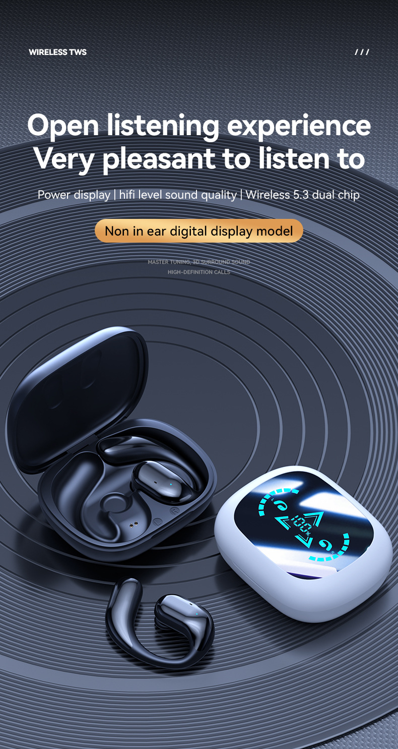 2024跨境新款OWS挂耳式蓝牙耳机M64不入耳高音质镜面数显降噪耳机