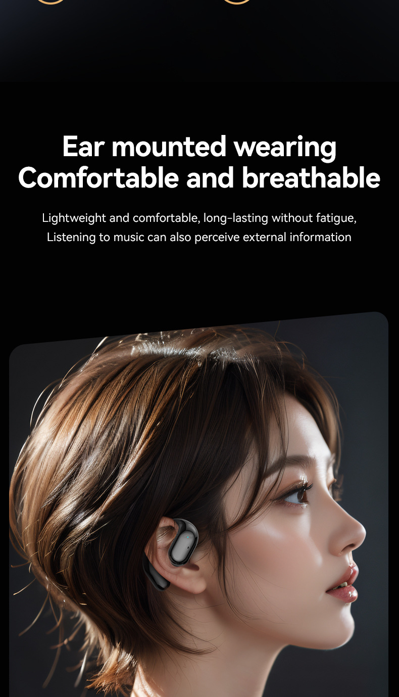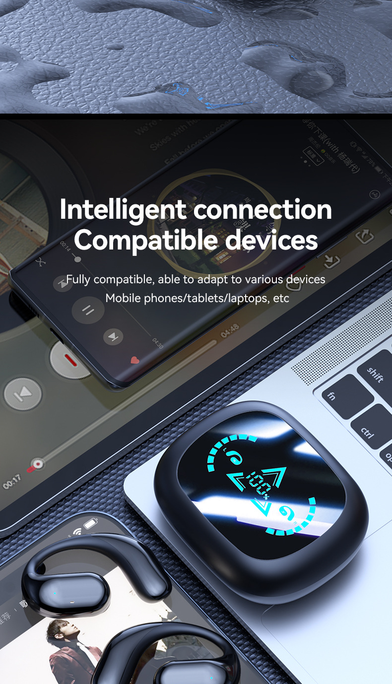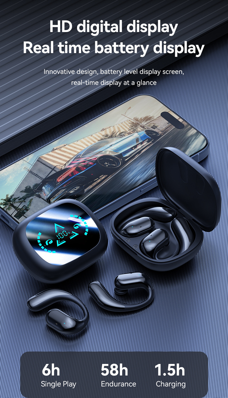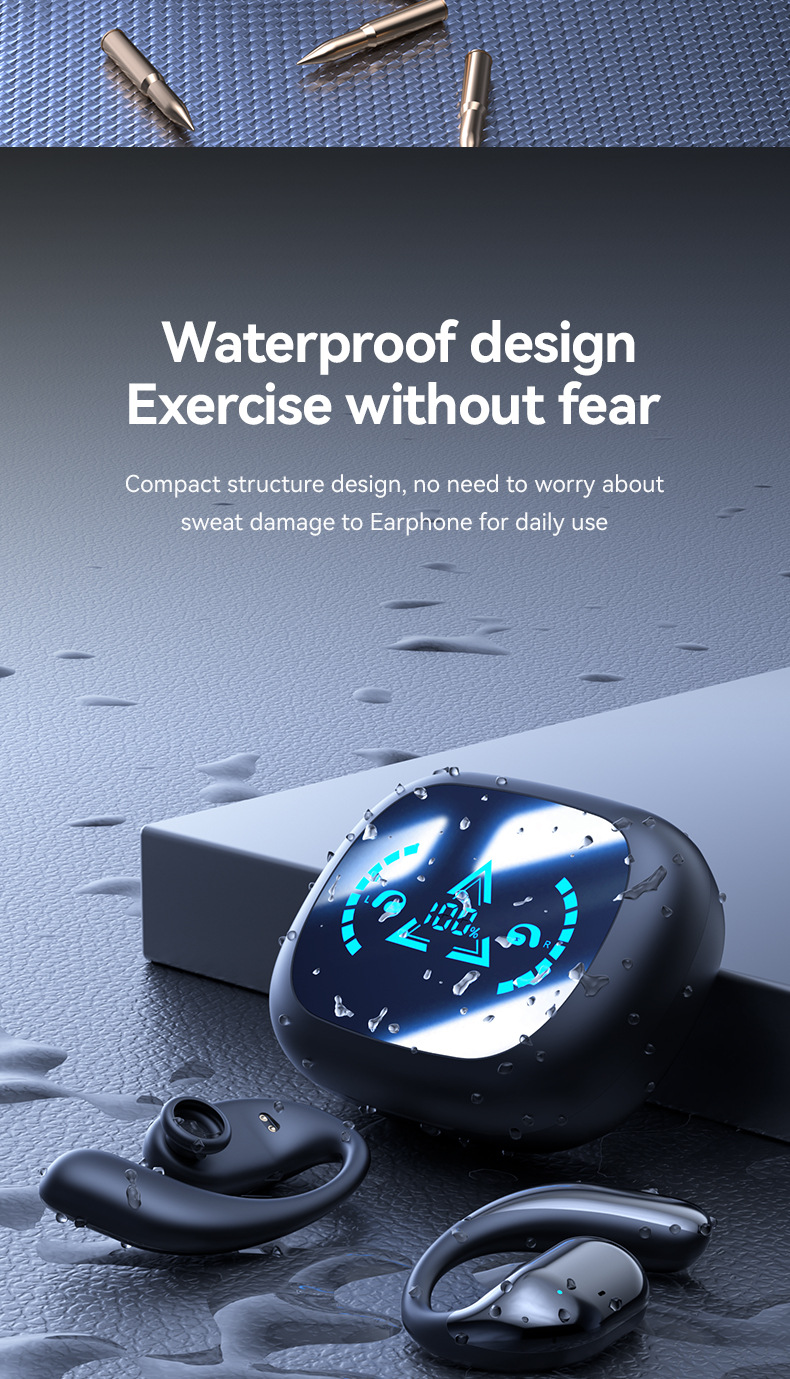2024跨境新款OWS挂耳式蓝牙耳机M64不入耳高音质镜面数显降噪耳机