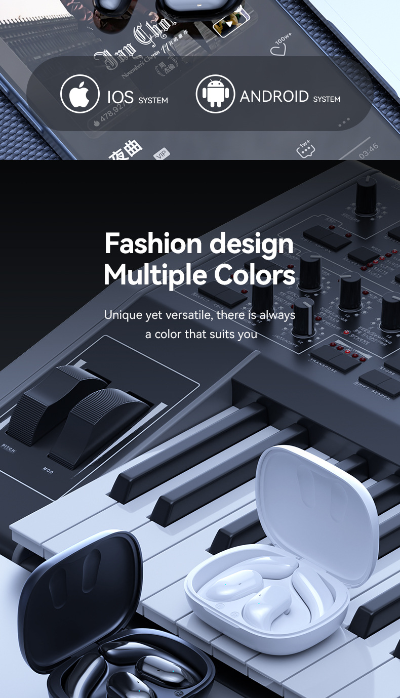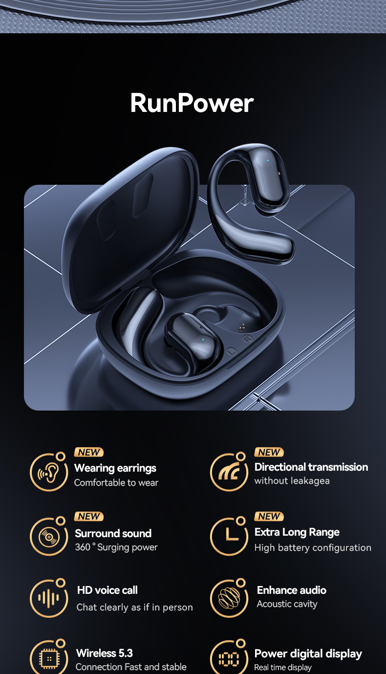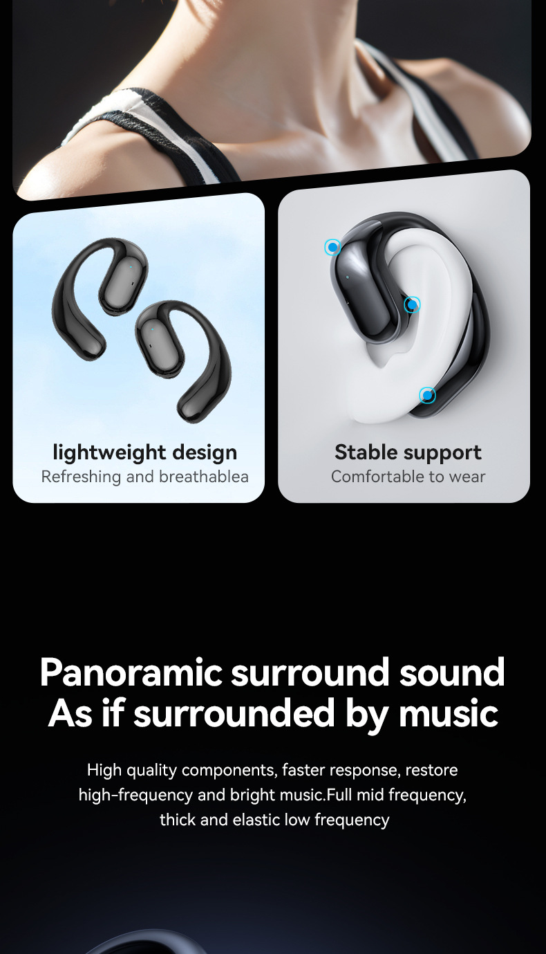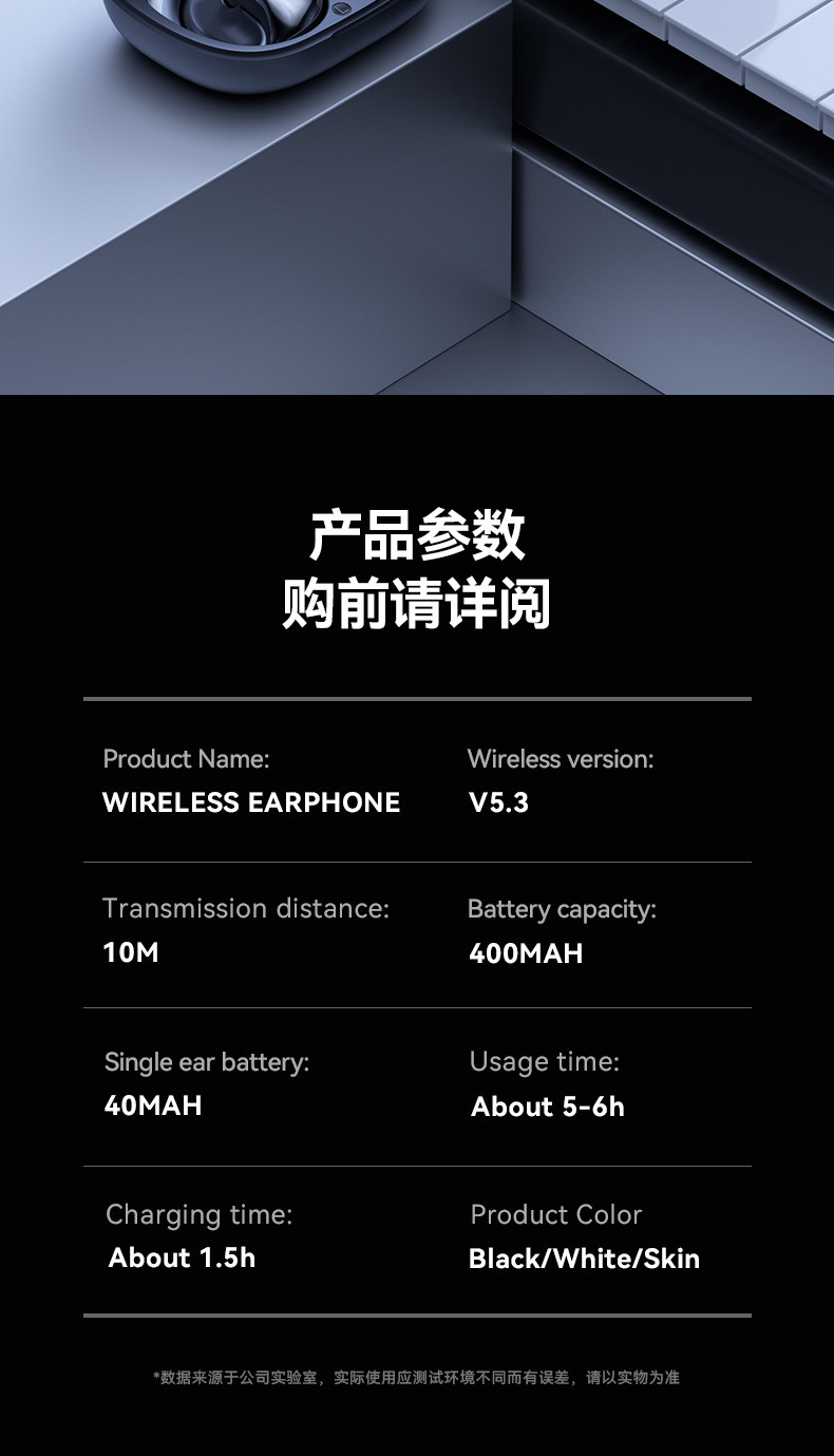 2024跨境新款OWS挂耳式蓝牙耳机M64不入耳高音质镜面数显降噪耳机