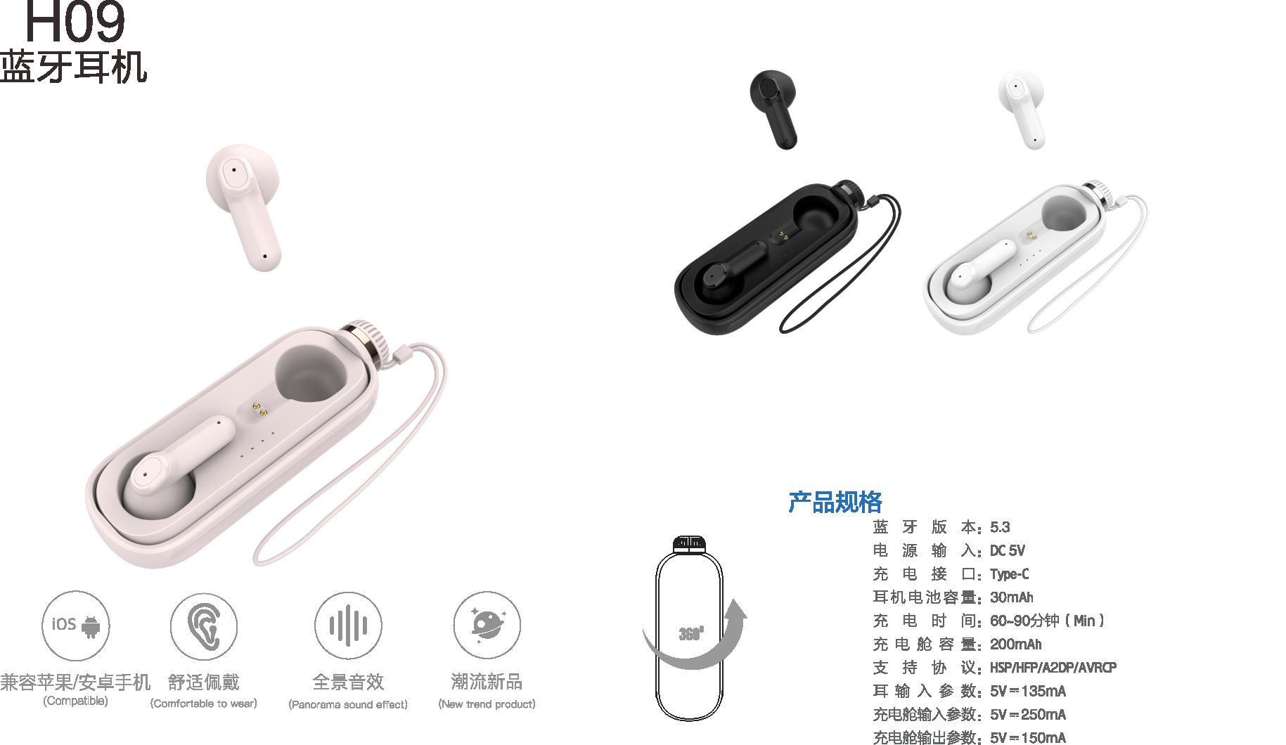 2023年新款降噪H09TWS酒瓶无线蓝牙耳机降噪运动游戏长续航高颜值