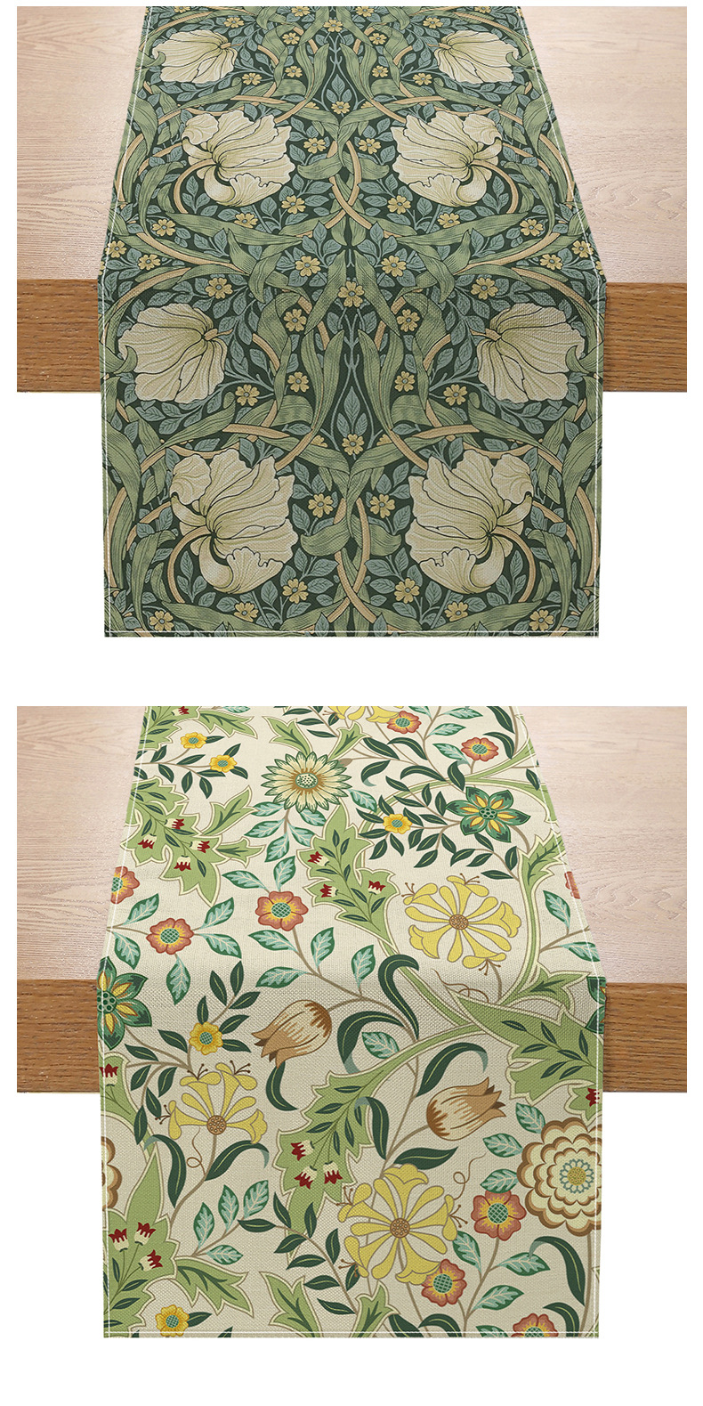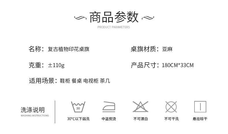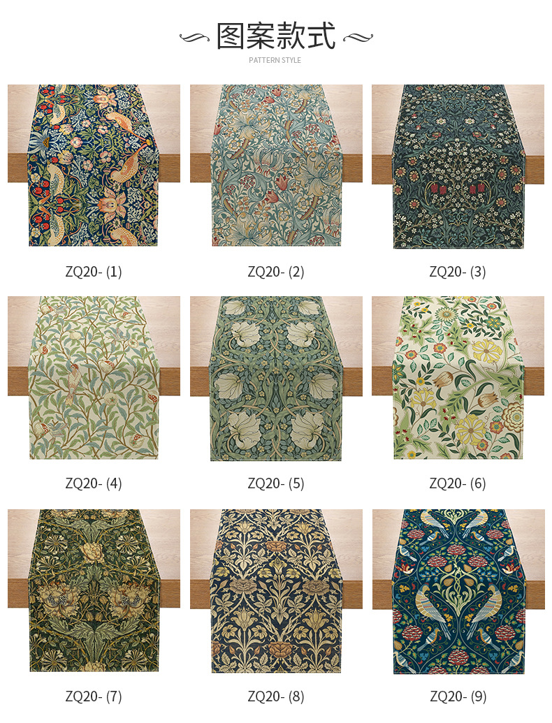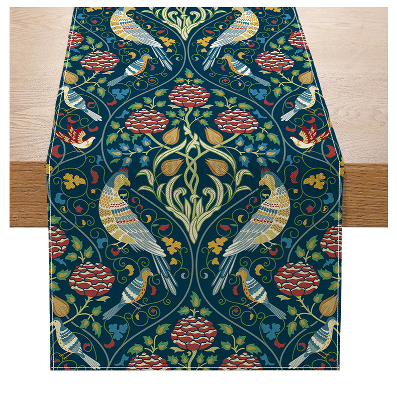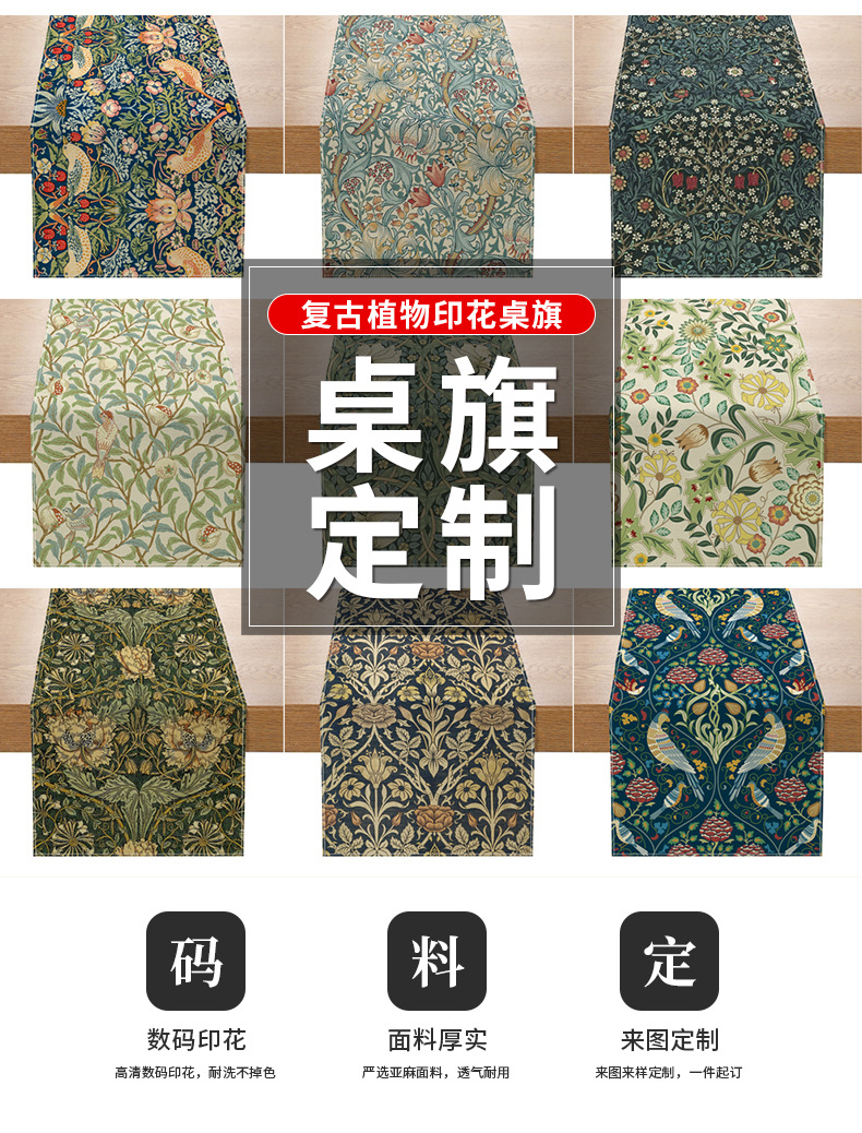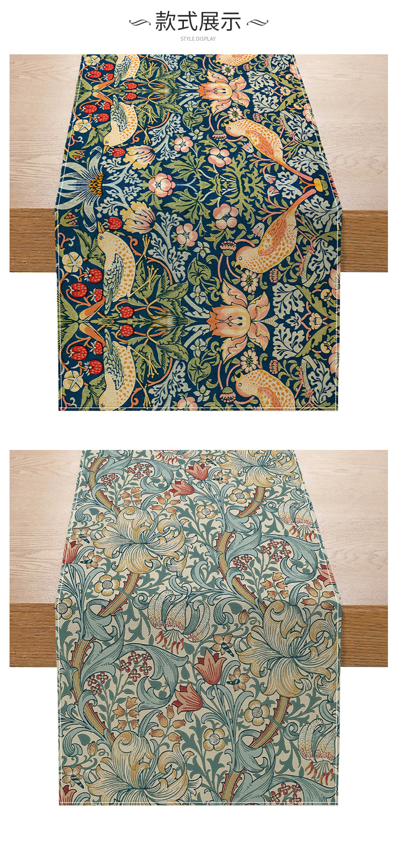 亚马逊印花桌旗复古植物亚麻小桌布厨房餐桌玄关装饰茶几台布批发