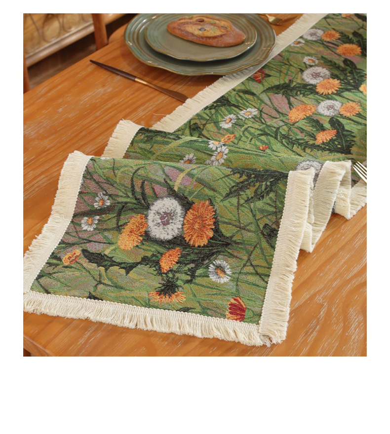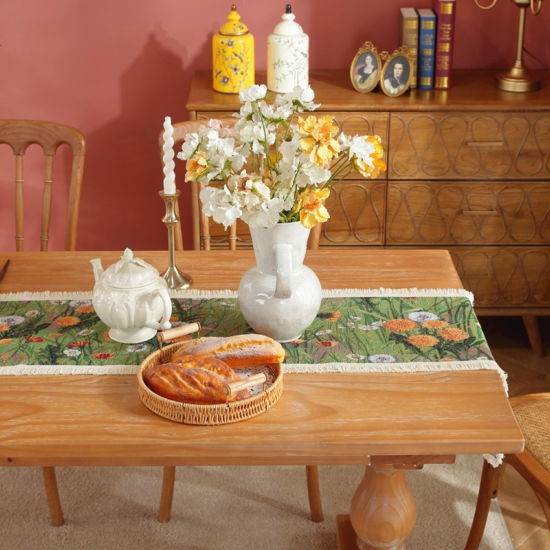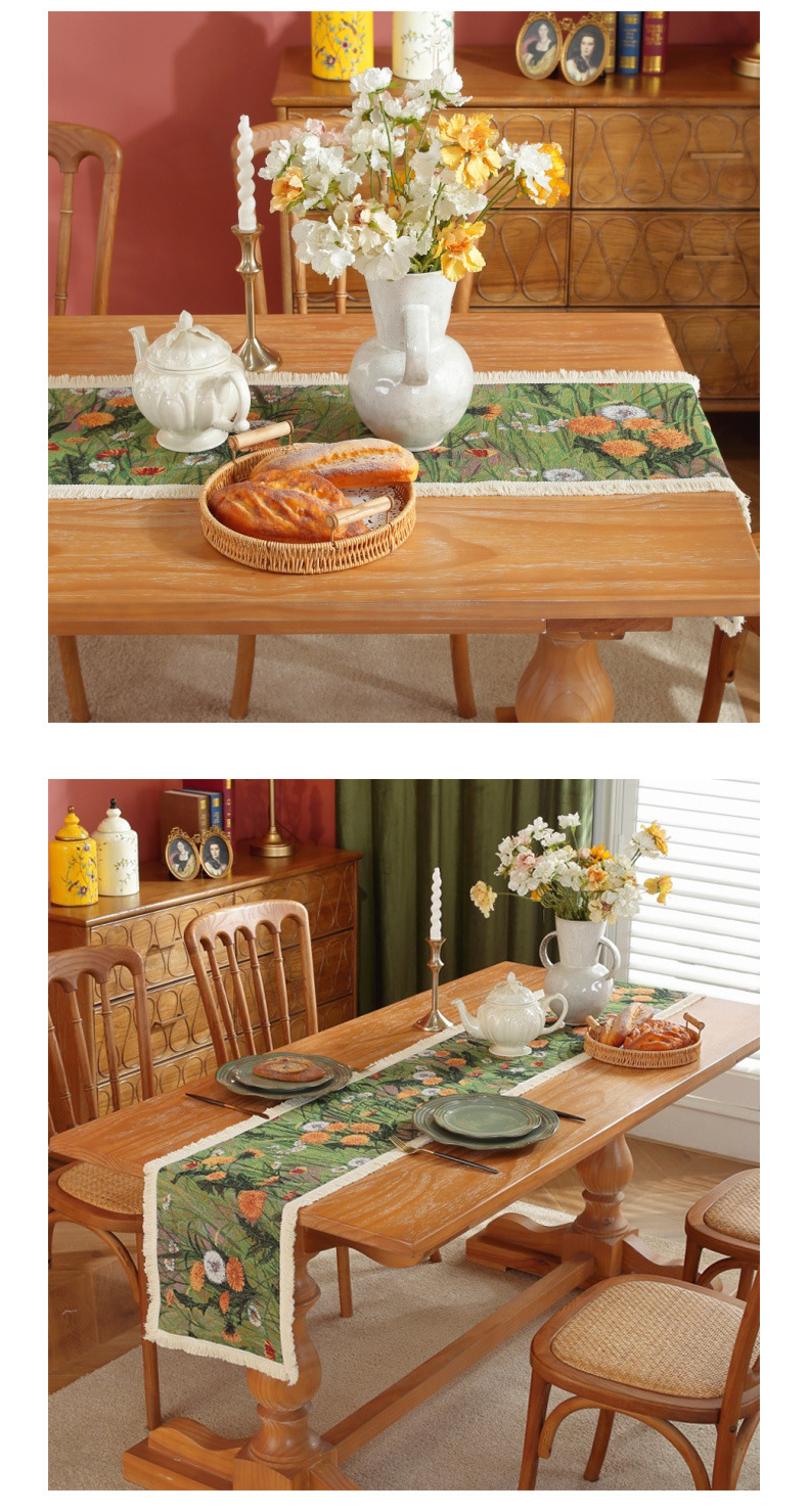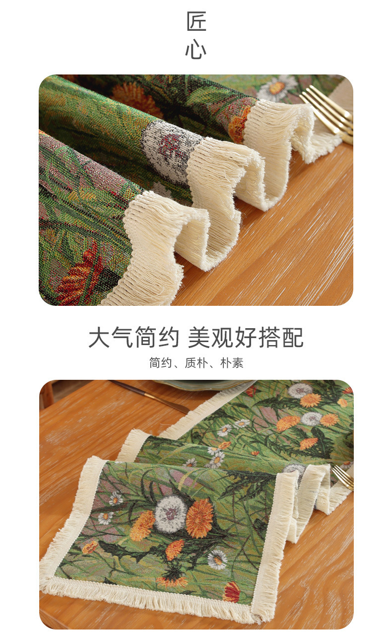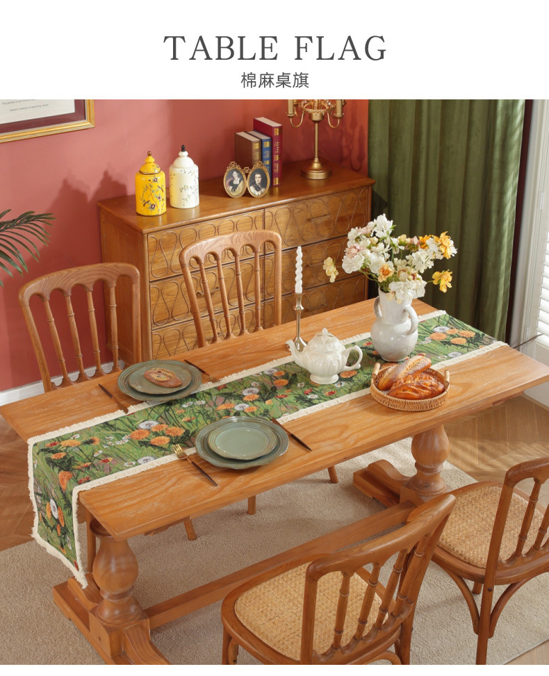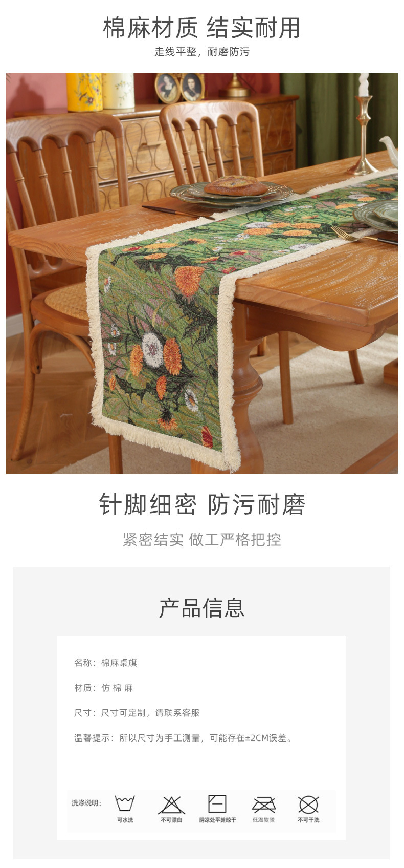 跨境派对餐桌长条布玄关柜盖布装饰美式提花流苏桌旗棉麻批发代发