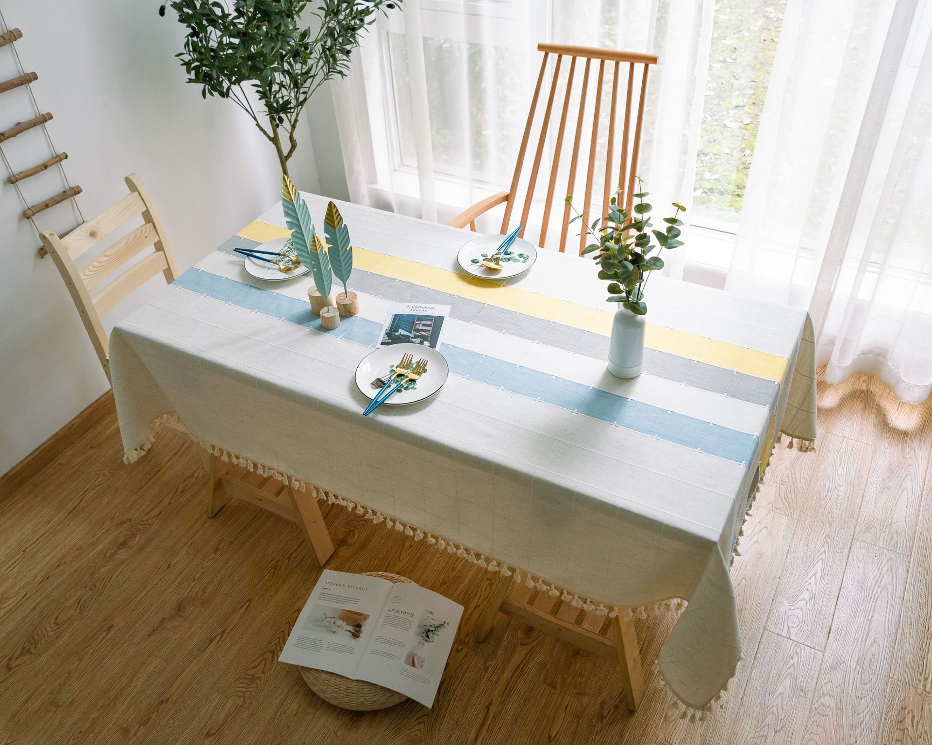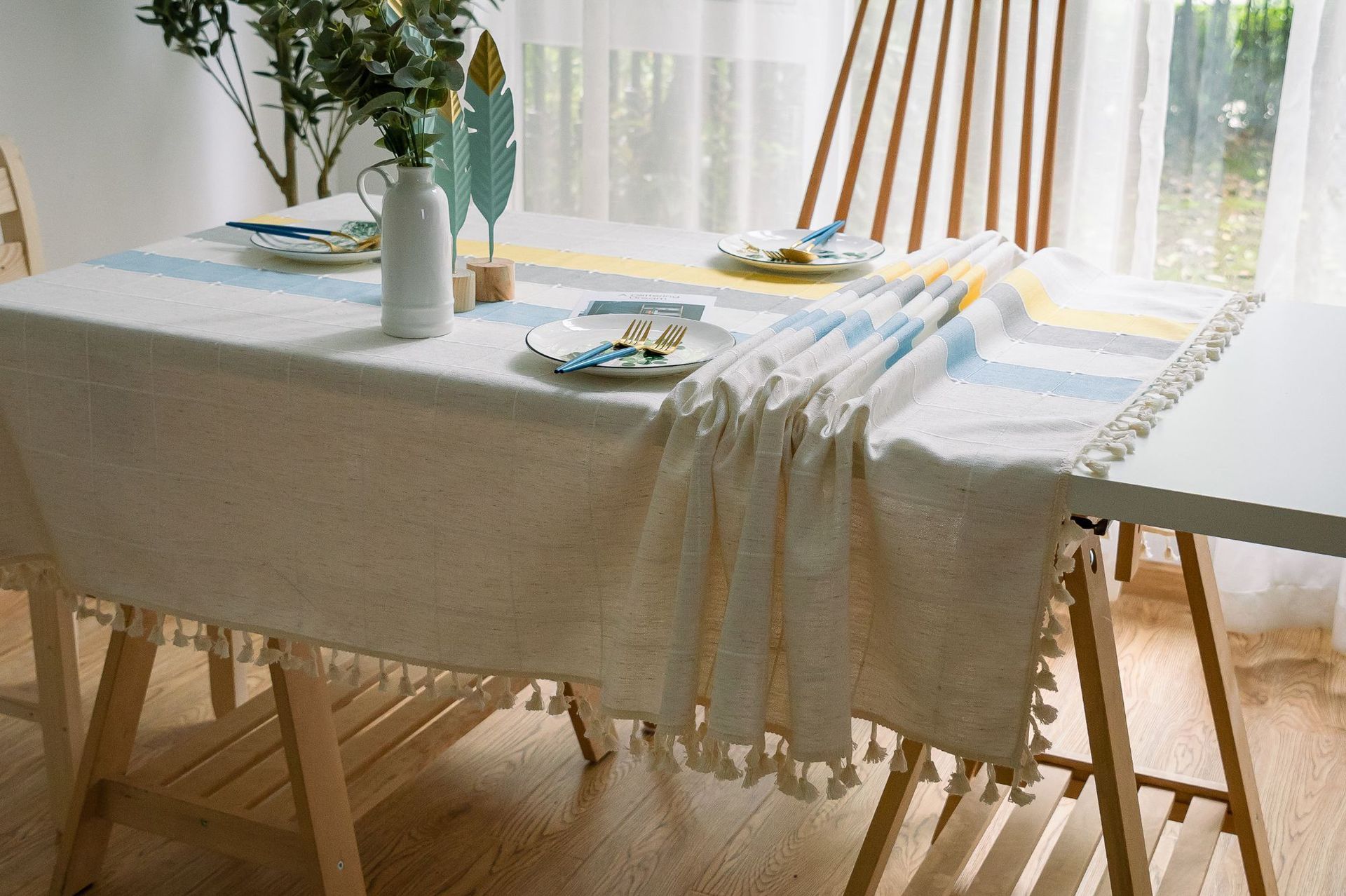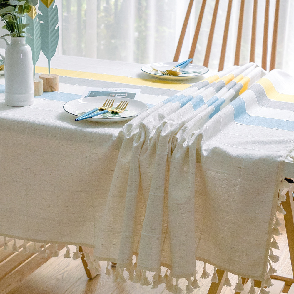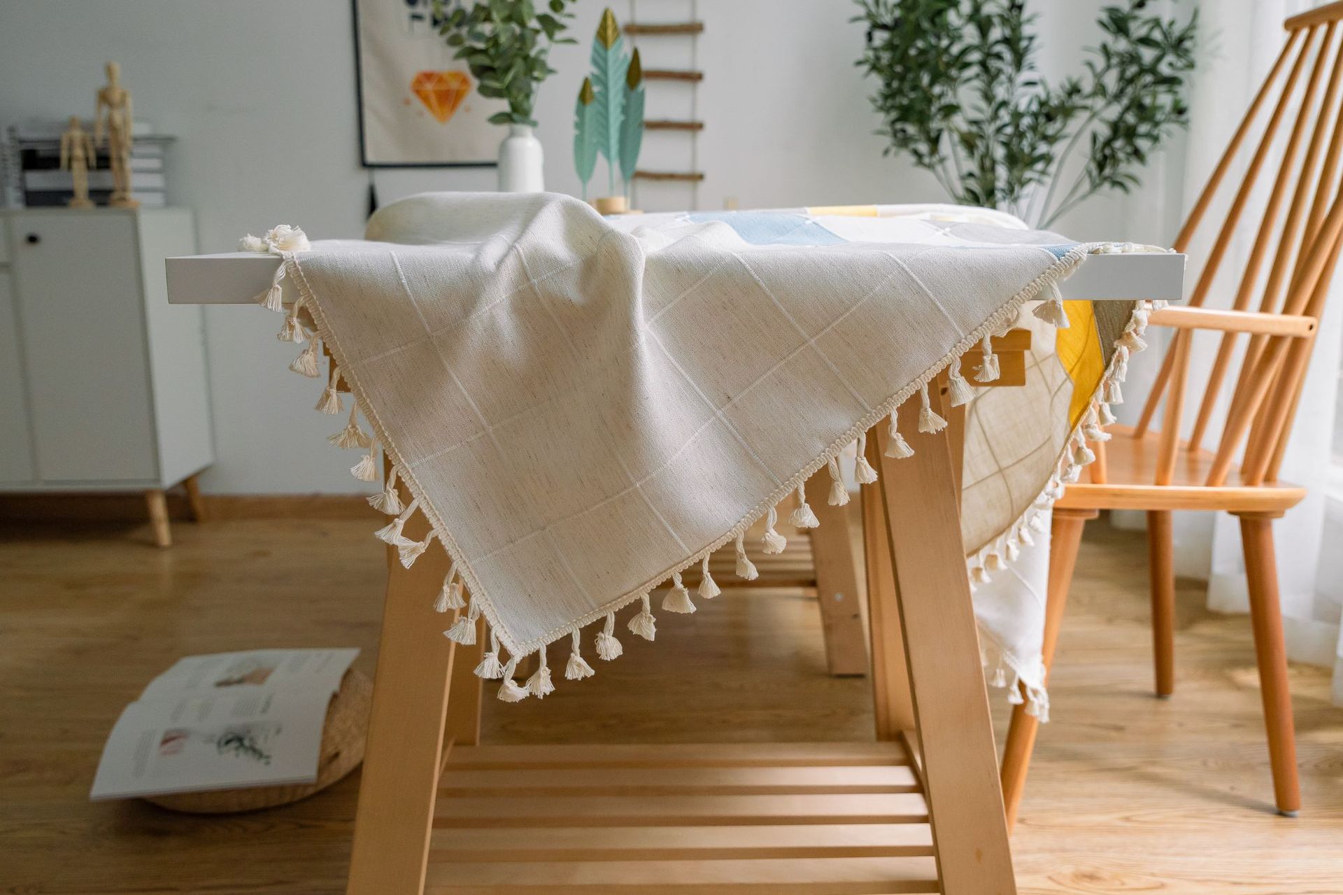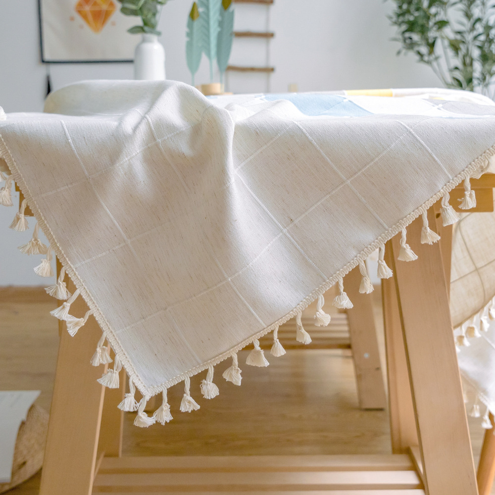 北欧新款流苏装饰桌布棉麻布艺防尘餐桌布家用厨房西餐桌装饰现货