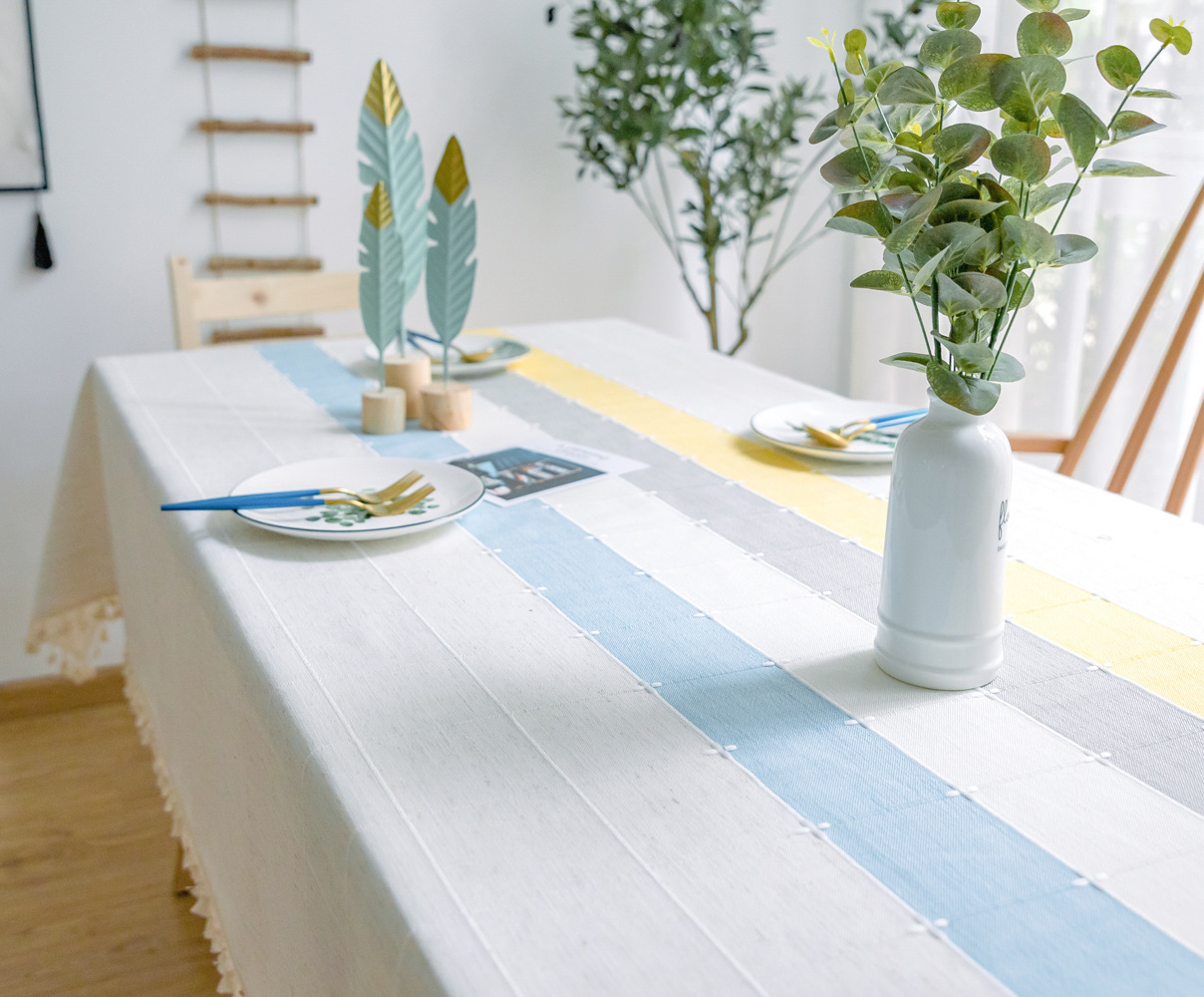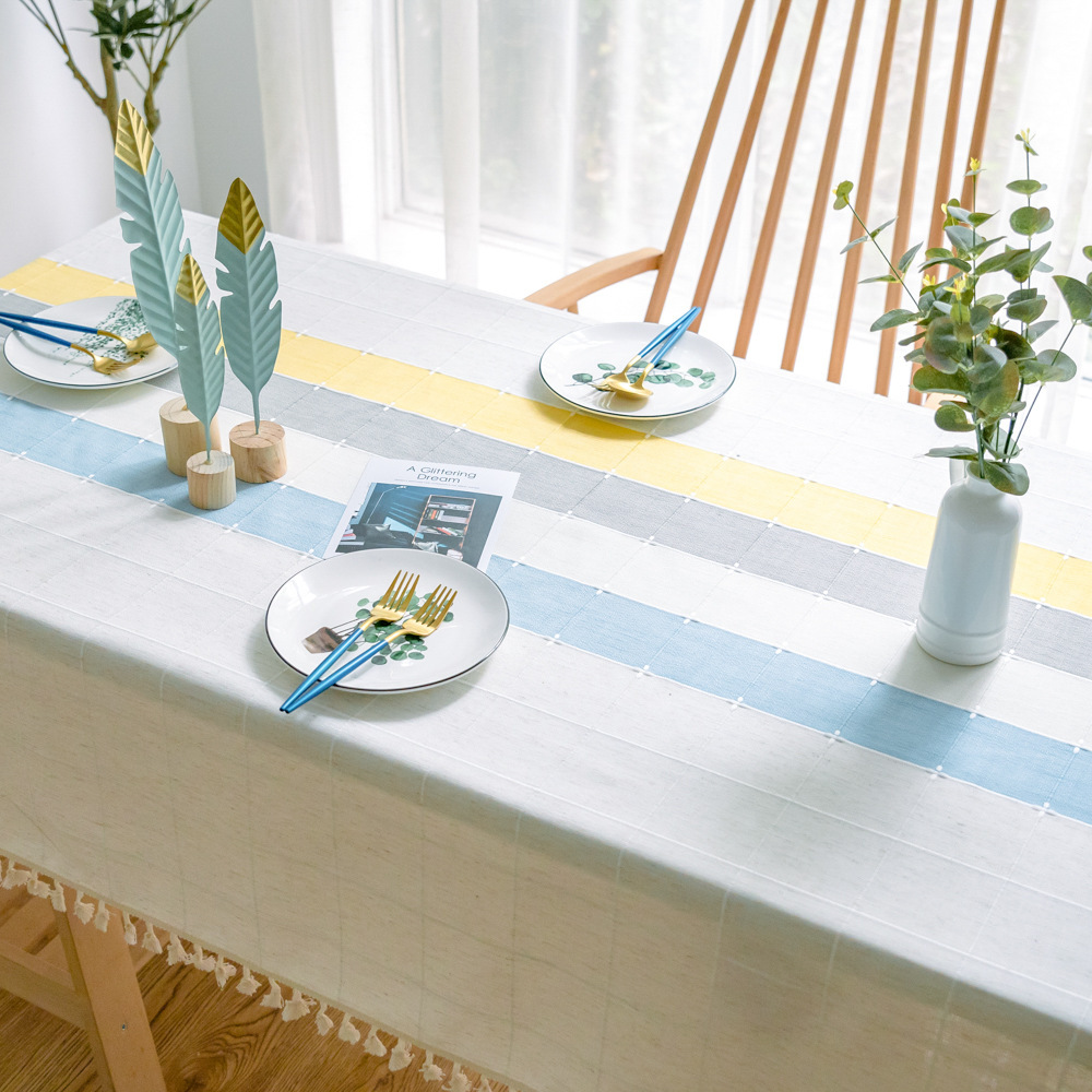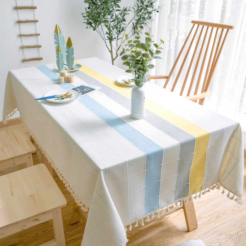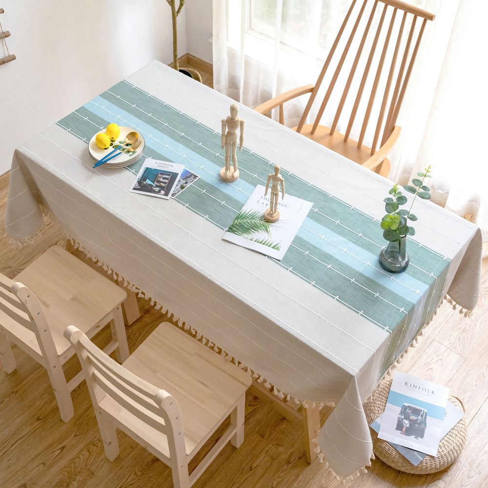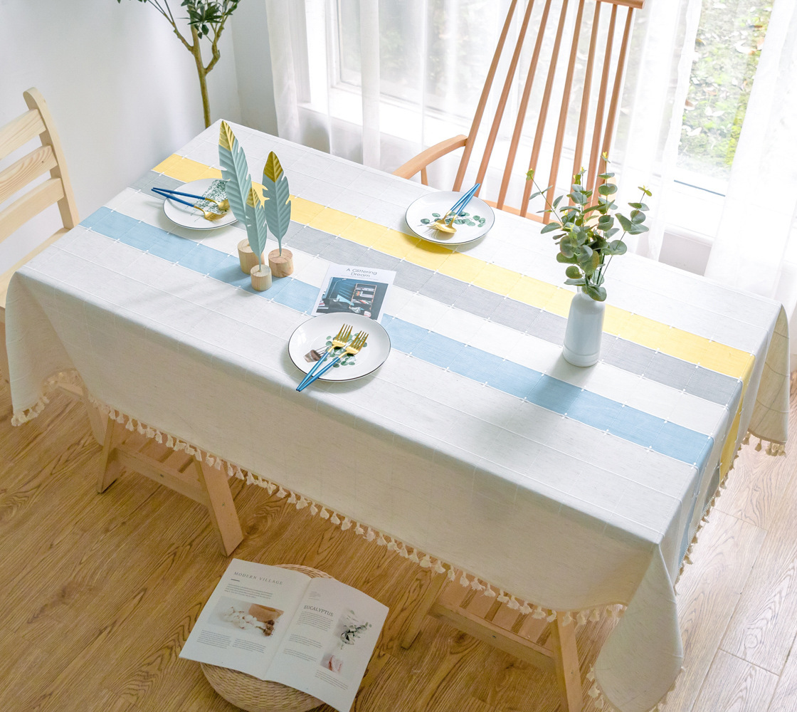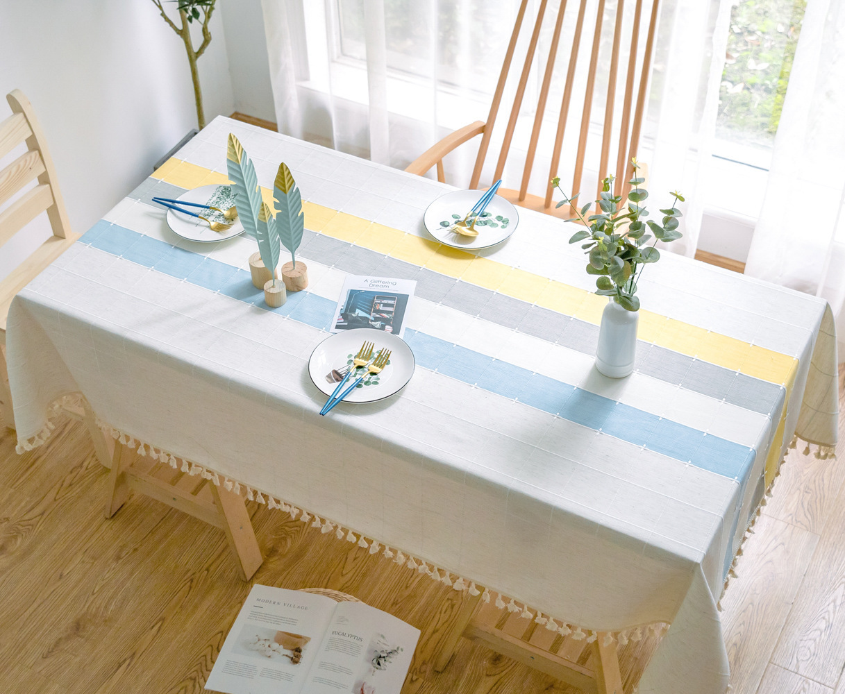北欧新款流苏装饰桌布棉麻布艺防尘餐桌布家用厨房西餐桌装饰现货