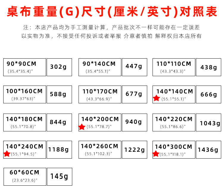 | 140 * 300cm(140*300cm) | USD $10.55 | 98635 piece available |