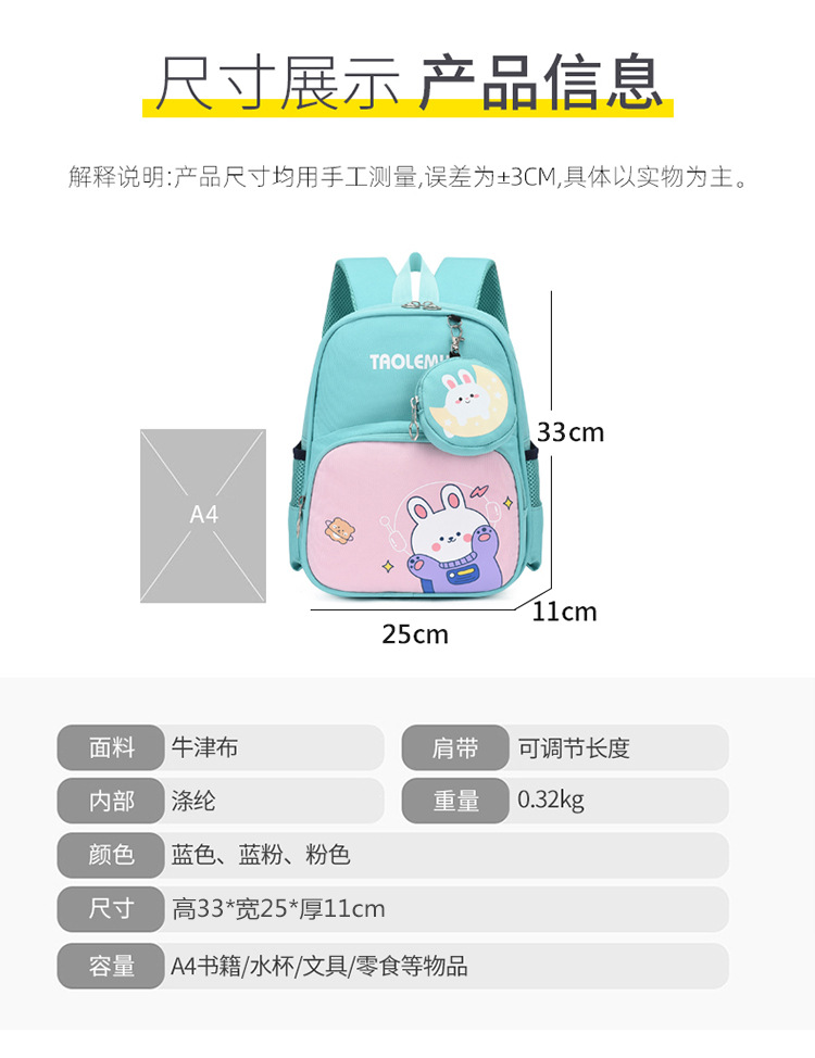 可爱小书包新款幼儿园中大班男孩女孩轻便卡通双肩包跨境外贸背包