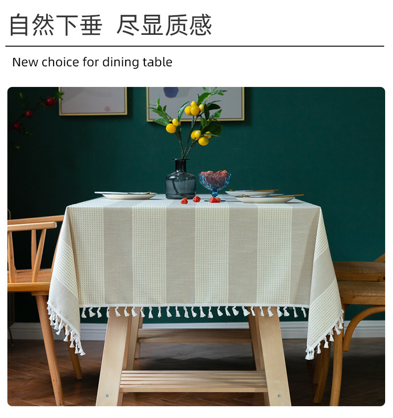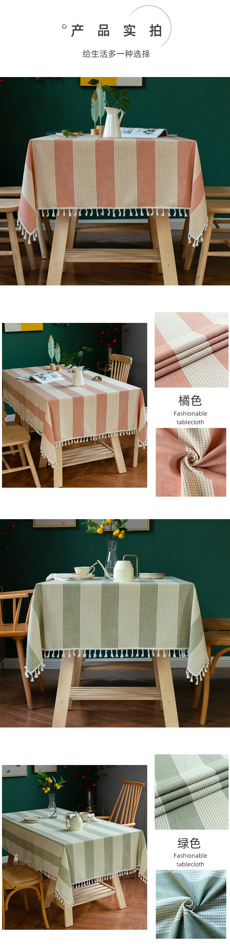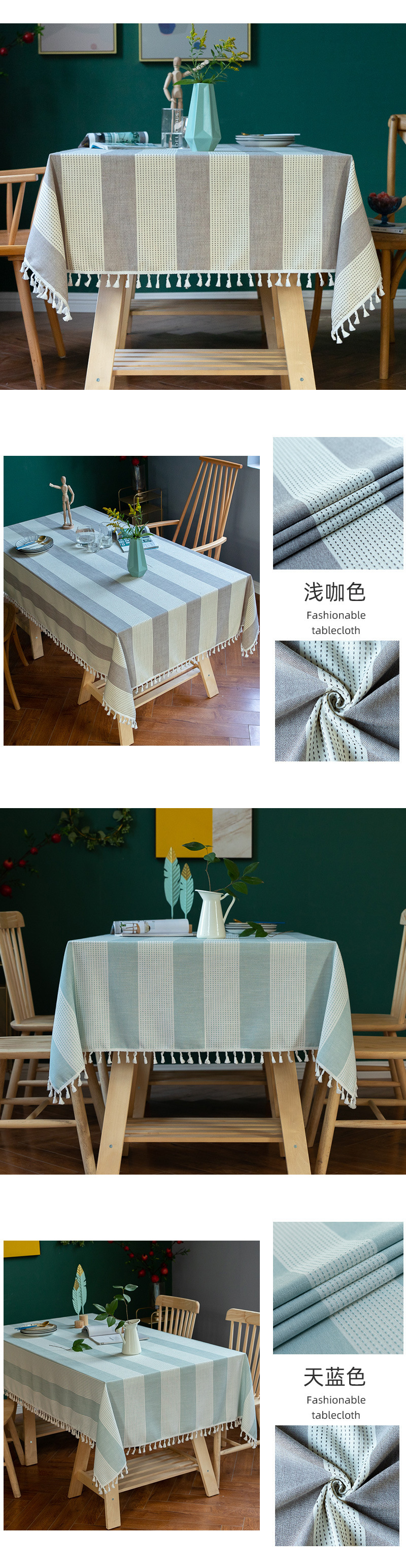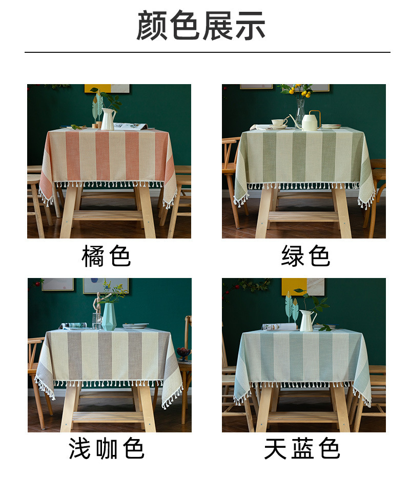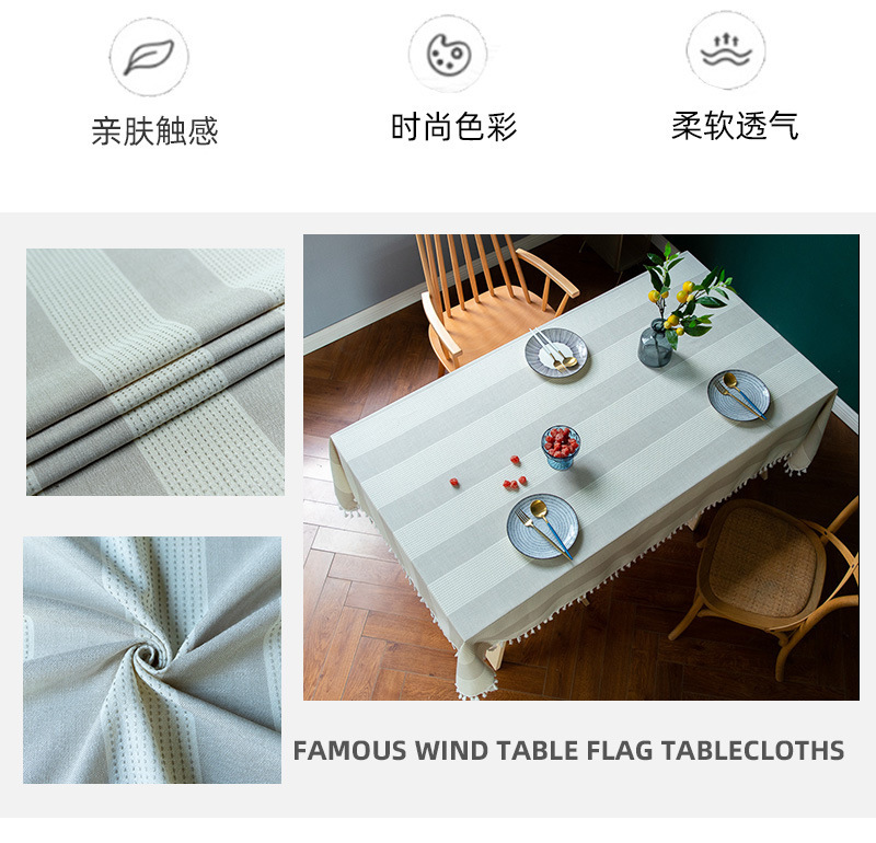 ins北欧式素色条纹桌布 ebay棉麻流苏花边餐桌罩盖布聚会台布批发