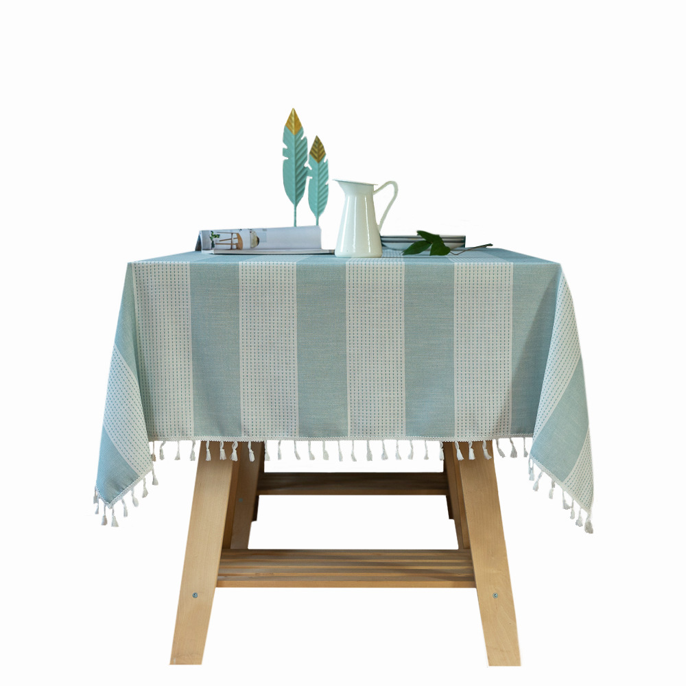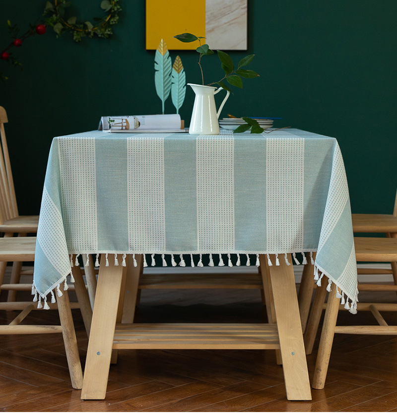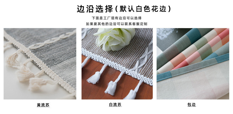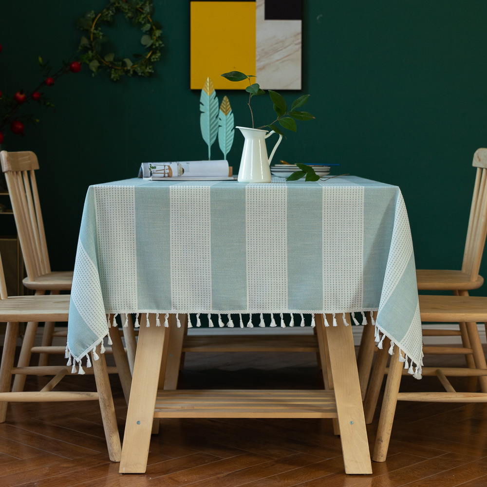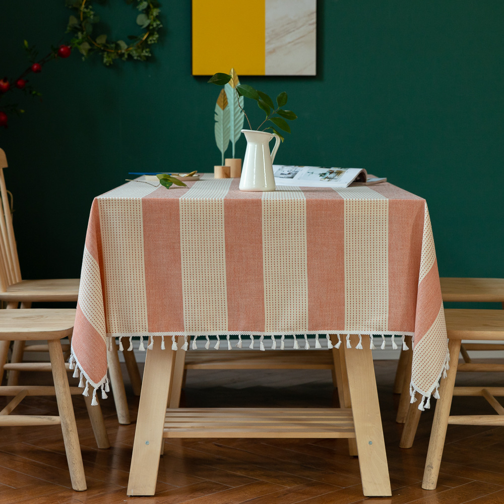 ins北欧式素色条纹桌布 ebay棉麻流苏花边餐桌罩盖布聚会台布批发