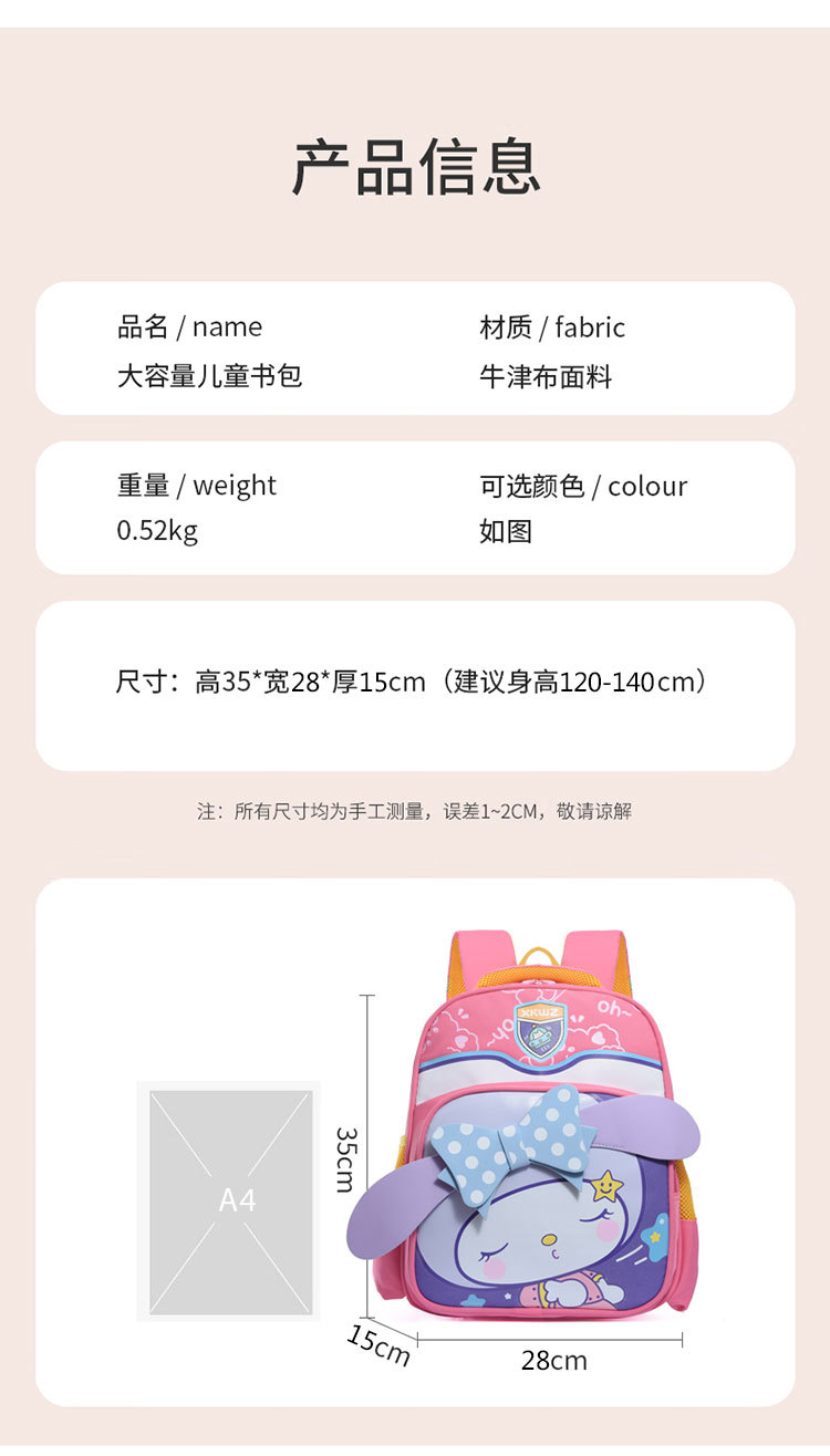 一年级恐龙书包小学生轻便护脊可爱卡通女孩8-10岁双肩包可放A4纸