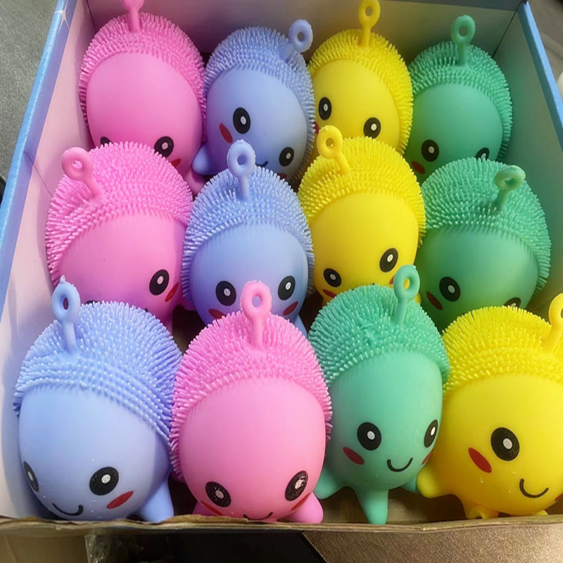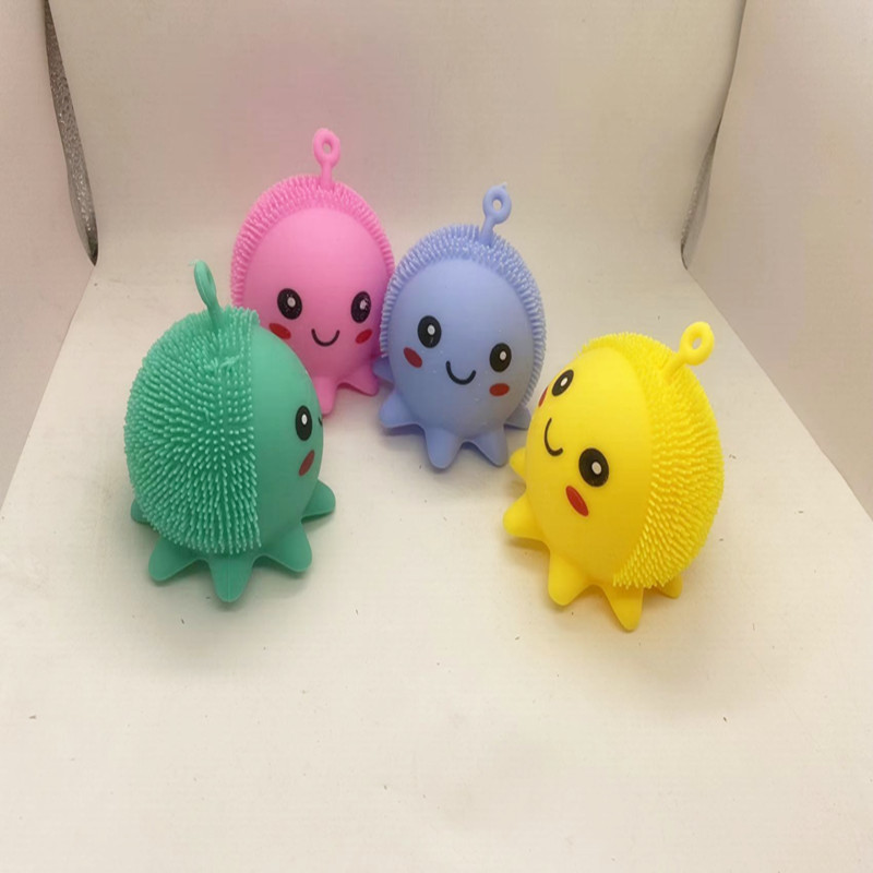 TPR闪光带灯毛毛球仿真八爪熊抖音小红书解压玩具