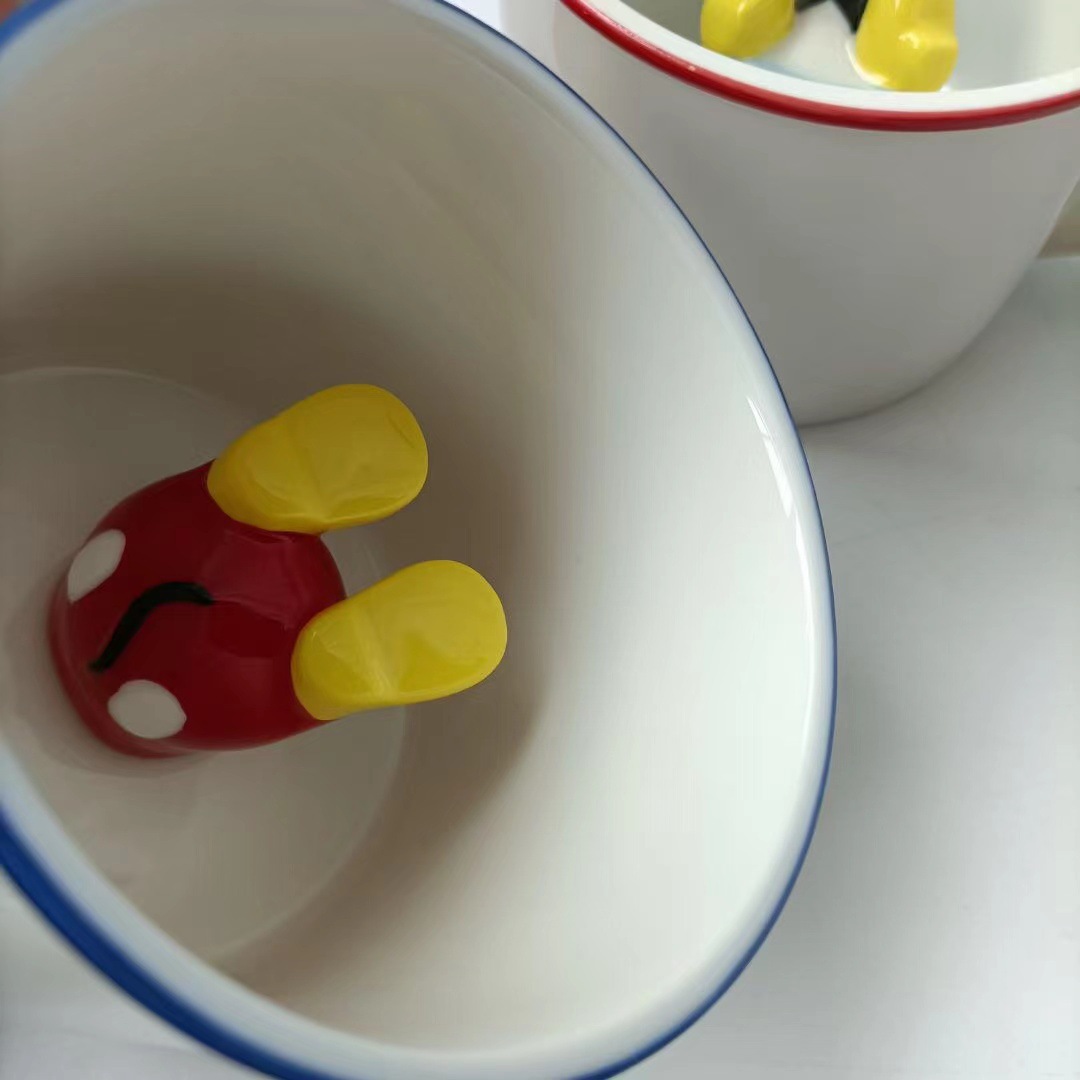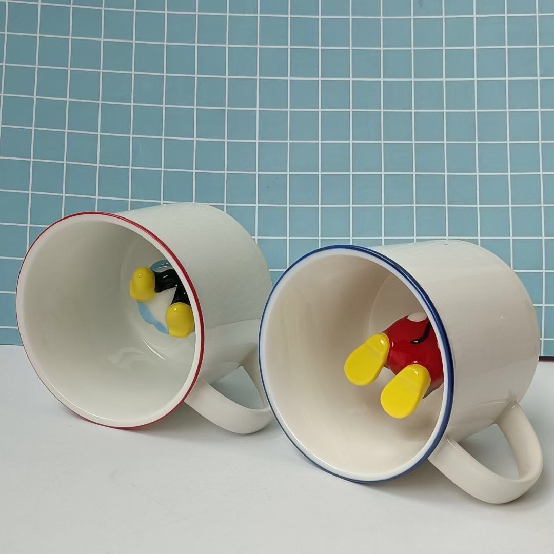 可爱卡通少女心小老鼠跳水陶瓷水杯 创意立体马克杯喝水杯牛奶杯