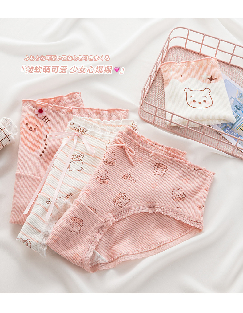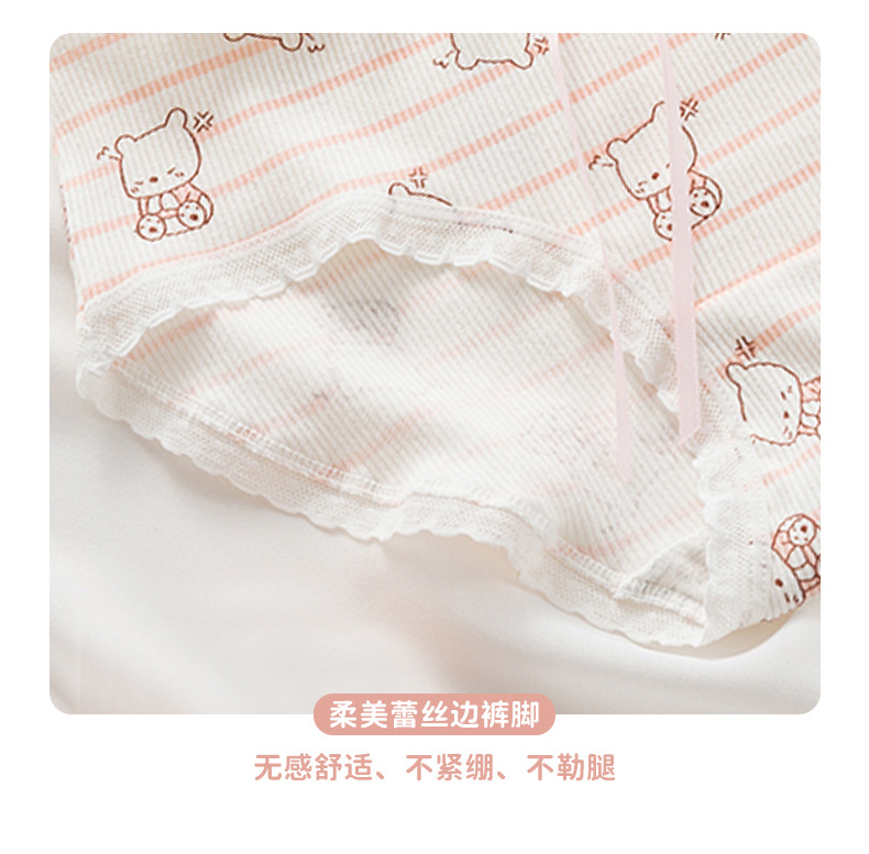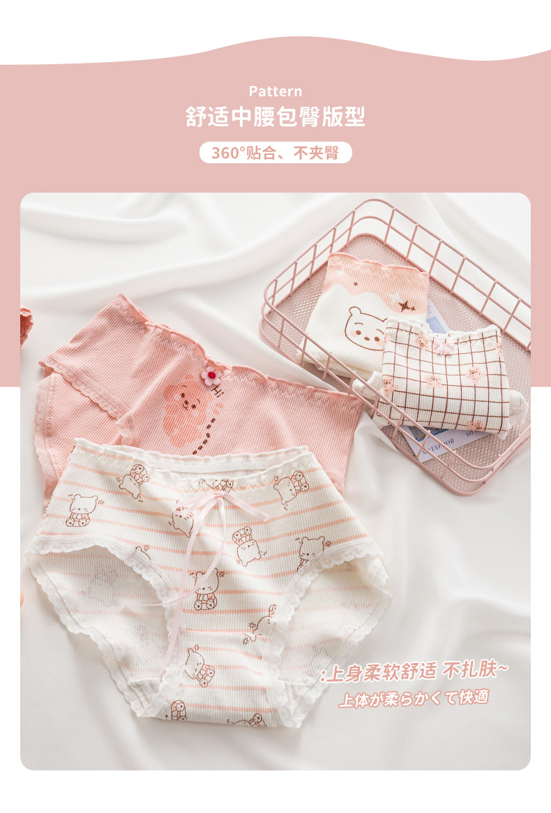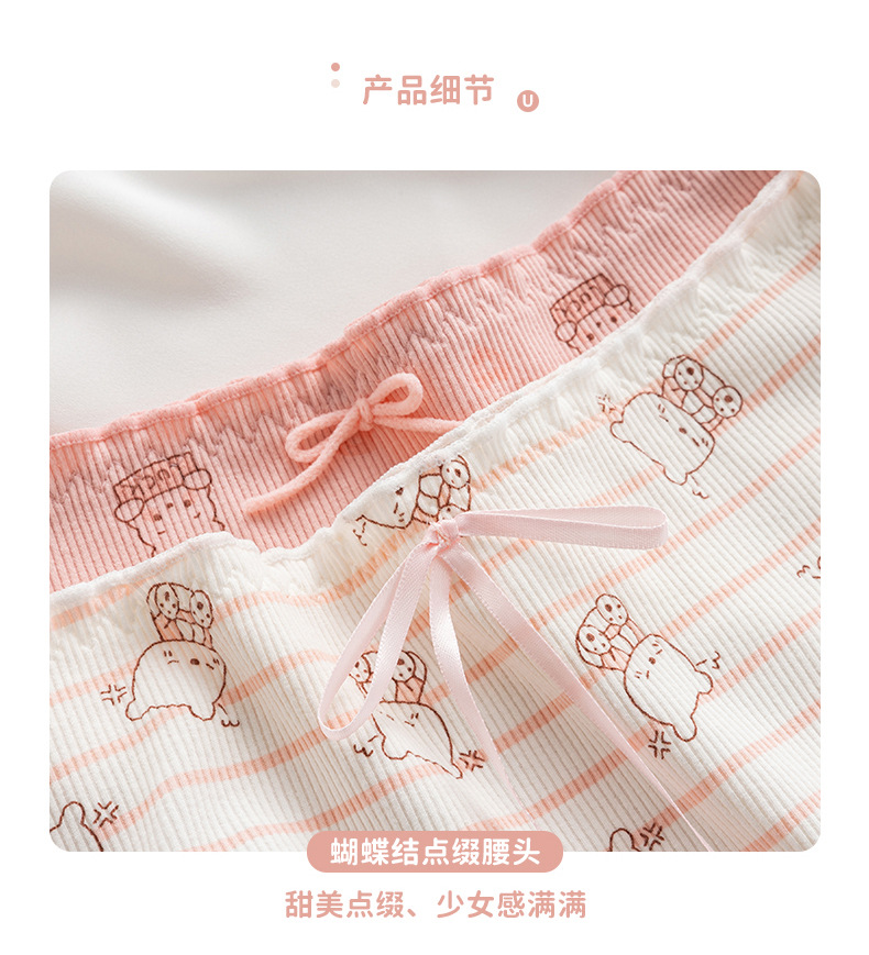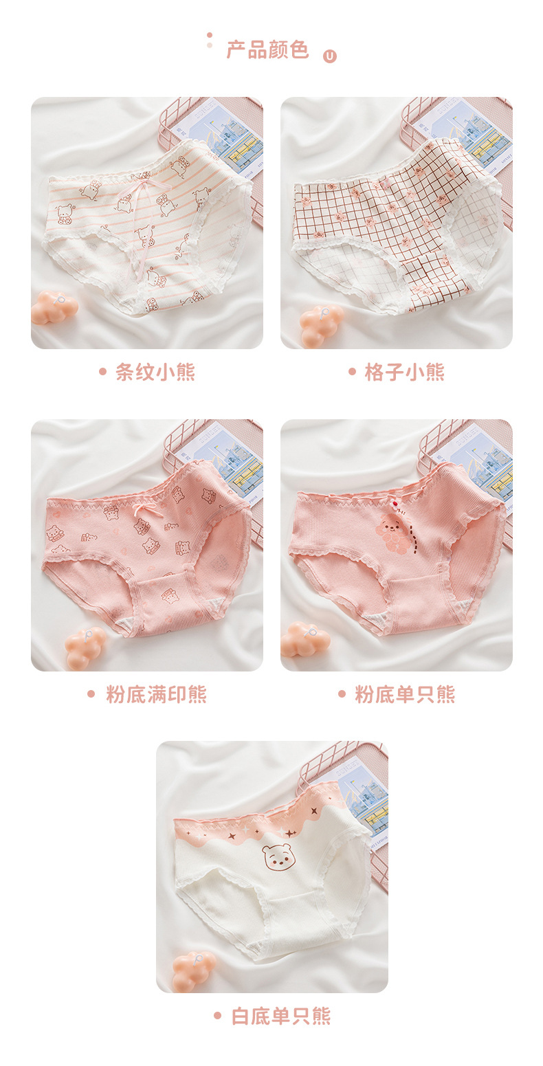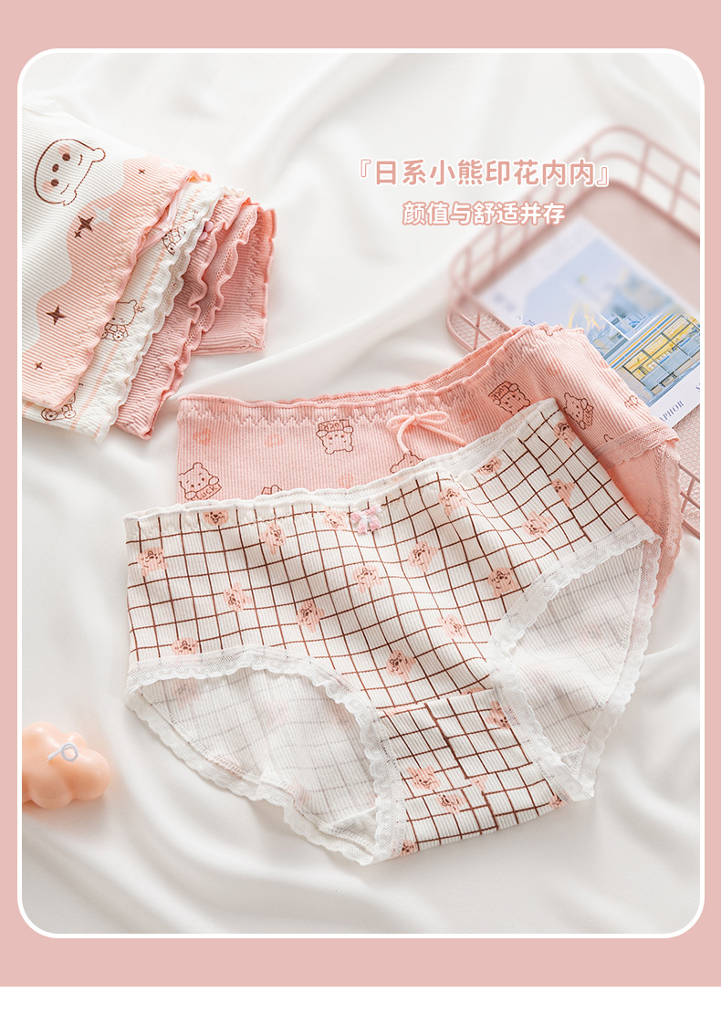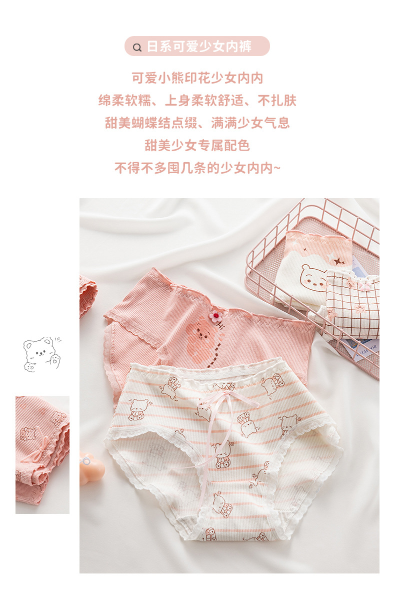 日系小熊女士内裤纯棉裆透气少女学生中腰弹力三角短裤可爱粉色系