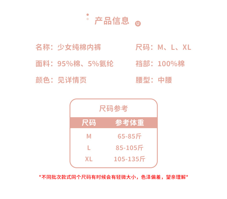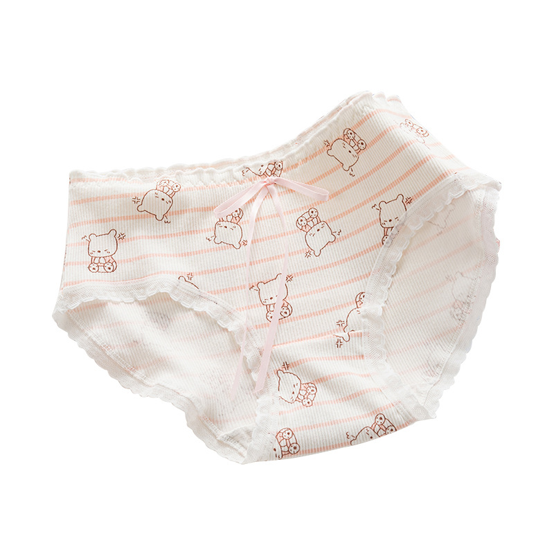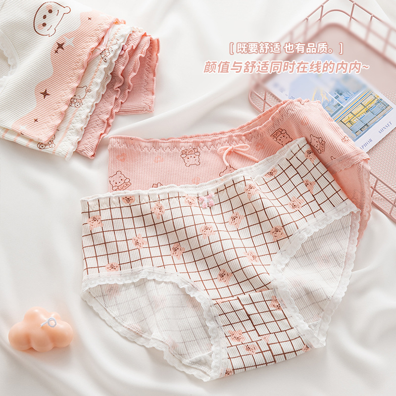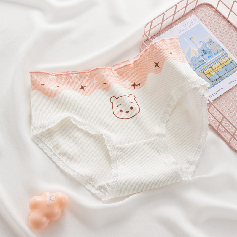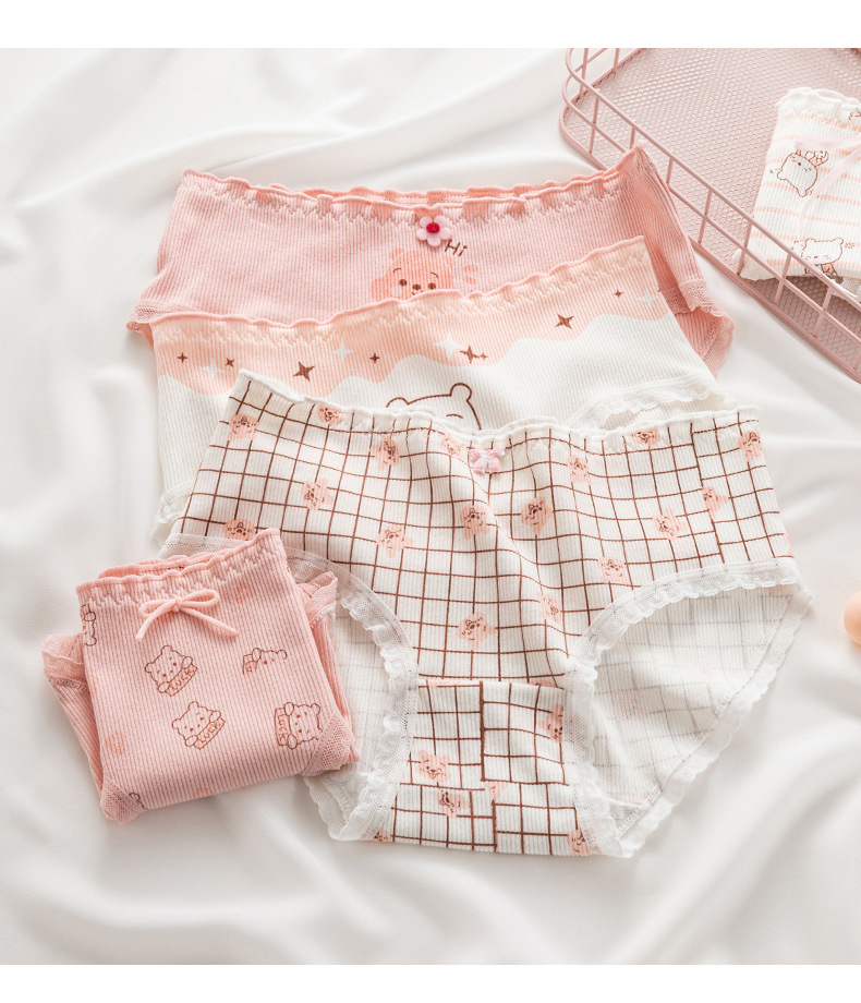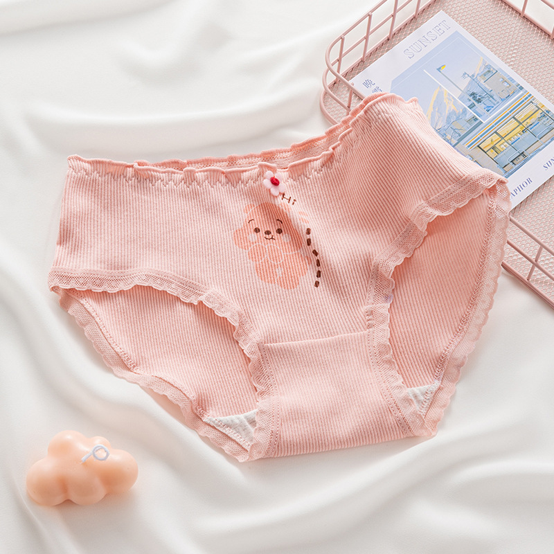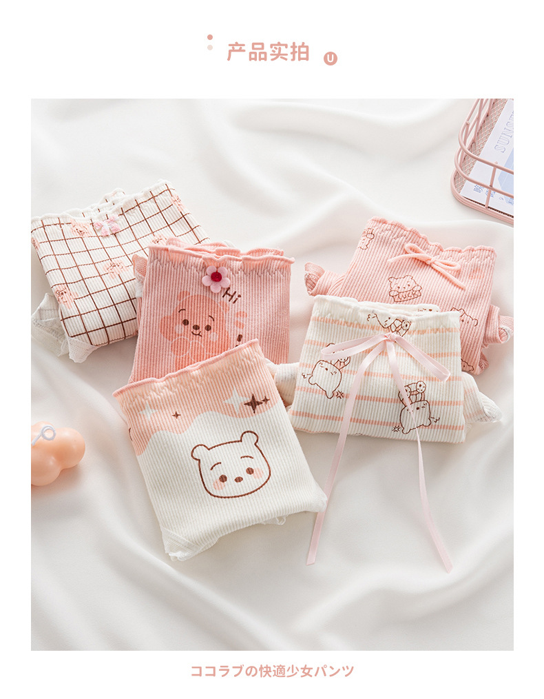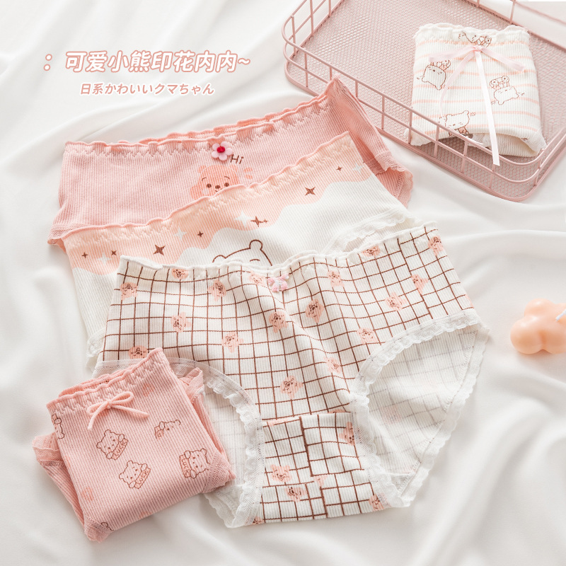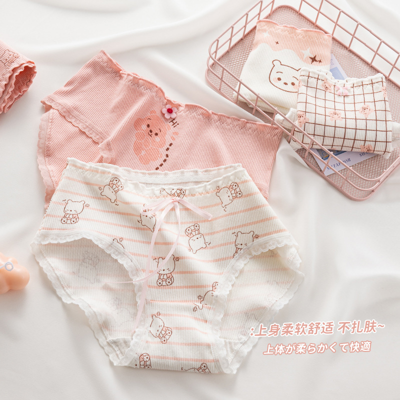 日系小熊女士内裤纯棉裆透气少女学生中腰弹力三角短裤可爱粉色系