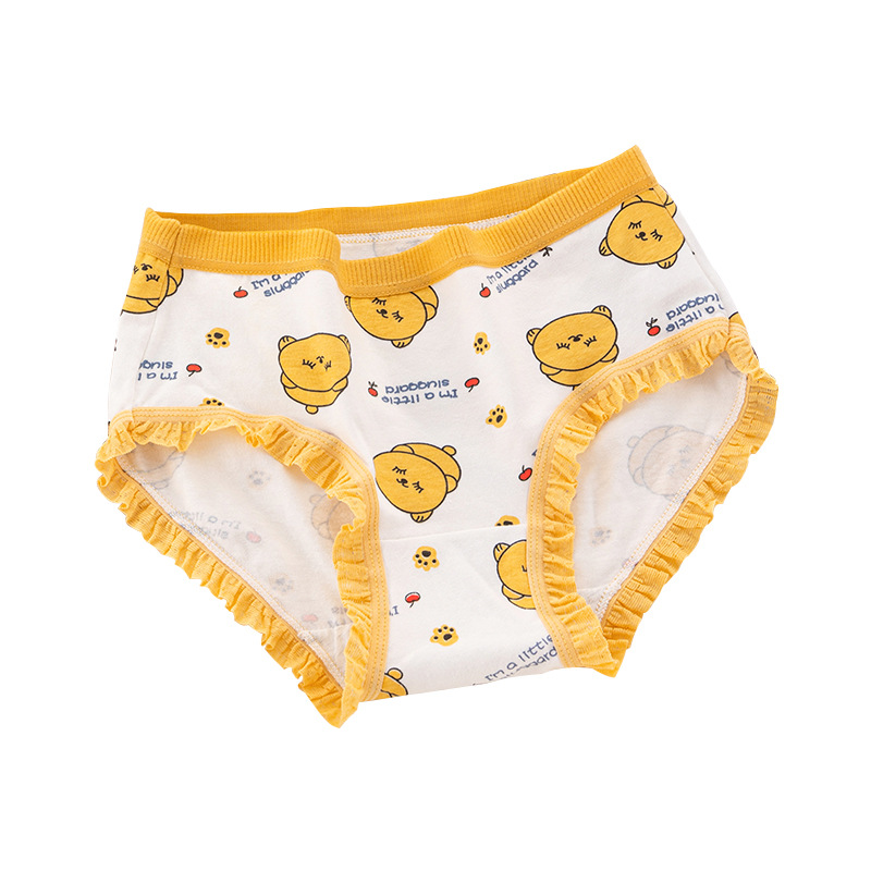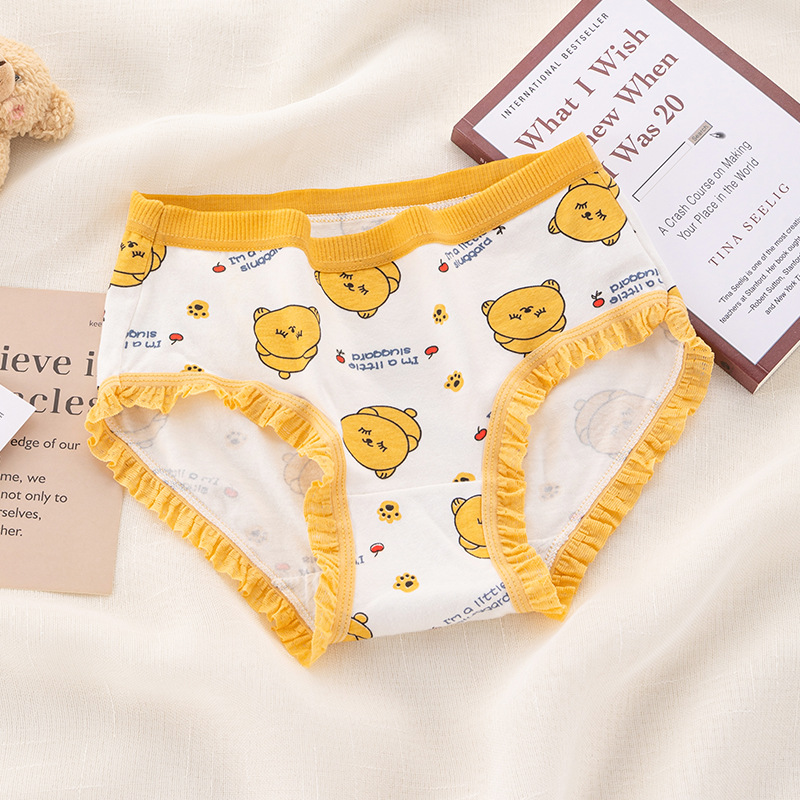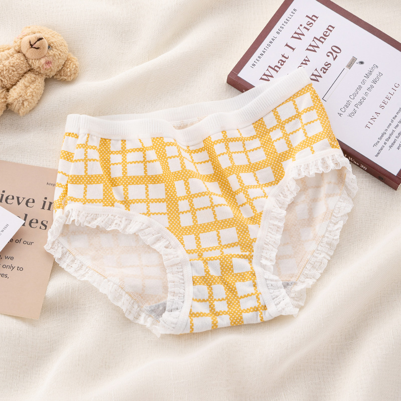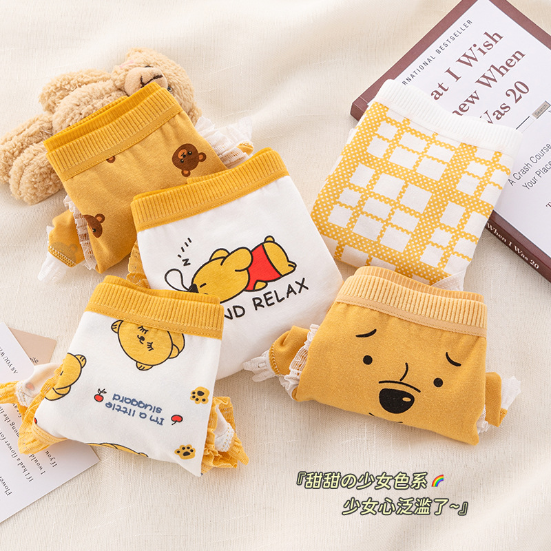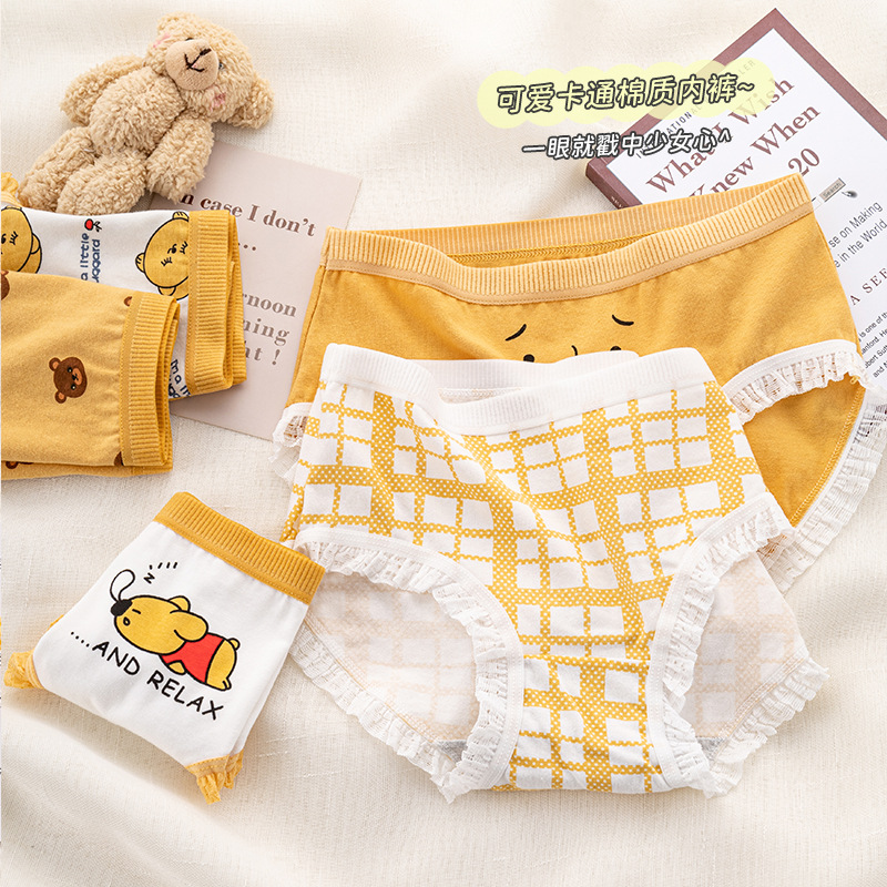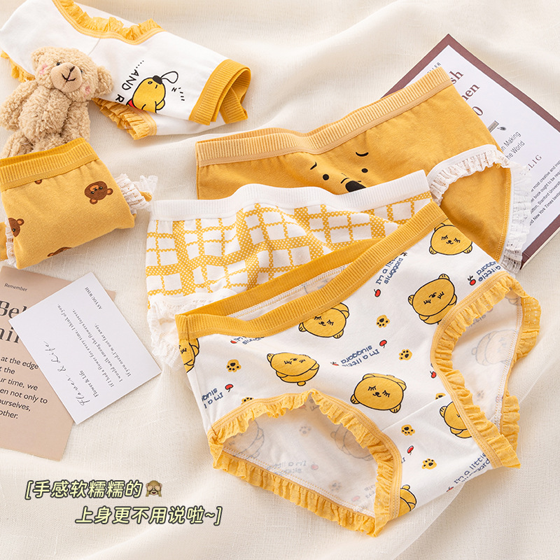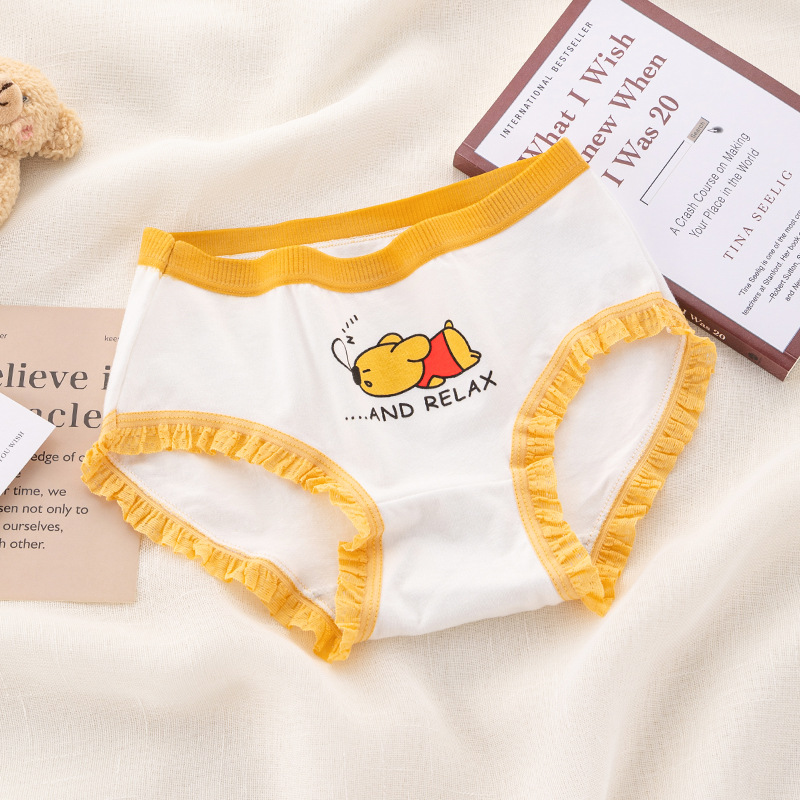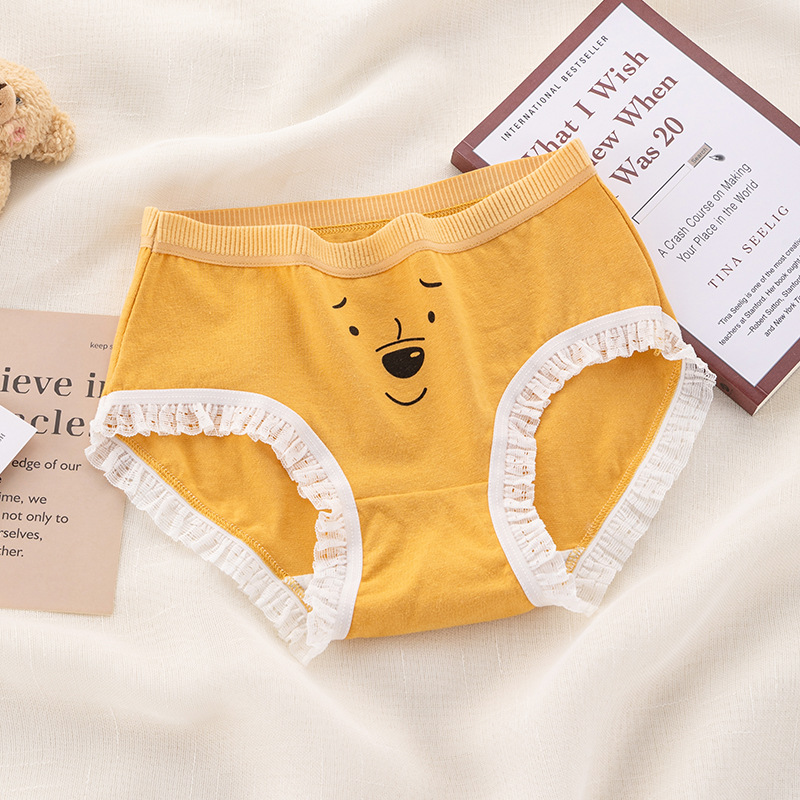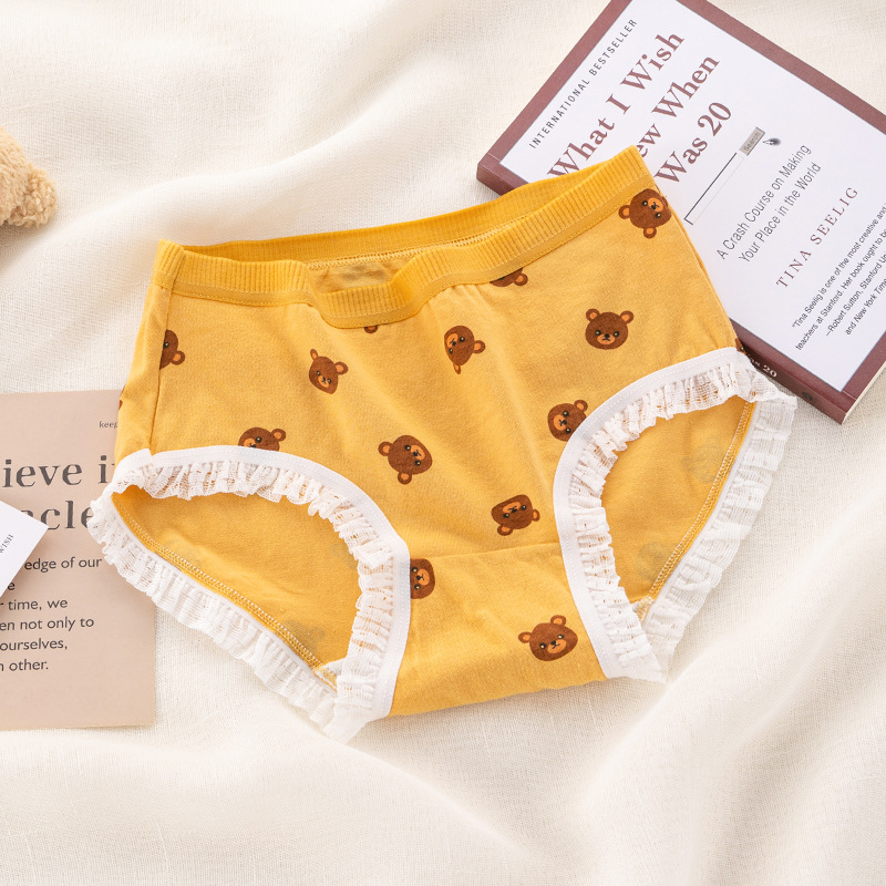 可爱卡通小熊印花内裤纯棉裆蕾丝边无痕日系弹力中腰女士三角裤