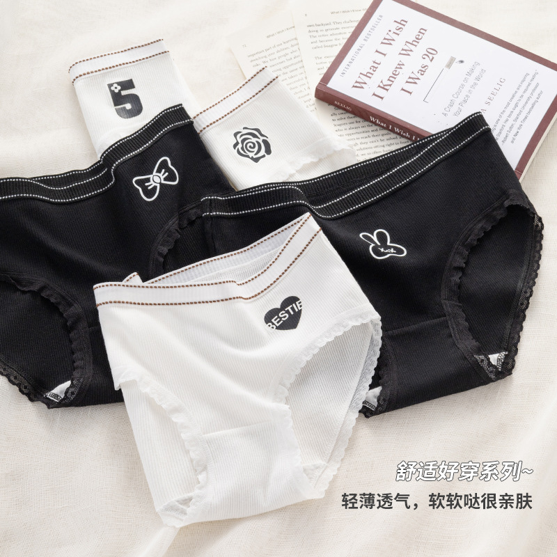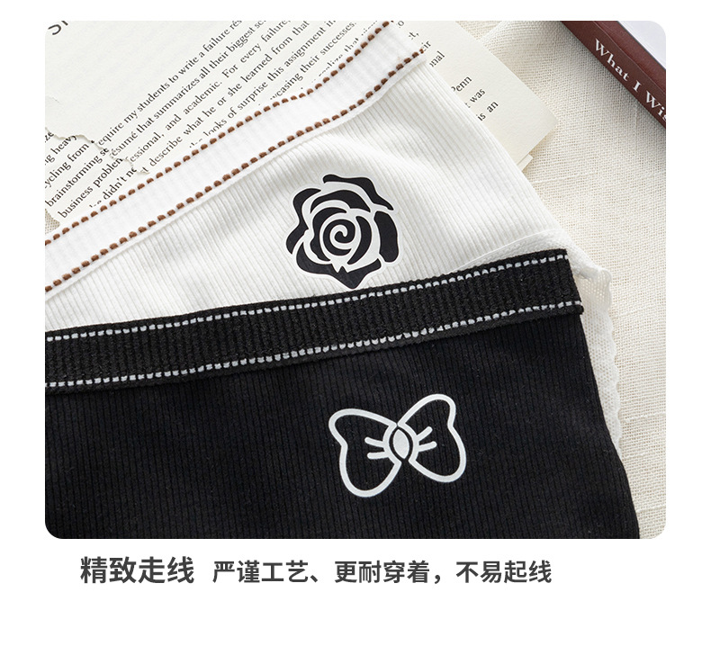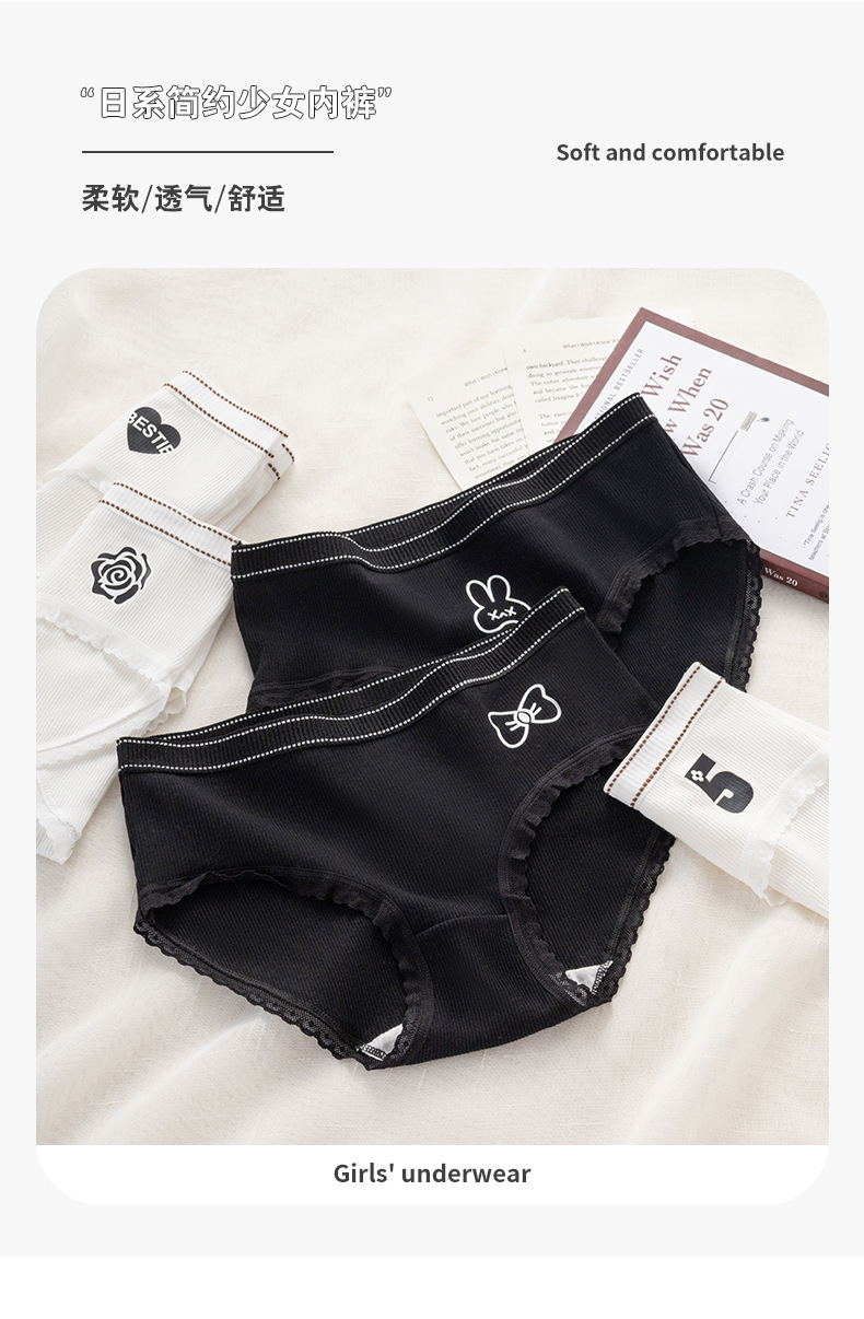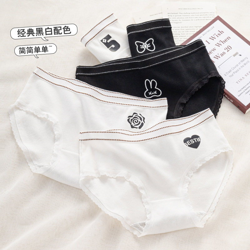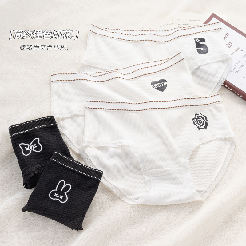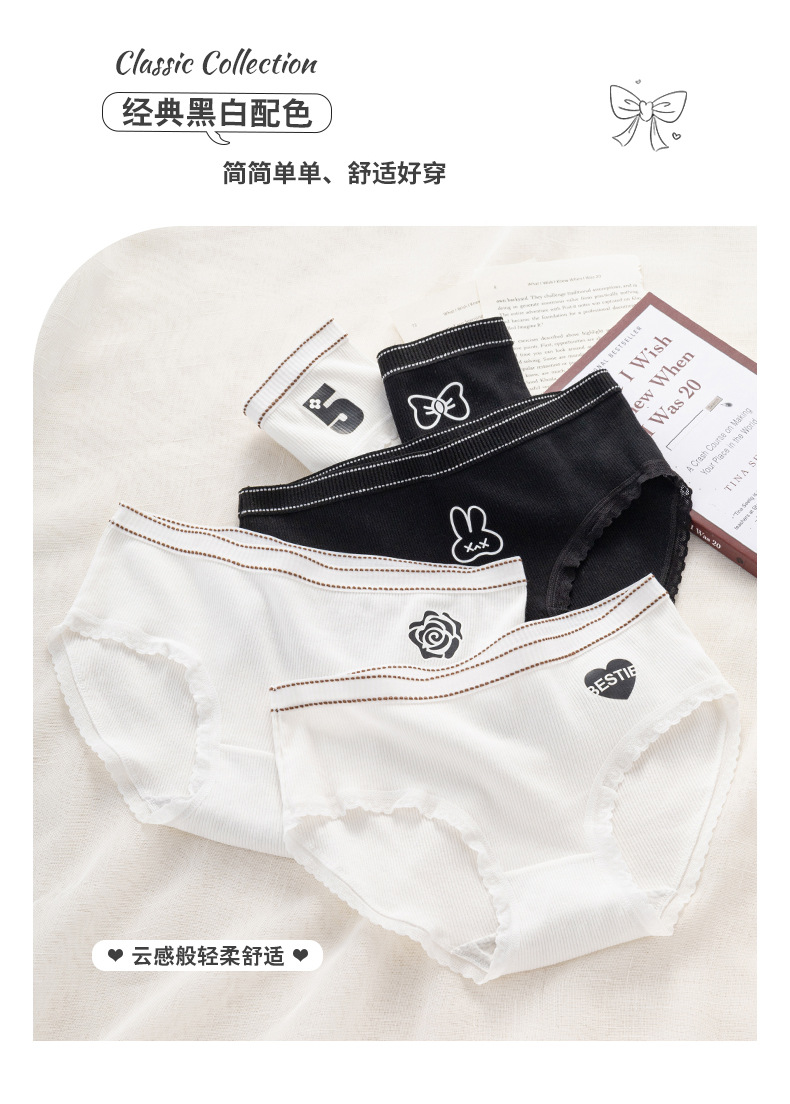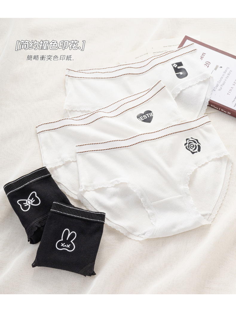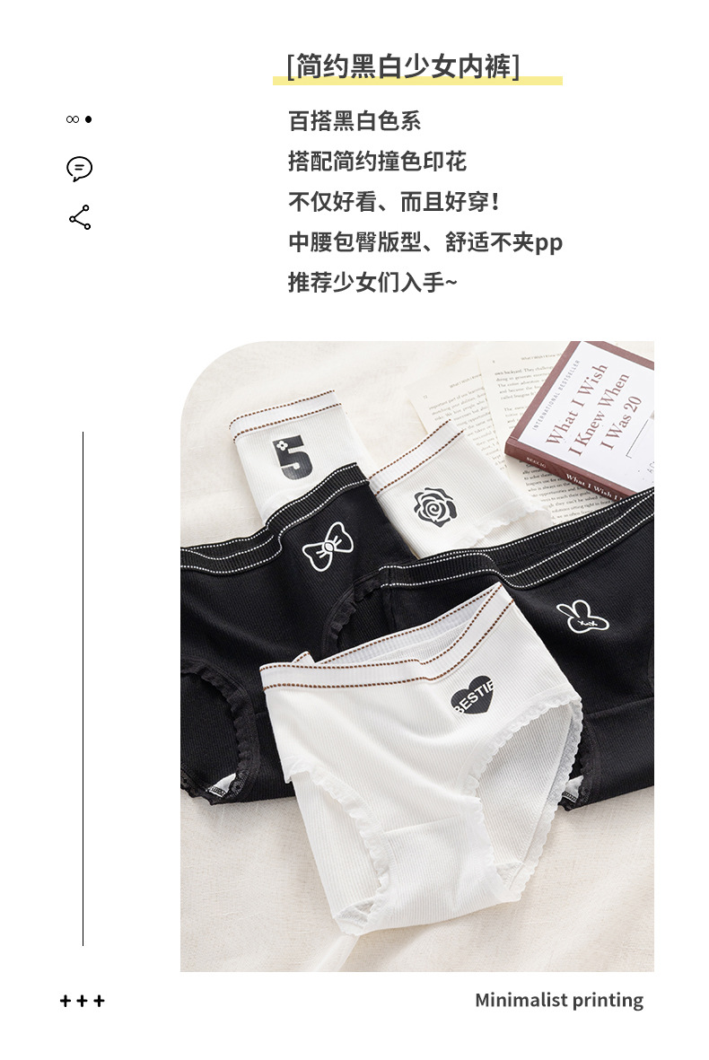 日系简约黑白少女内裤纯棉透气档亲肤舒适弹力中腰学生印花三角裤