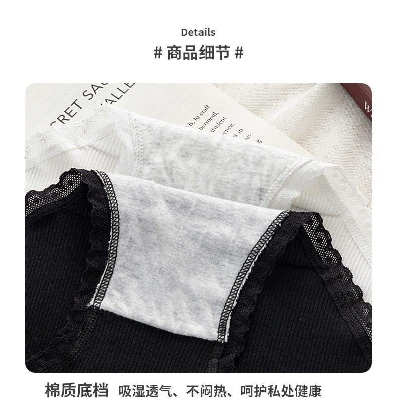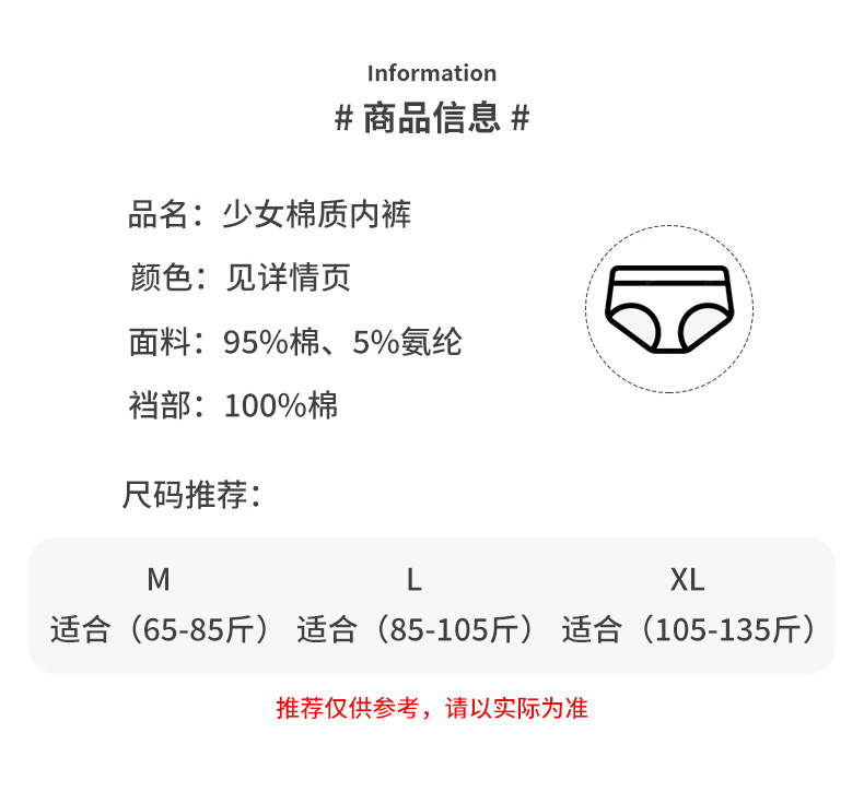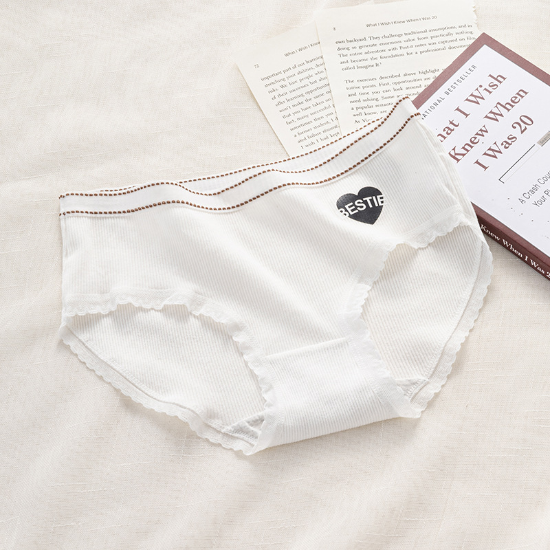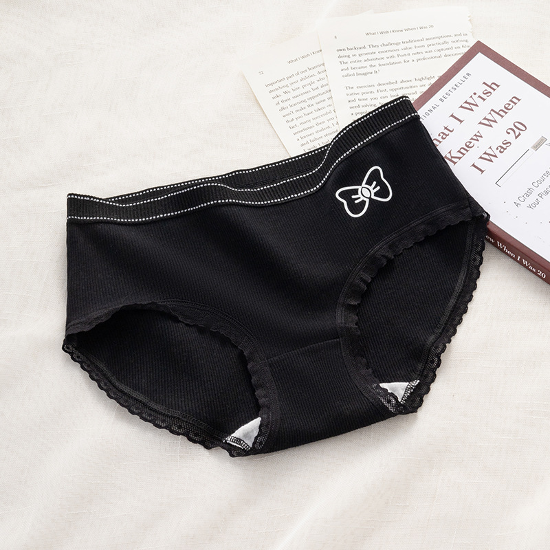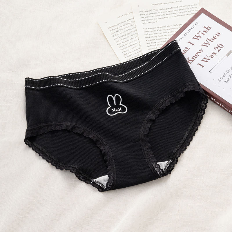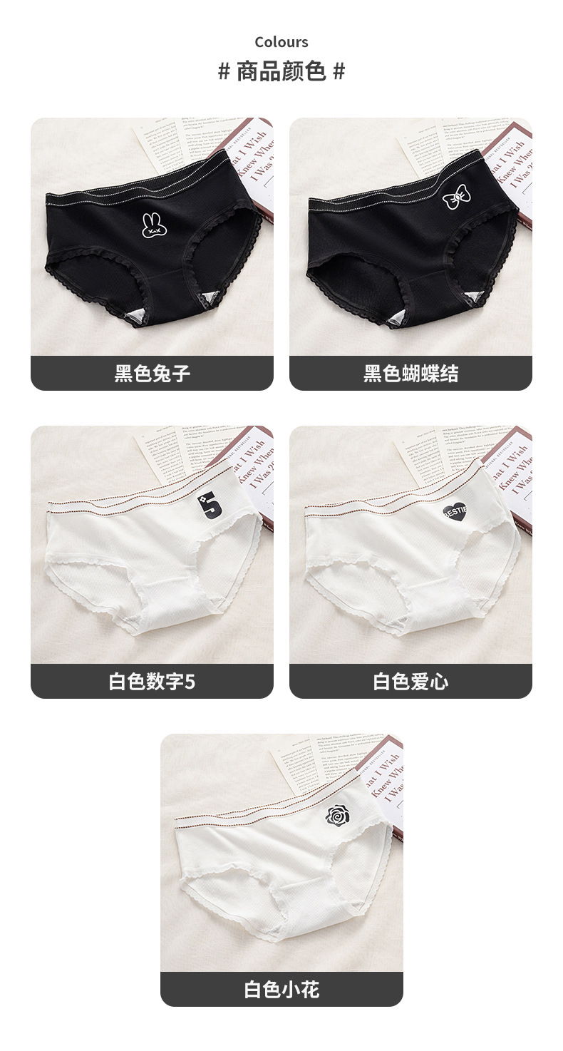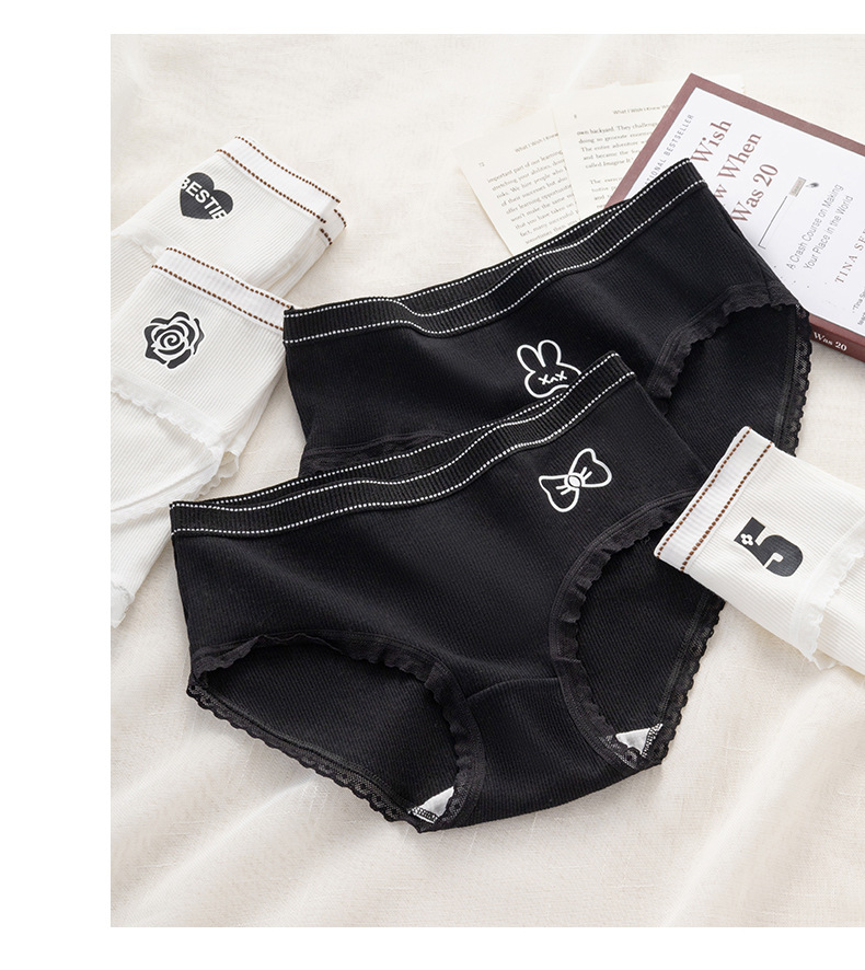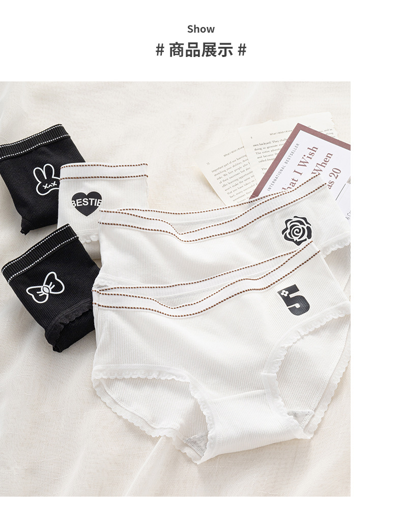 日系简约黑白少女内裤纯棉透气档亲肤舒适弹力中腰学生印花三角裤