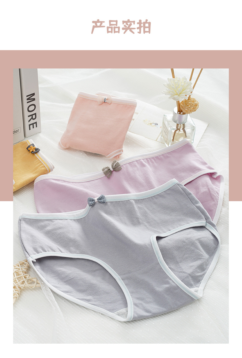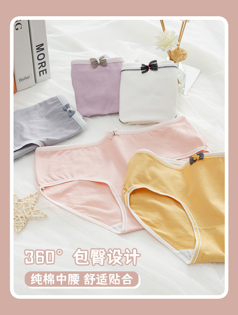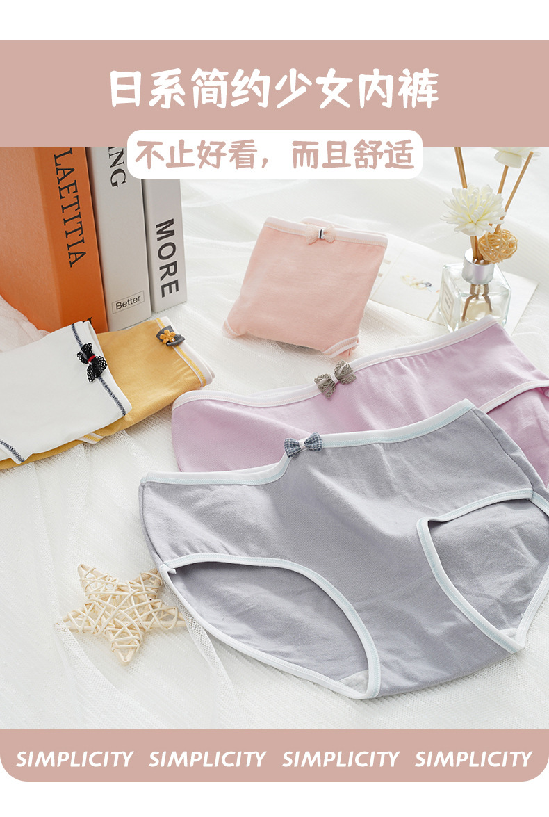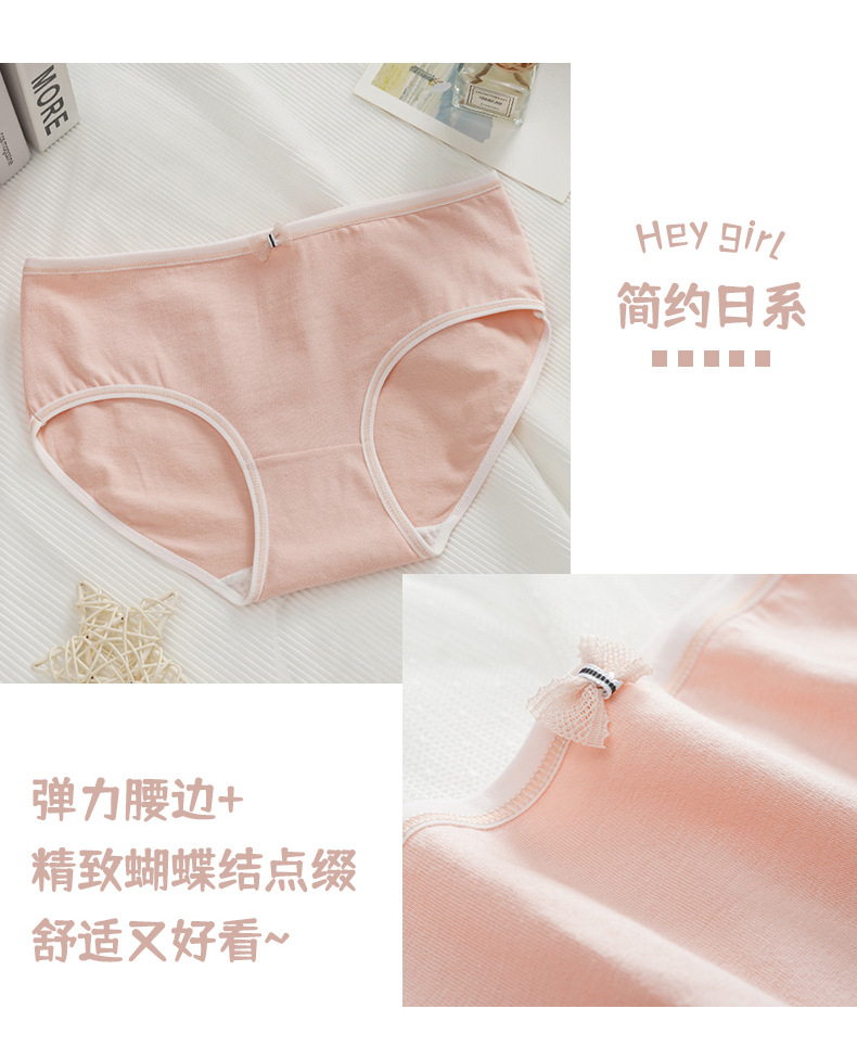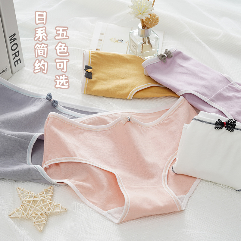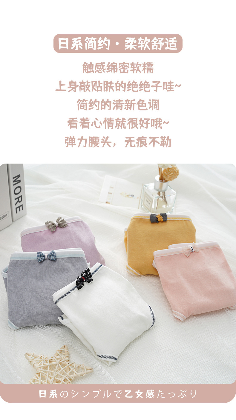 批发蝴蝶结日系莫兰迪简约少女纯棉裆舒适女中腰甜美学生三角裤