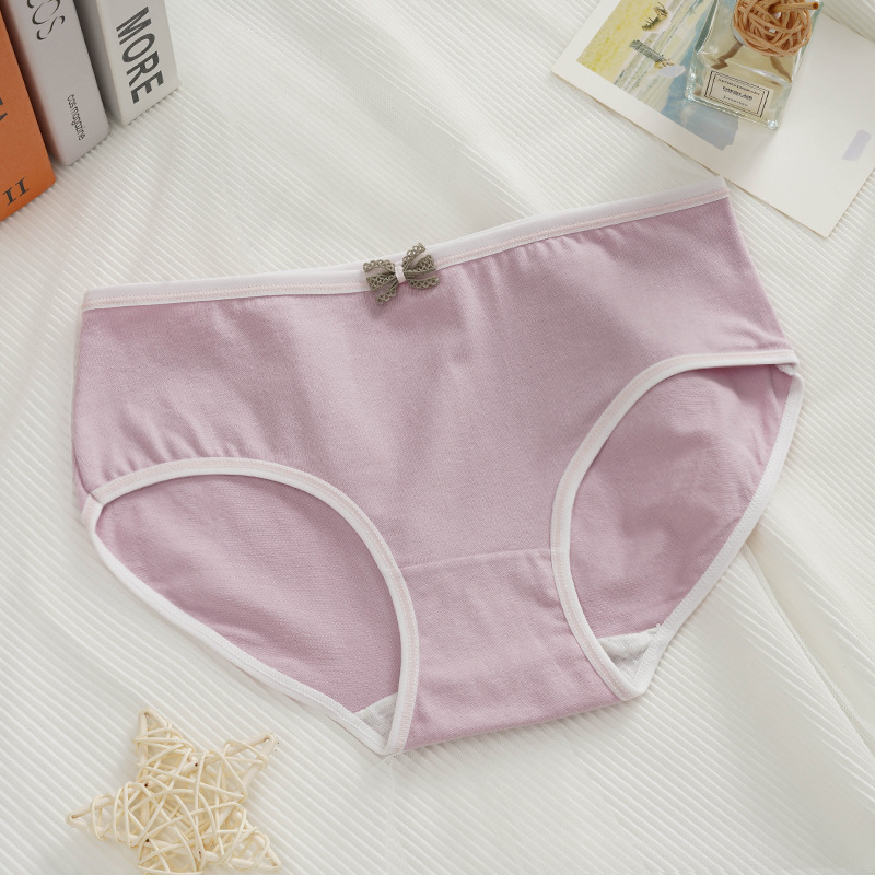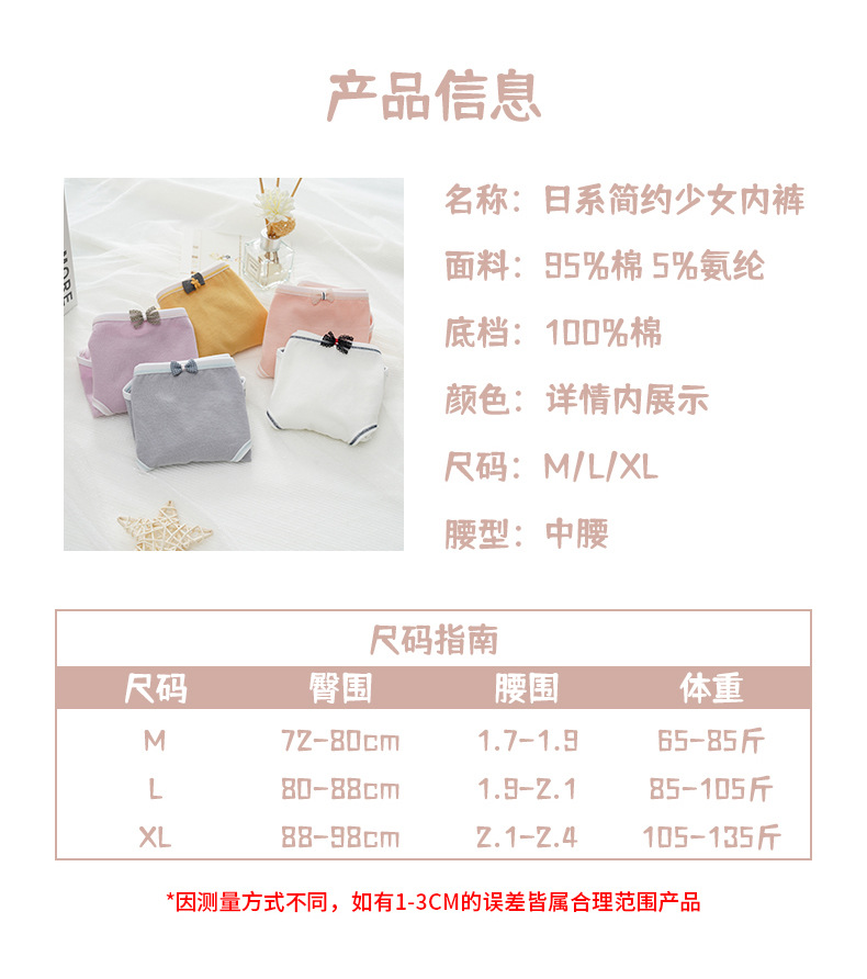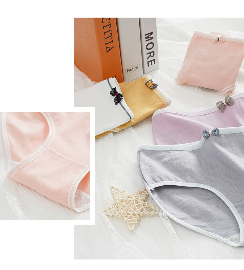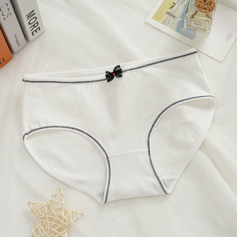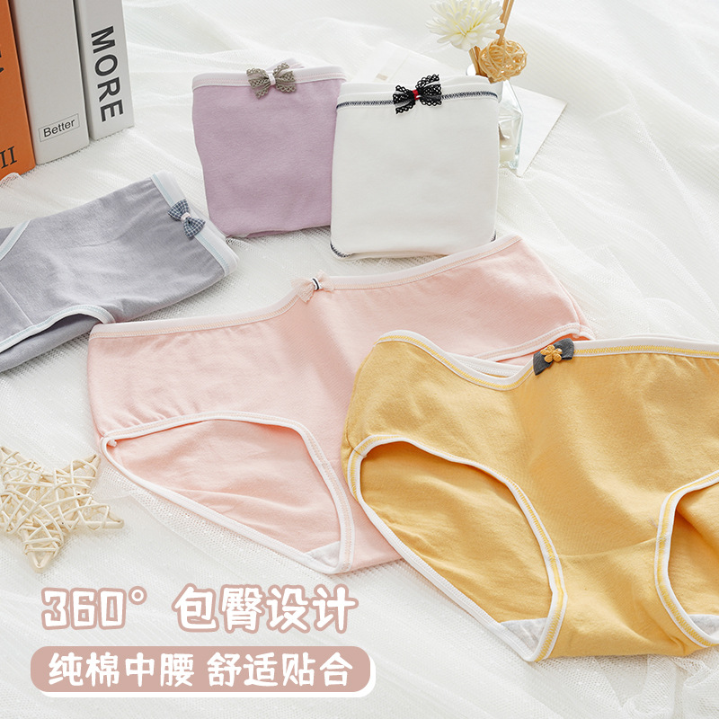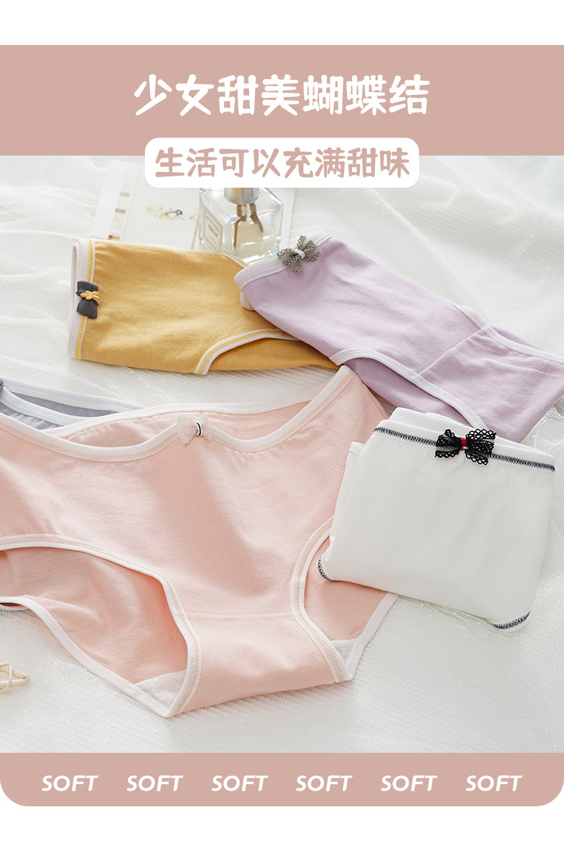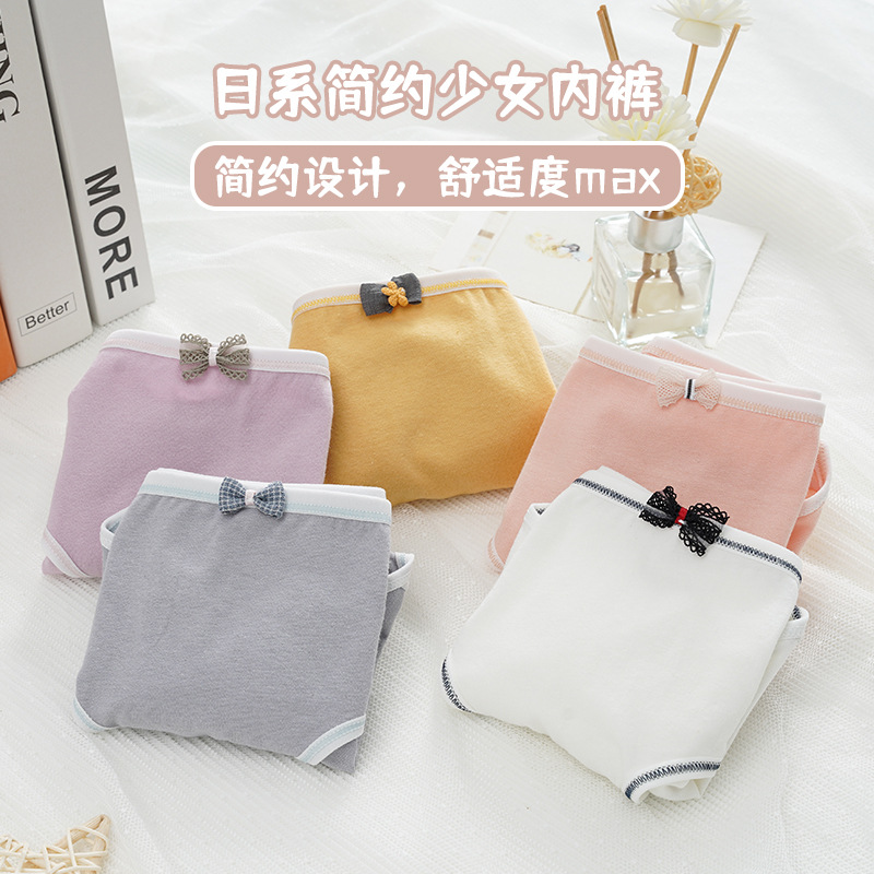批发蝴蝶结日系莫兰迪简约少女纯棉裆舒适女中腰甜美学生三角裤