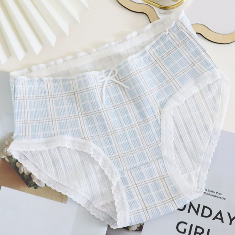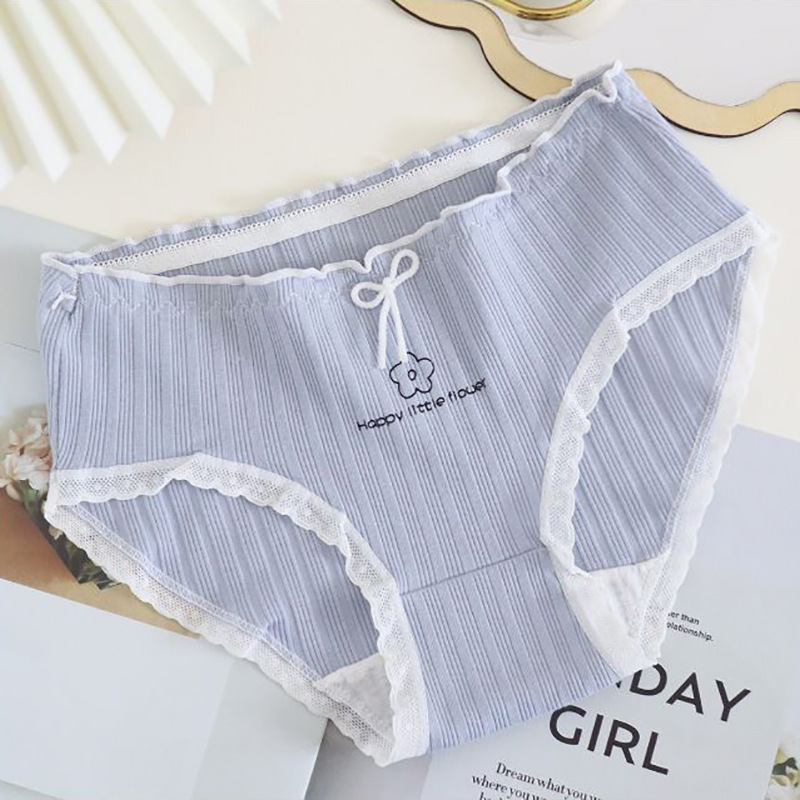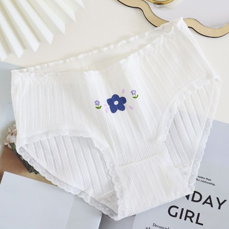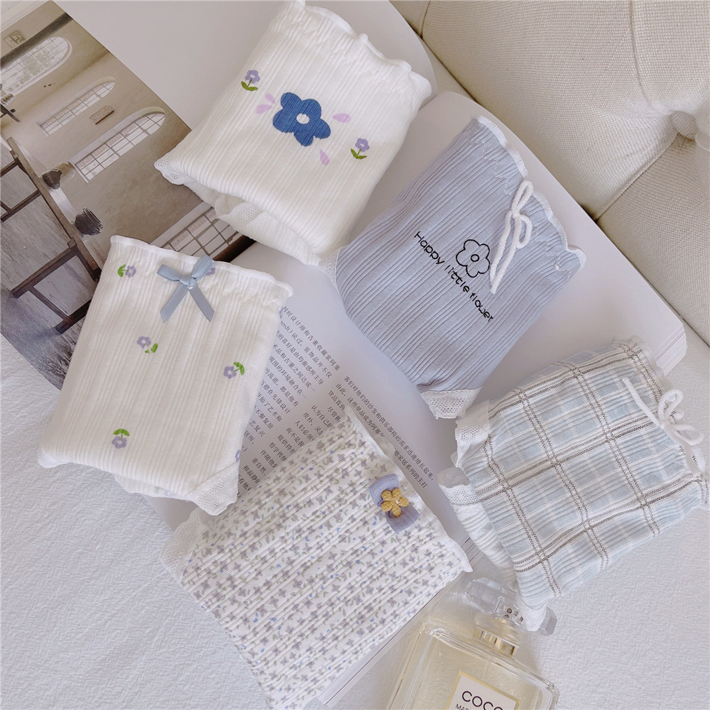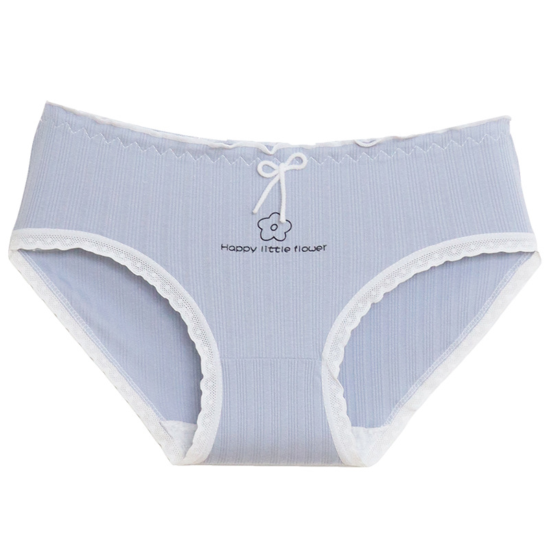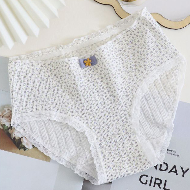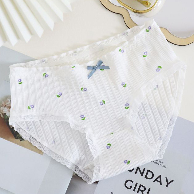 甜美小花~内裤女纯棉中腰田园风透气舒适全棉档螺纹日系三角短裤