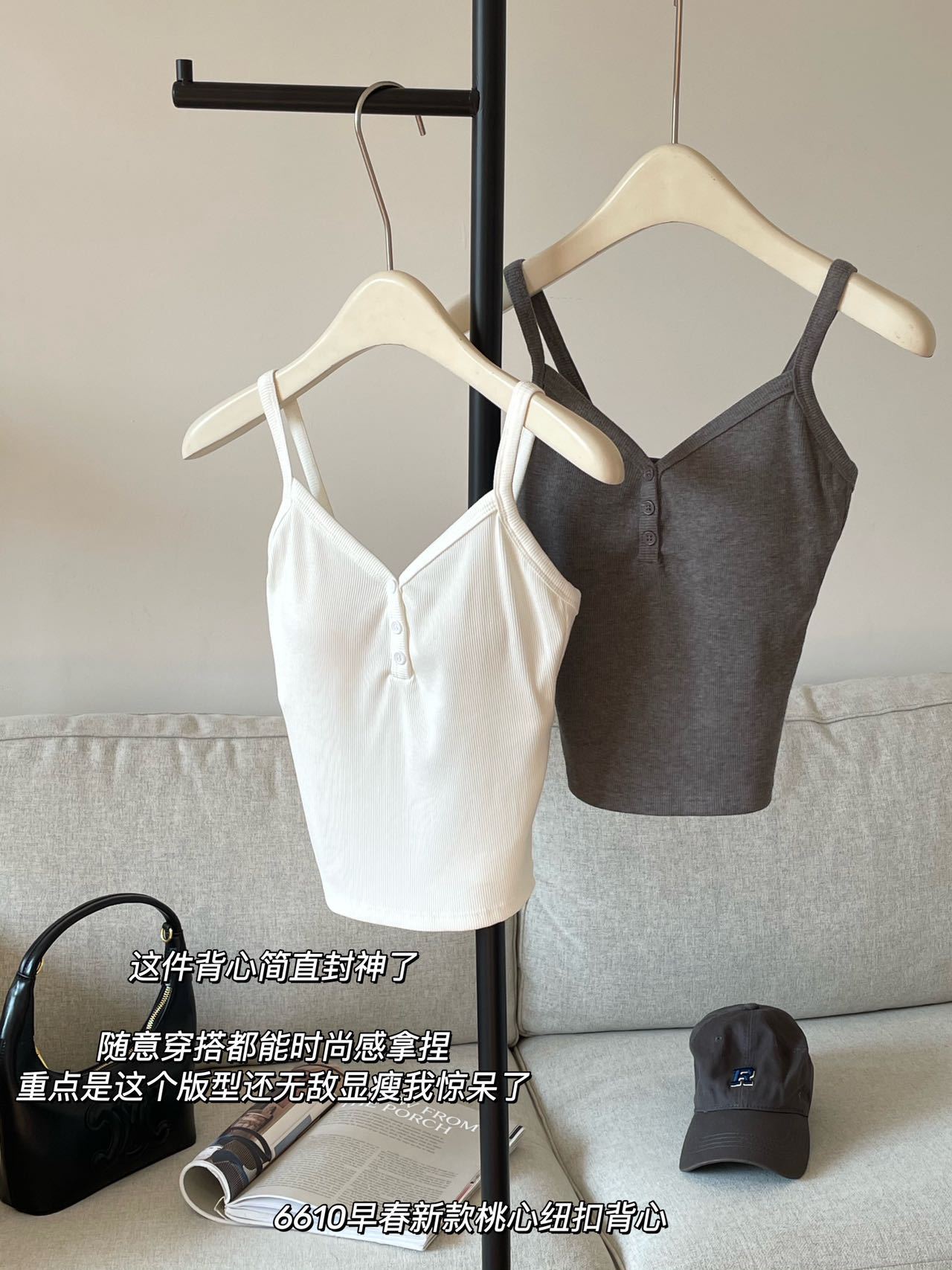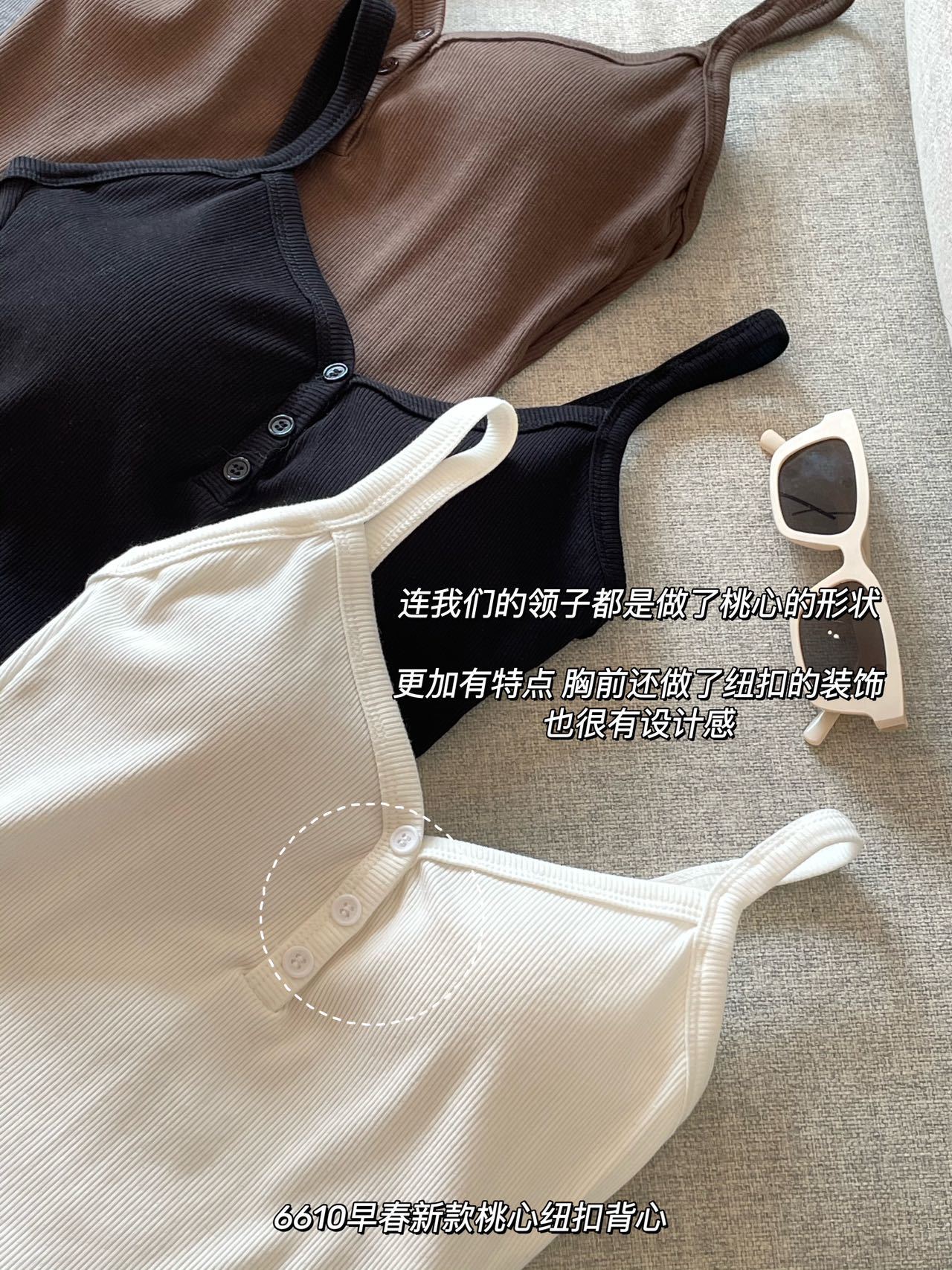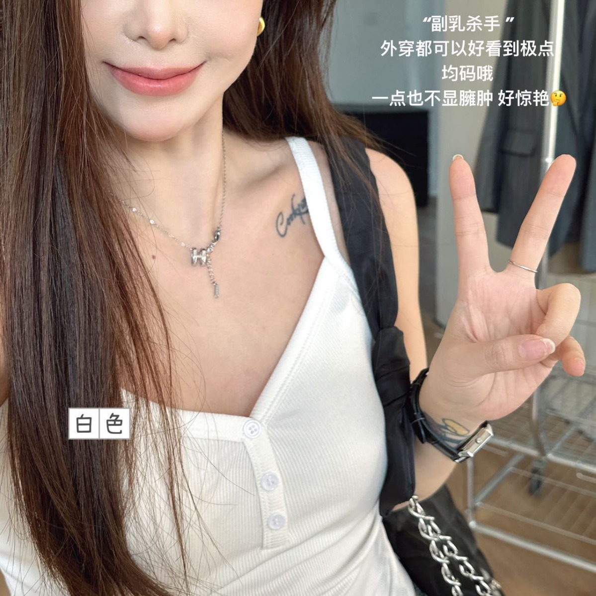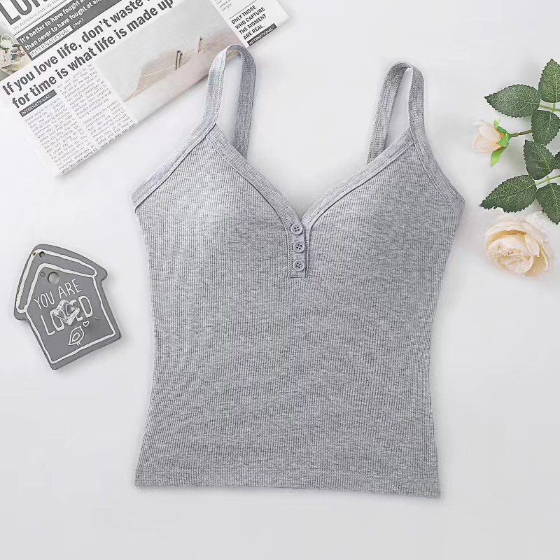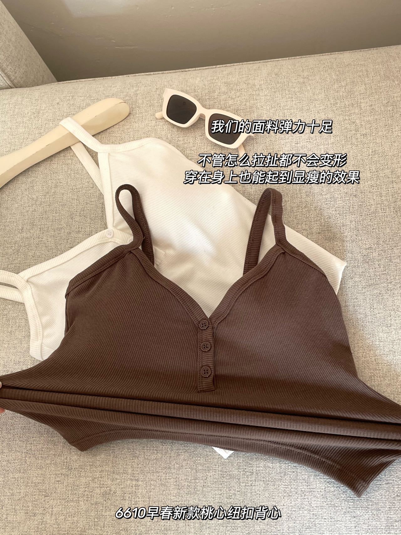 新款V领纯棉背心女带胸垫螺纹纽扣上衣显瘦纯欲内搭美背内衣女夏
