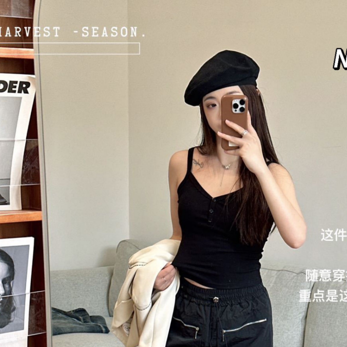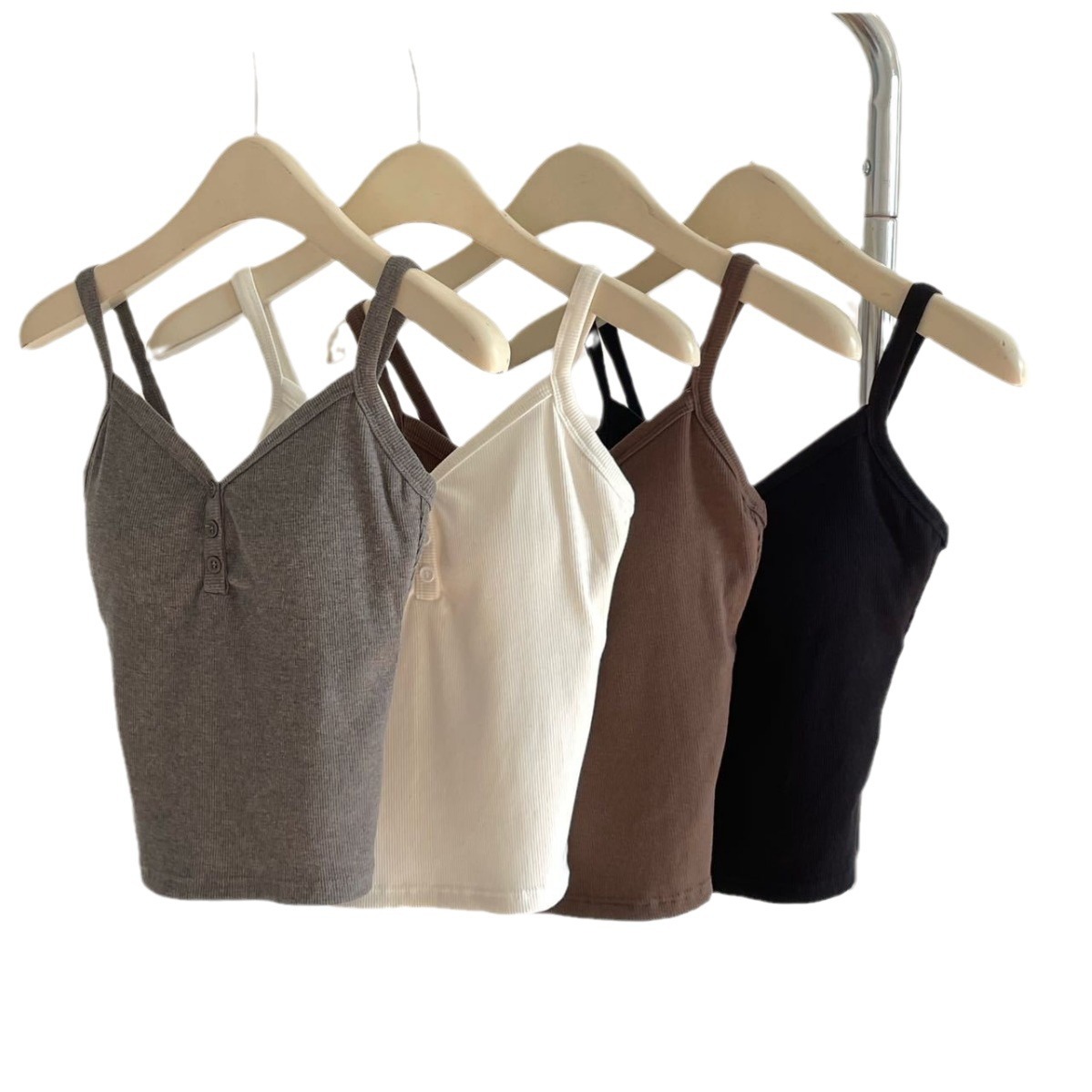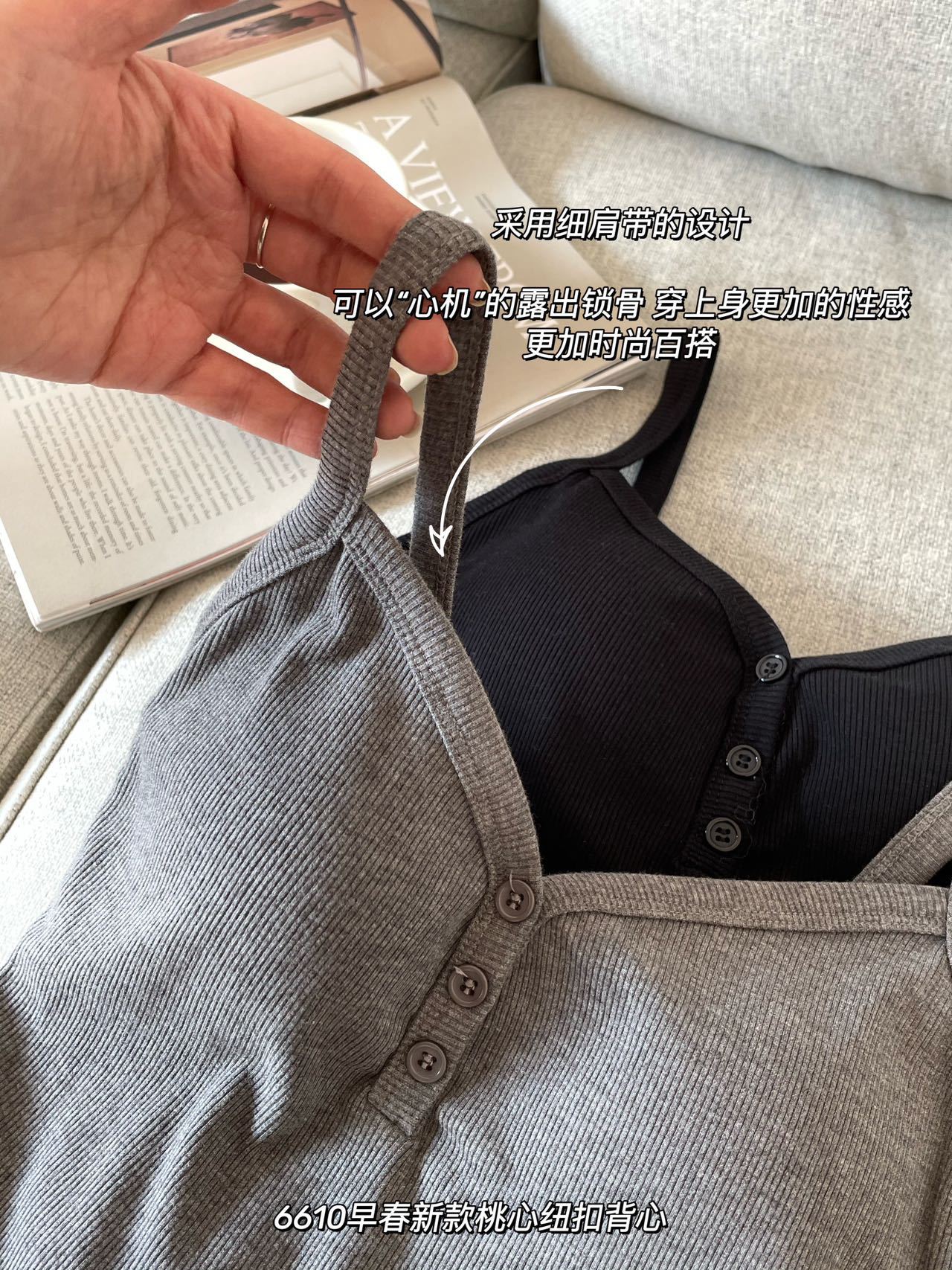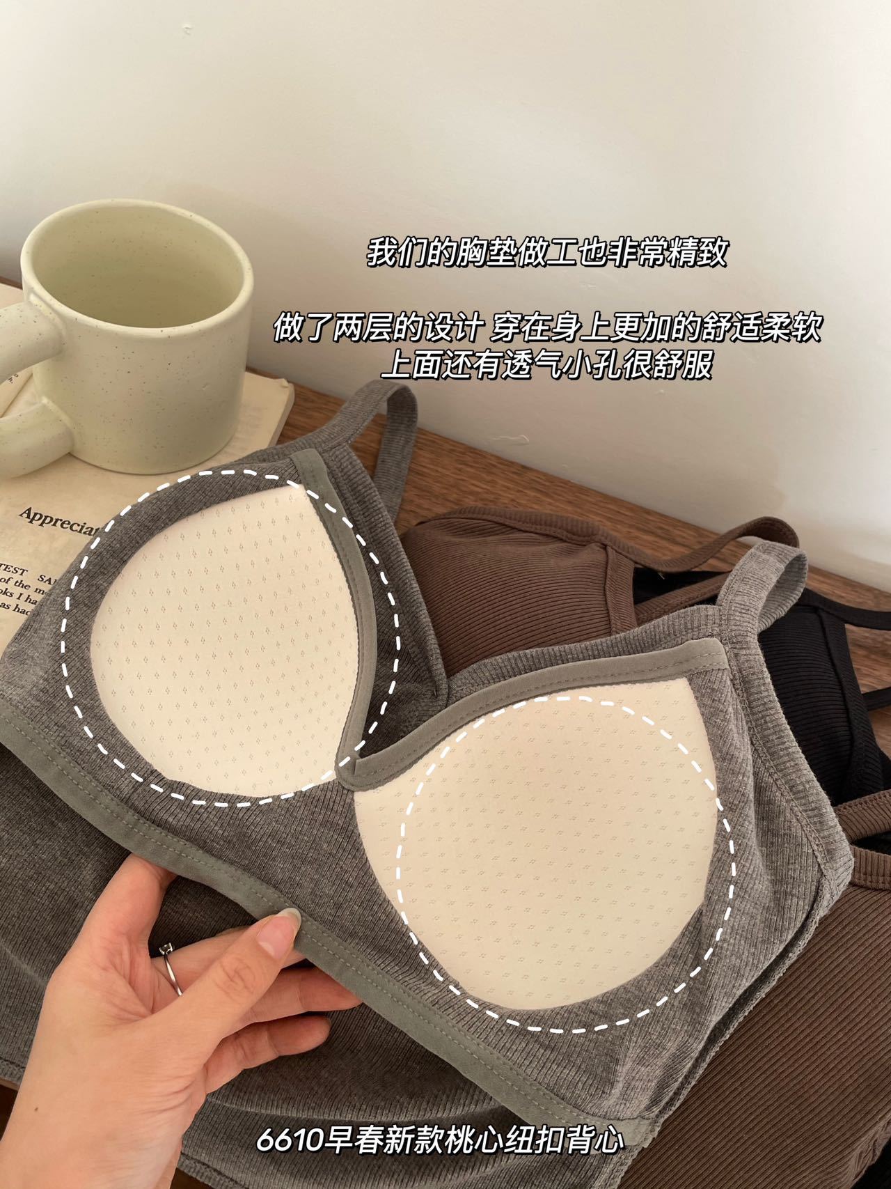 新款V领纯棉背心女带胸垫螺纹纽扣上衣显瘦纯欲内搭美背内衣女夏