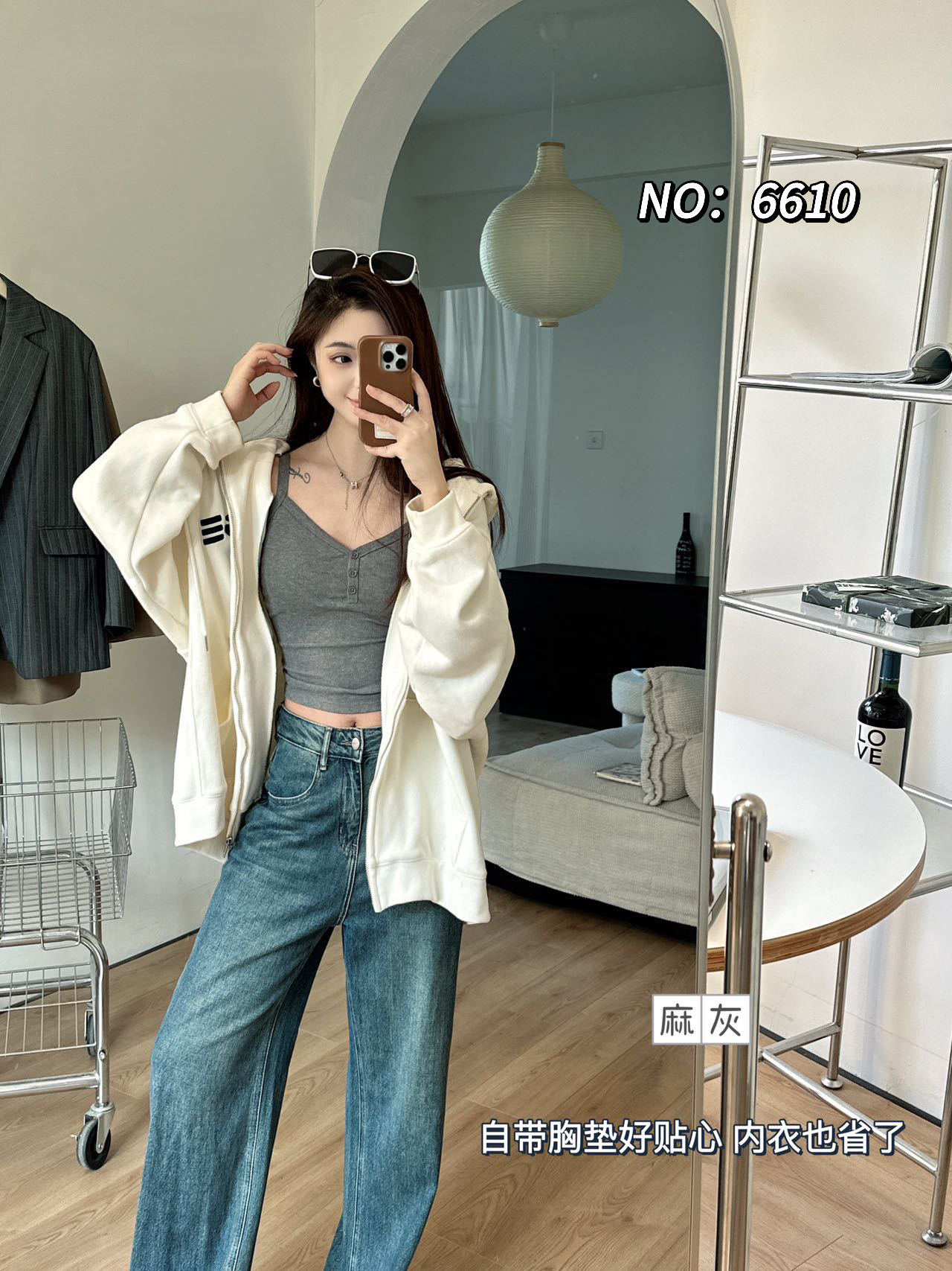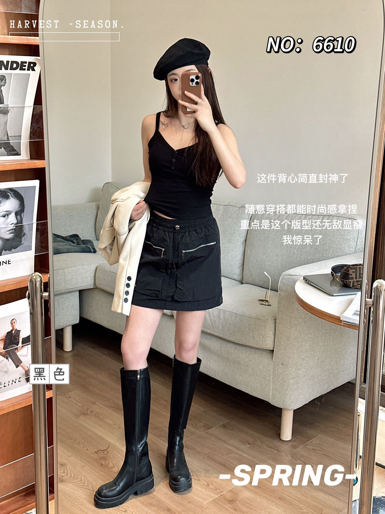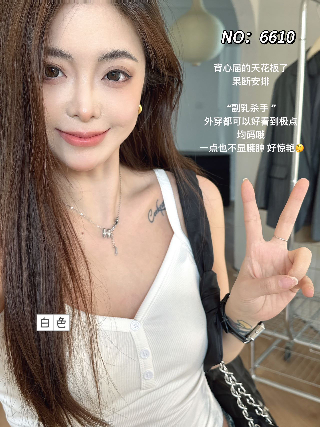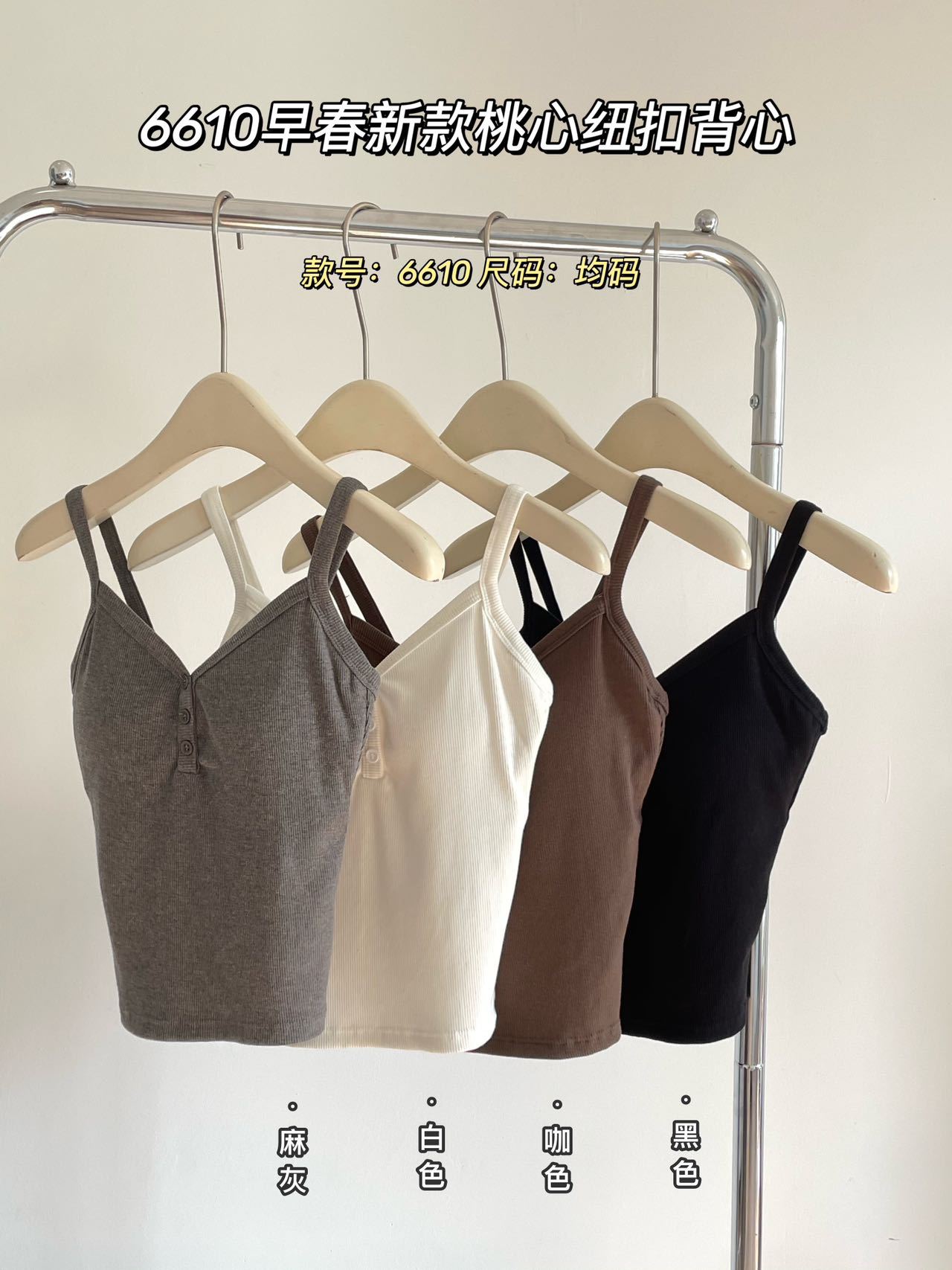 新款V领纯棉背心女带胸垫螺纹纽扣上衣显瘦纯欲内搭美背内衣女夏