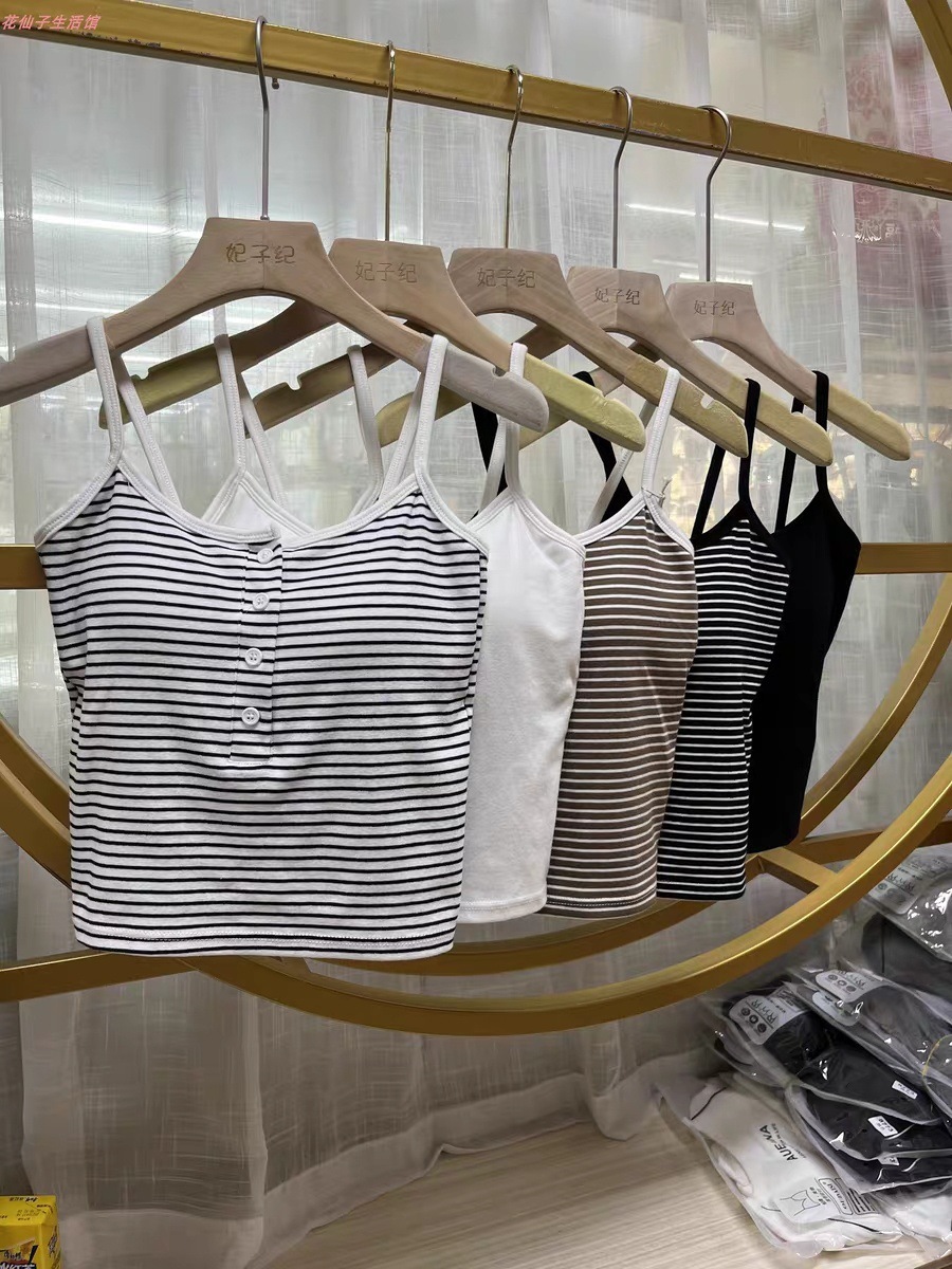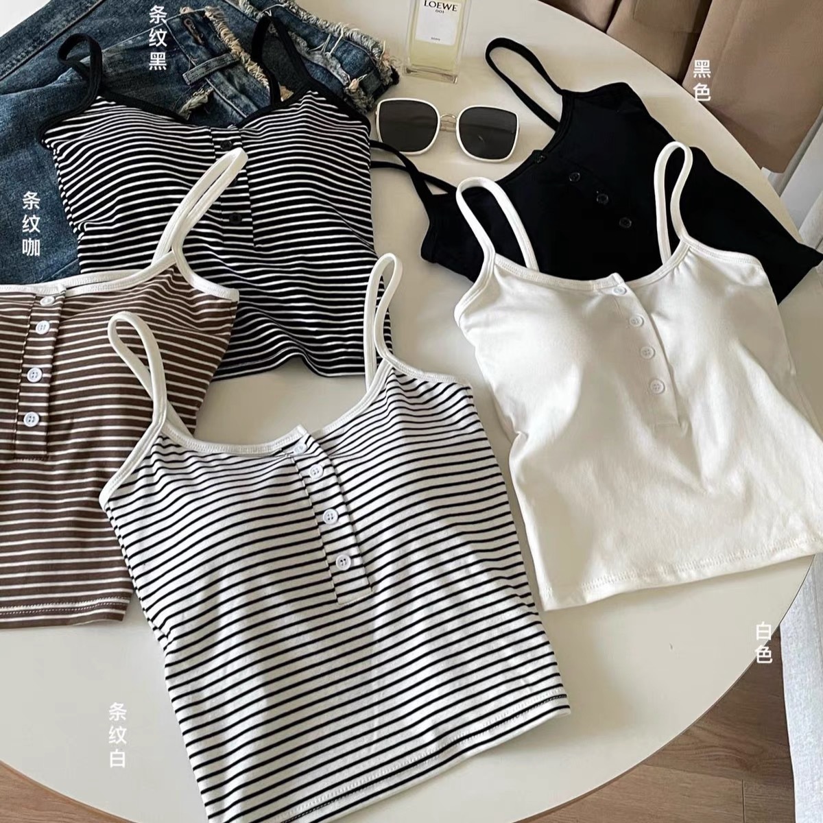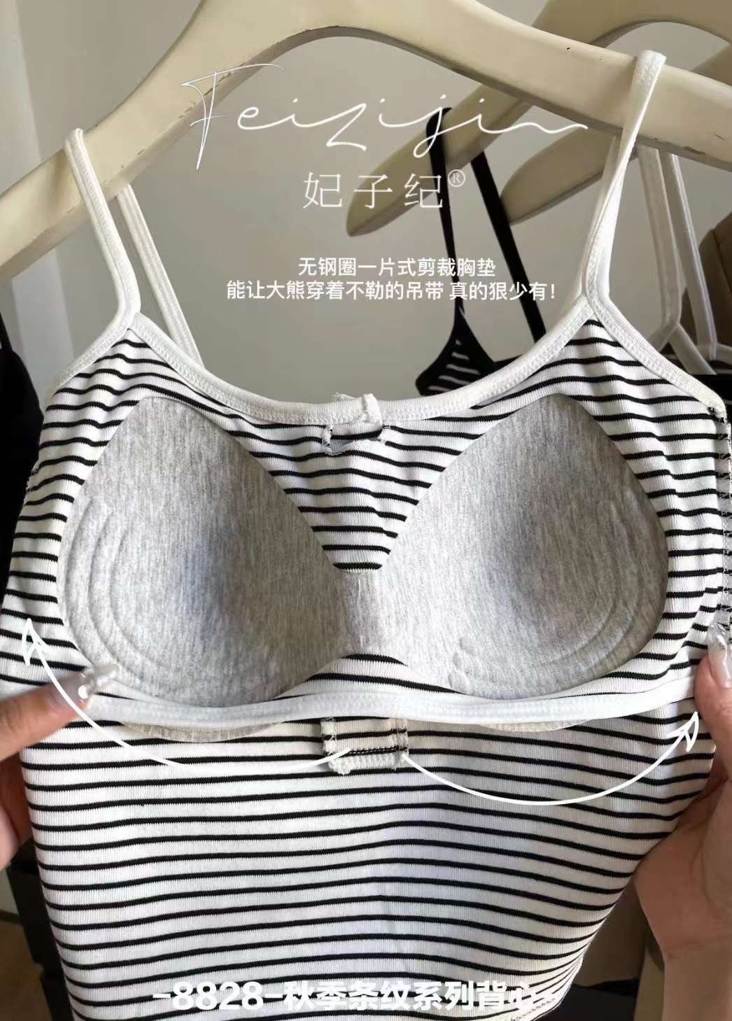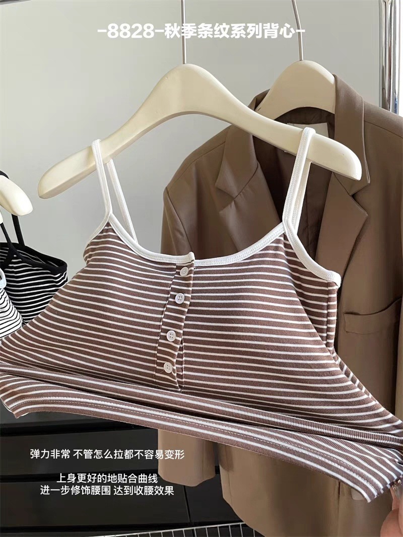 新款条纹小吊带纯棉背心带胸垫设计感秋季内搭上衣舒适透气内衣女
