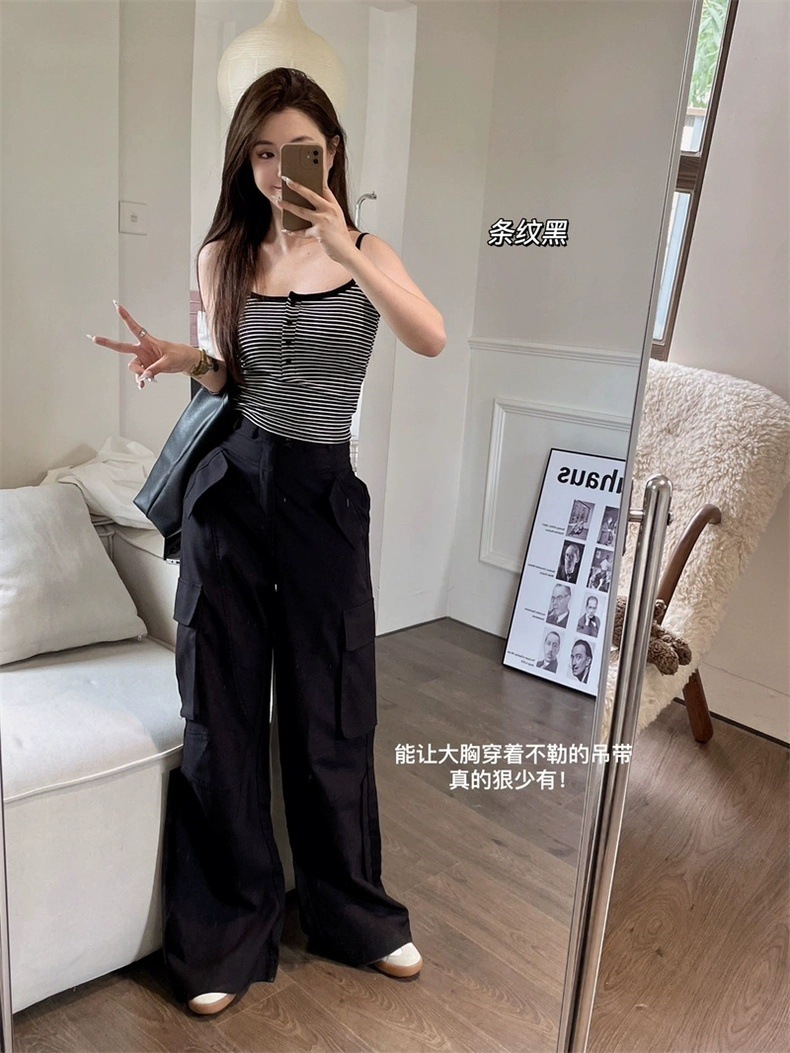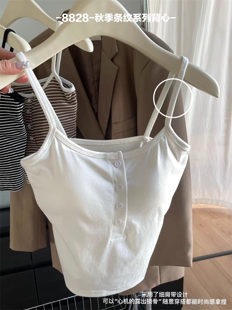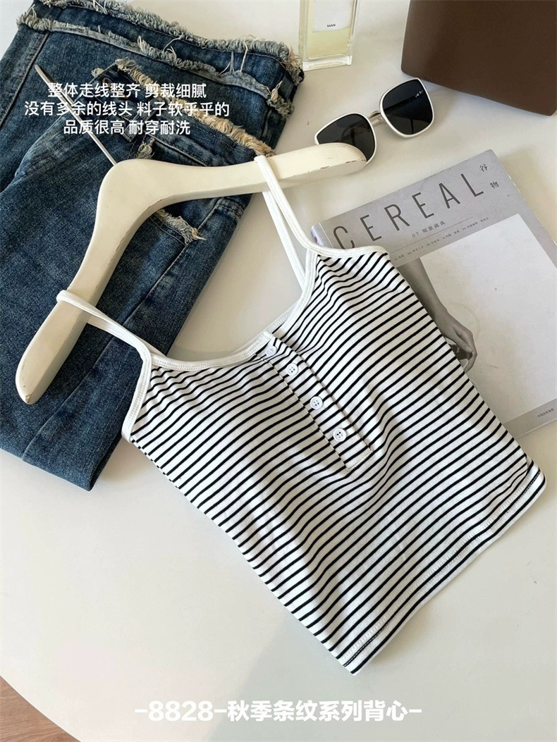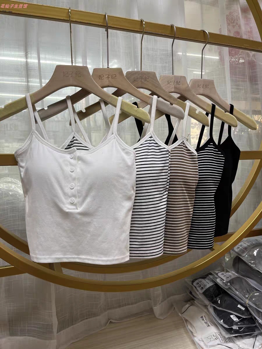 新款条纹小吊带纯棉背心带胸垫设计感秋季内搭上衣舒适透气内衣女