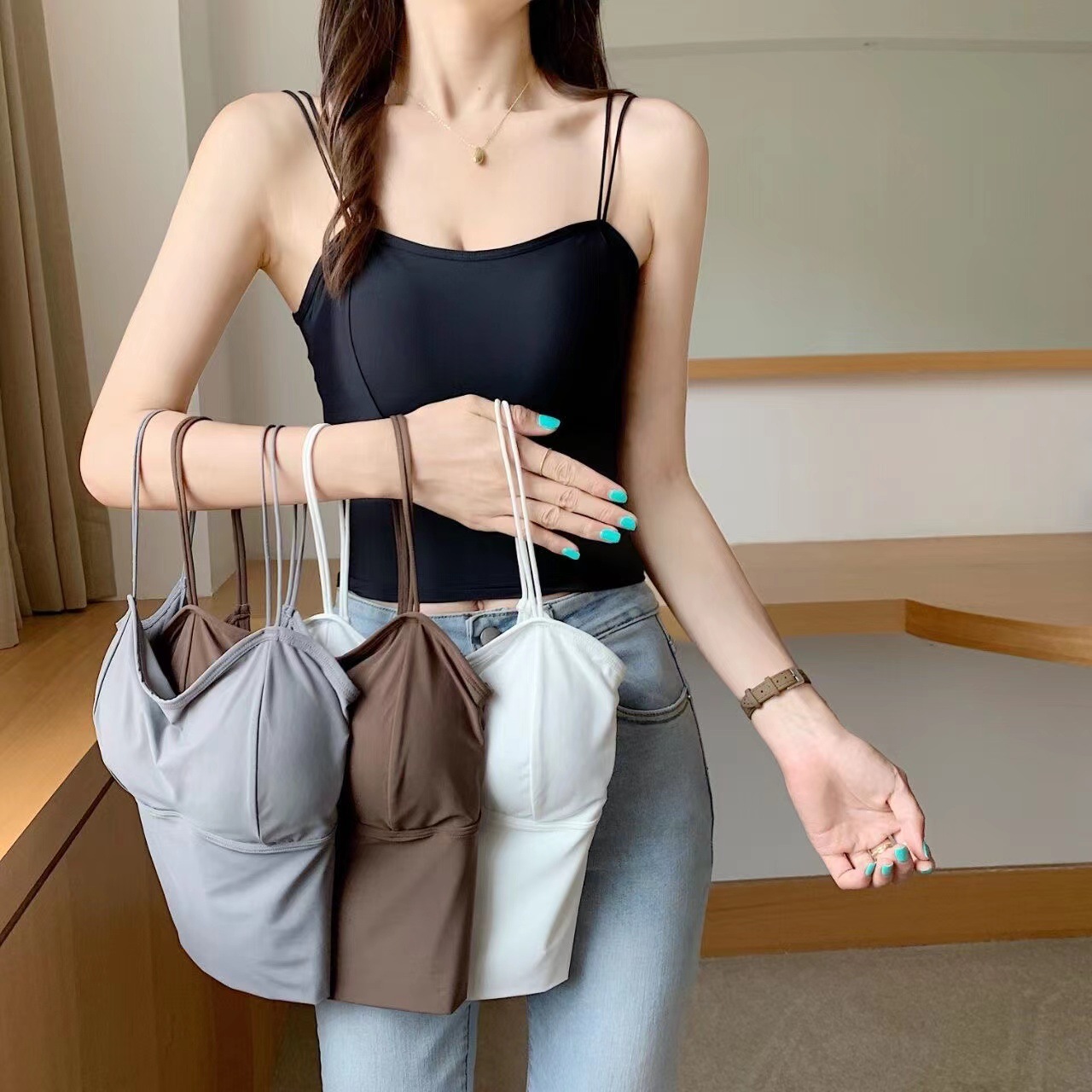 新款冰丝美背吊带背心带胸垫舒适透气裹胸外穿修身百搭运动内衣女