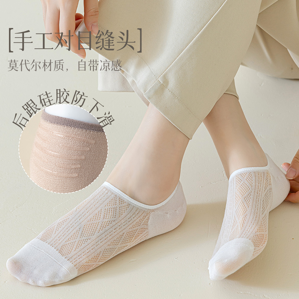 袜子女冰丝网眼透气船袜女士抗吸汗不掉跟浅口超薄夏季款短袜女
