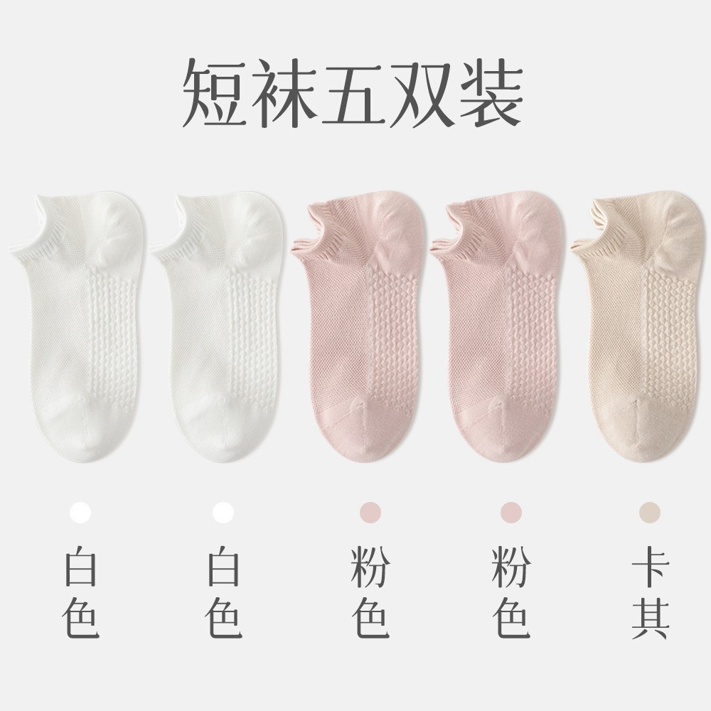纯棉袜子女春夏短袜薄款网眼透气船袜不掉跟女士浅口全棉袜子批发