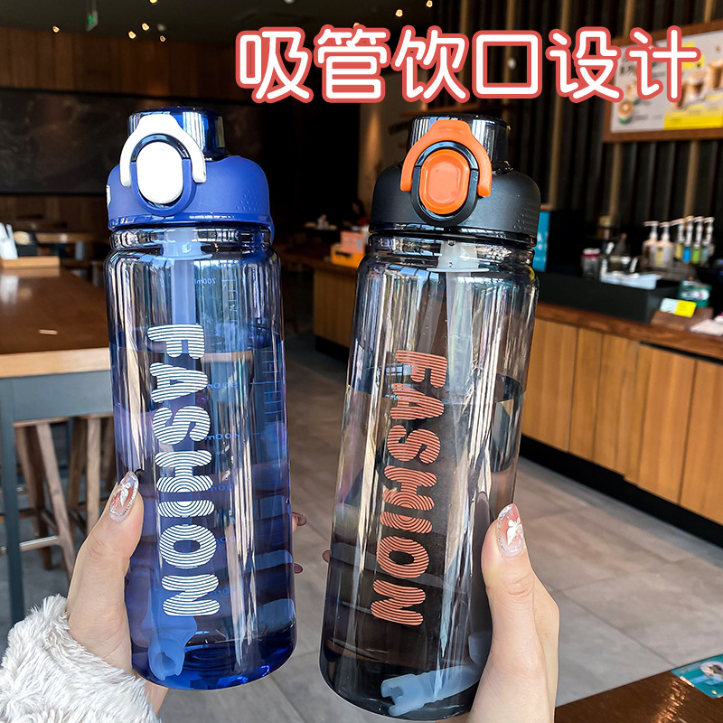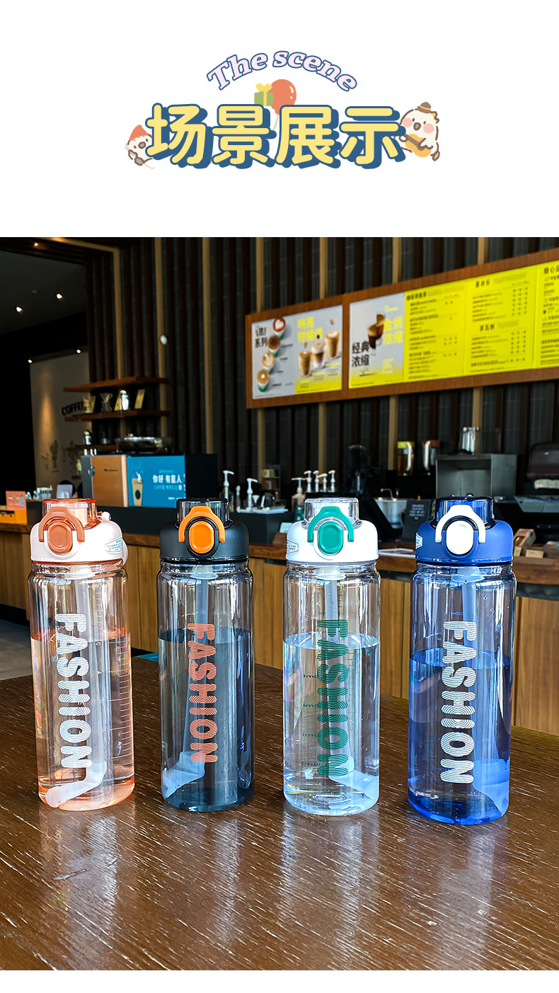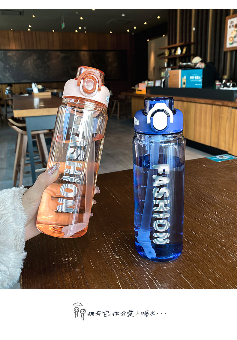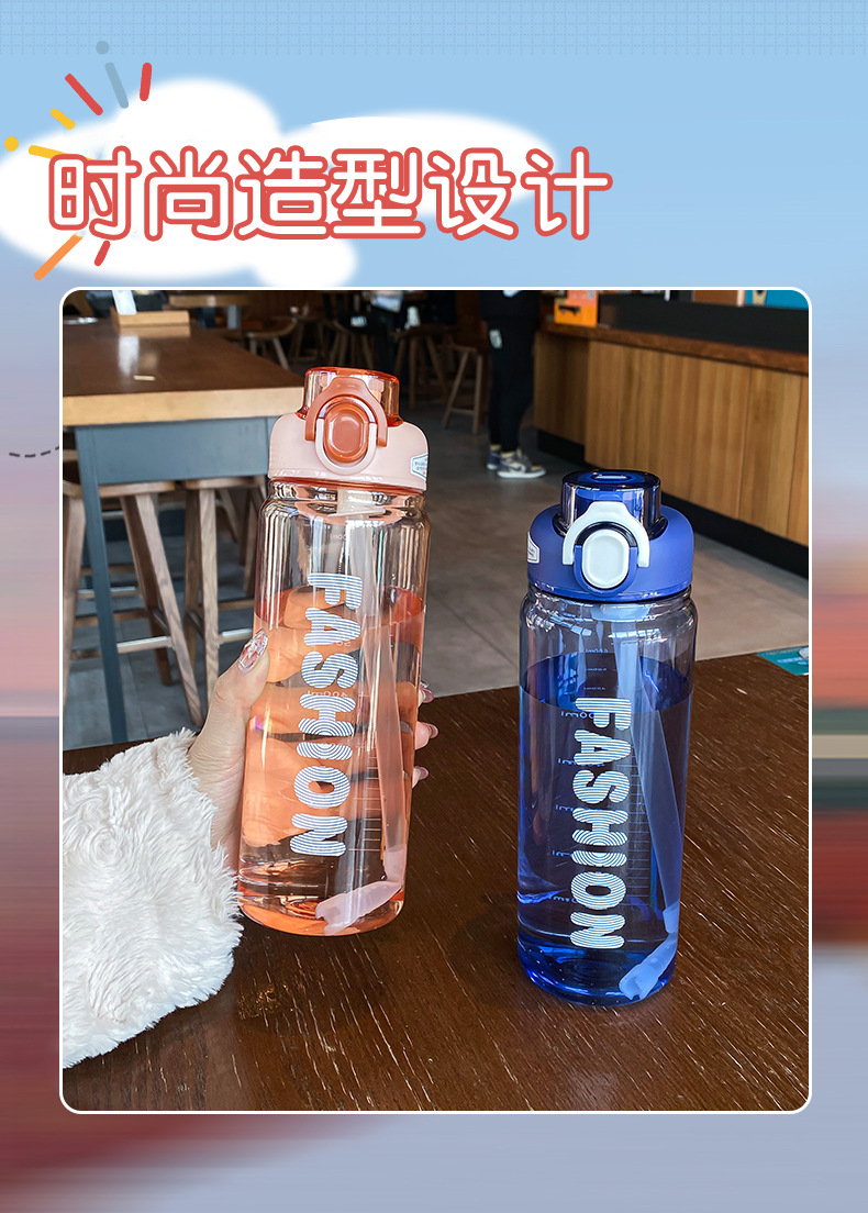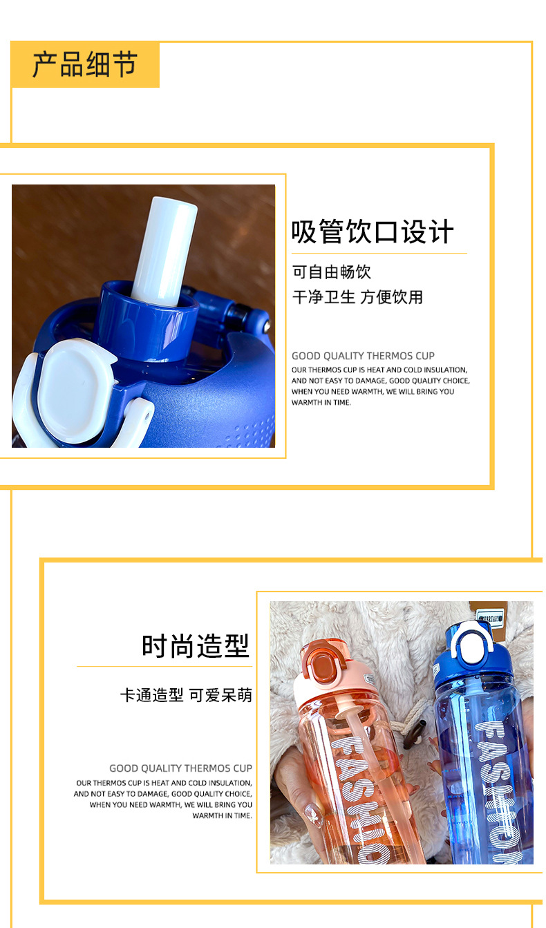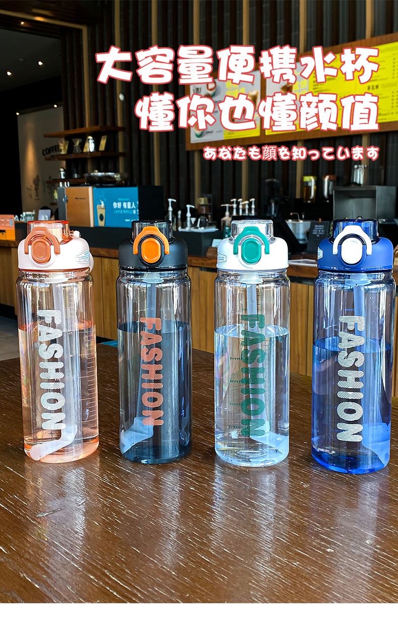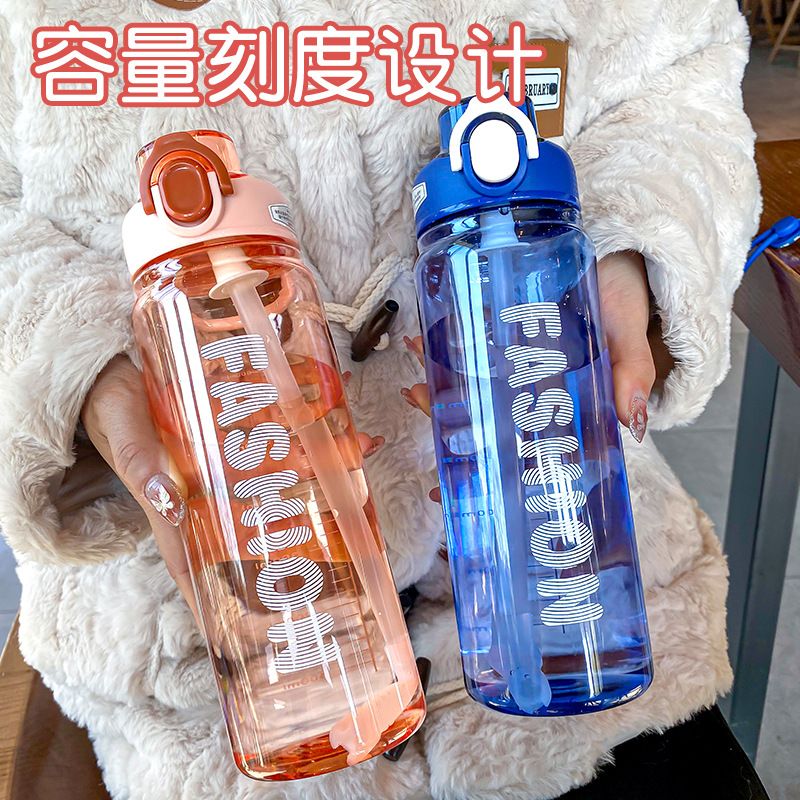 时尚塑料杯夏季大容量带刻度吸管杯户外便携学生运动水瓶随行杯
