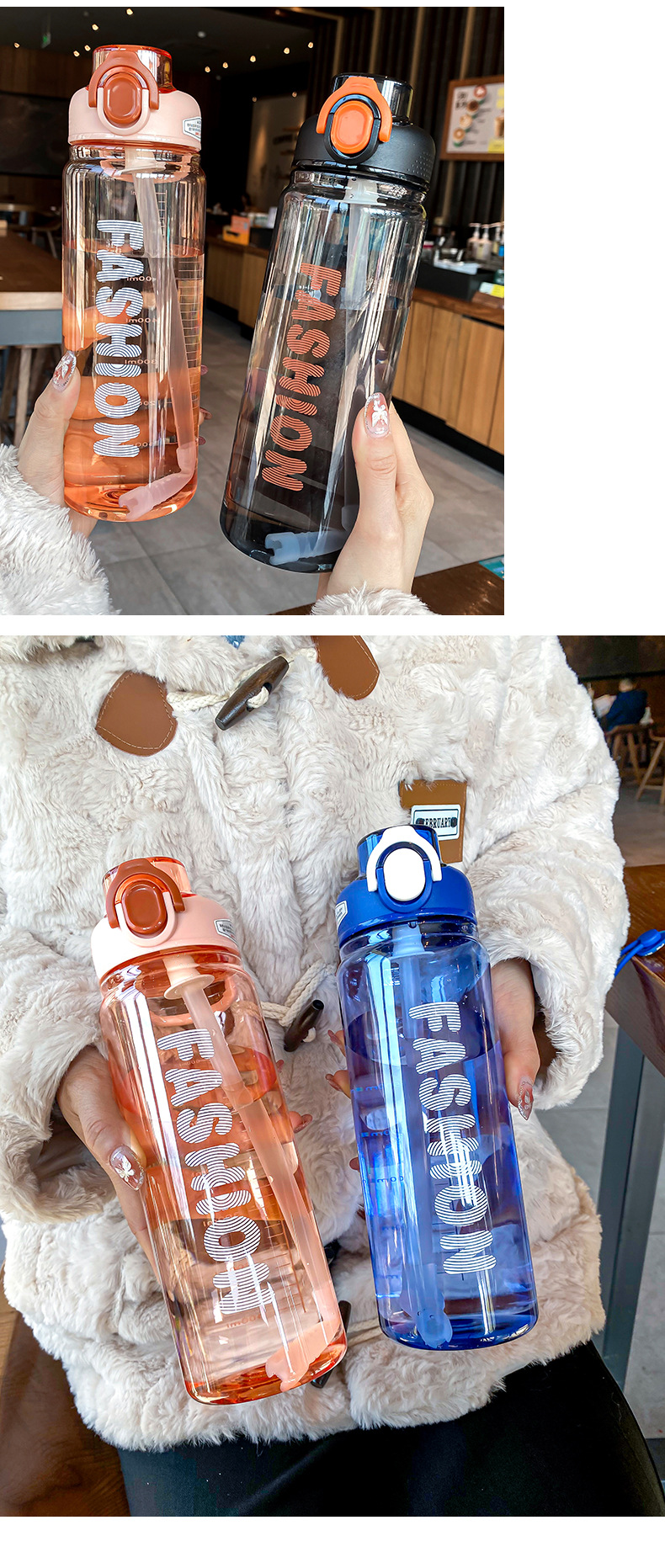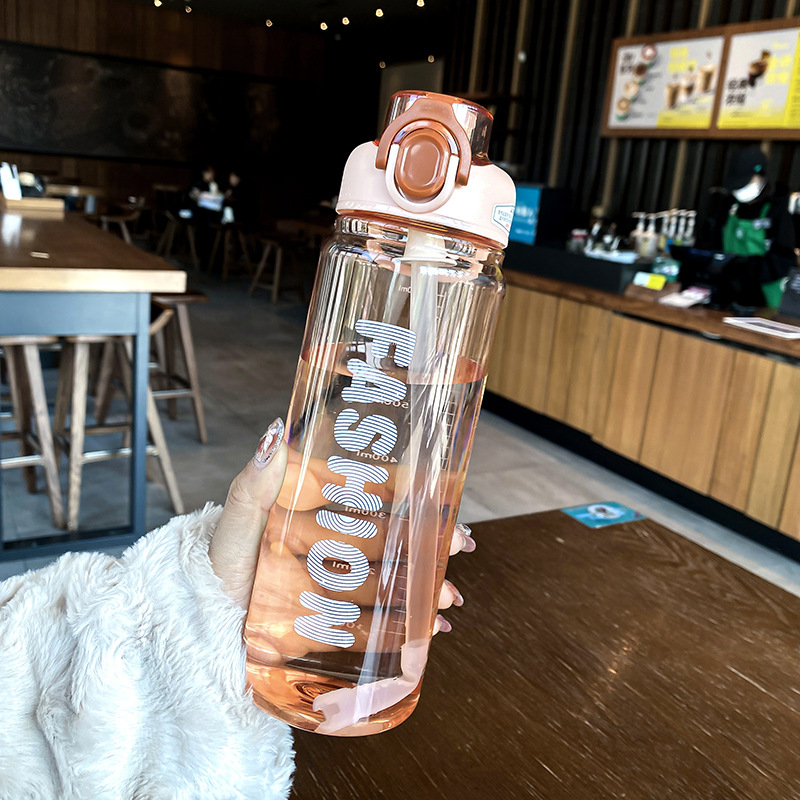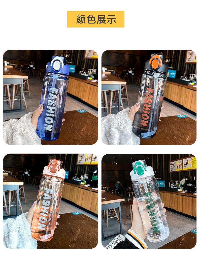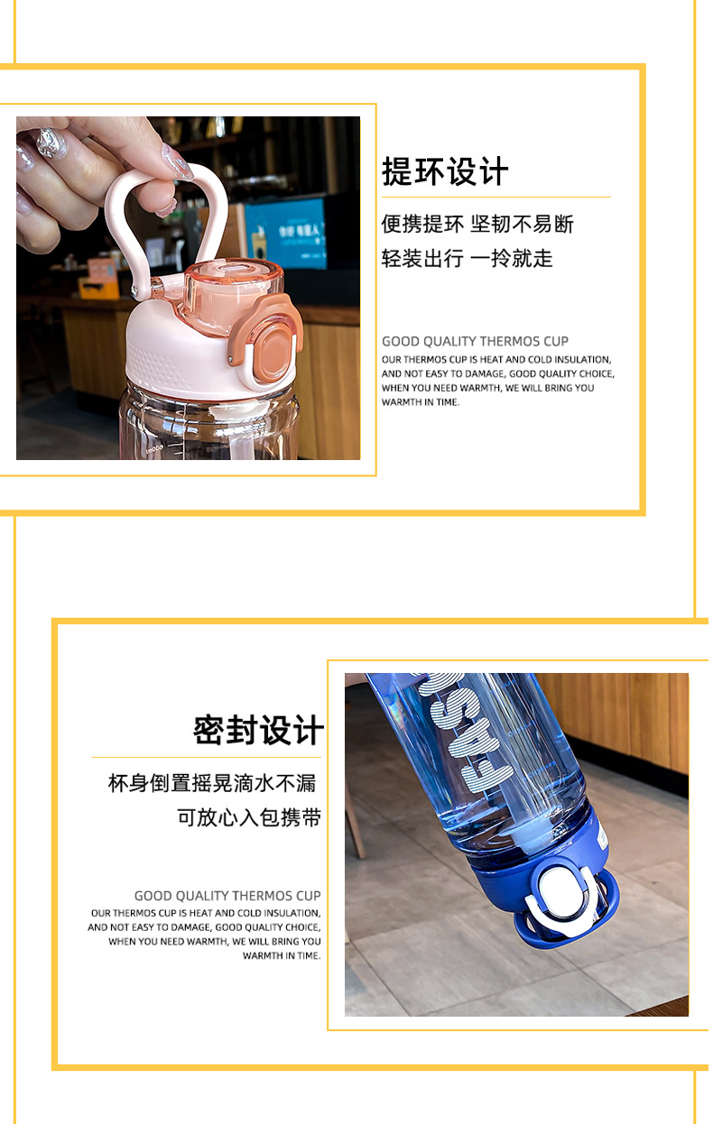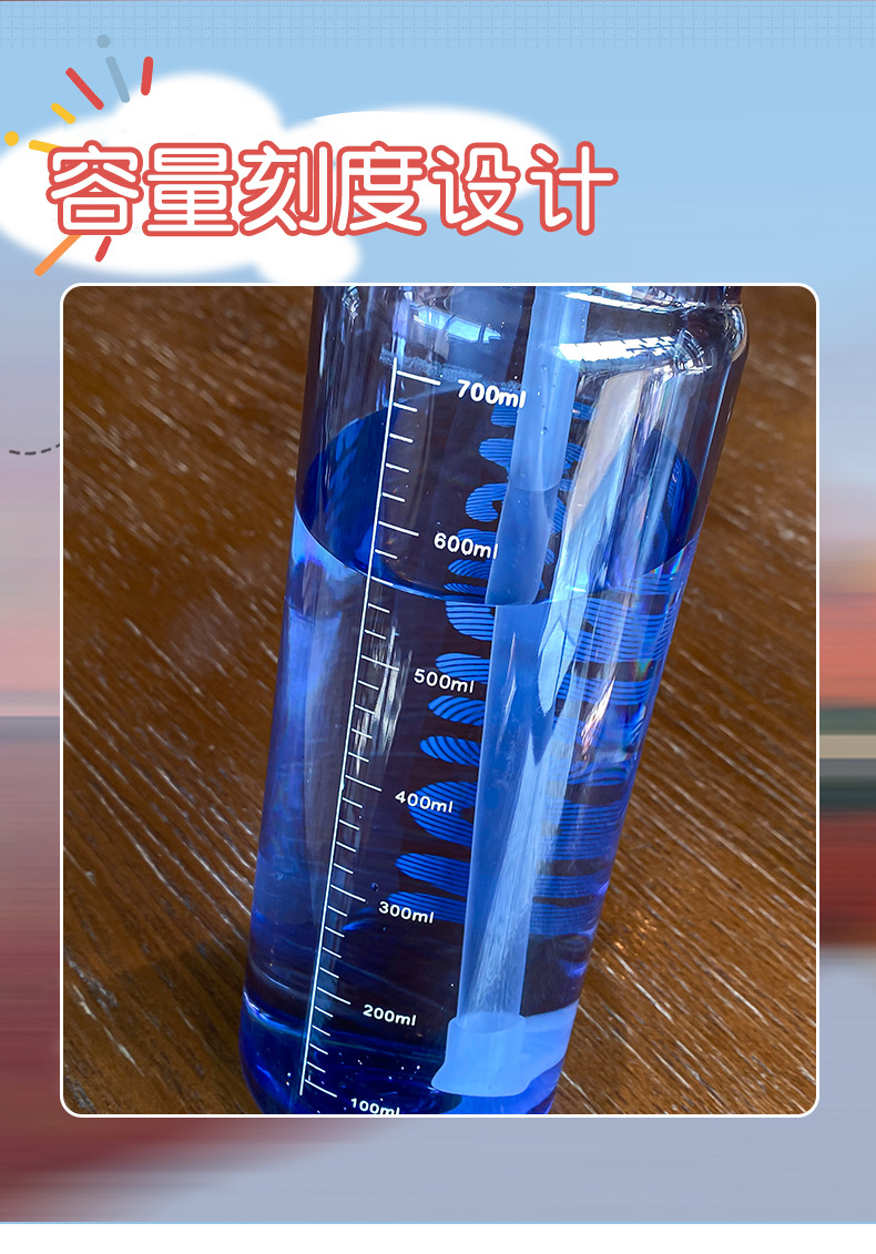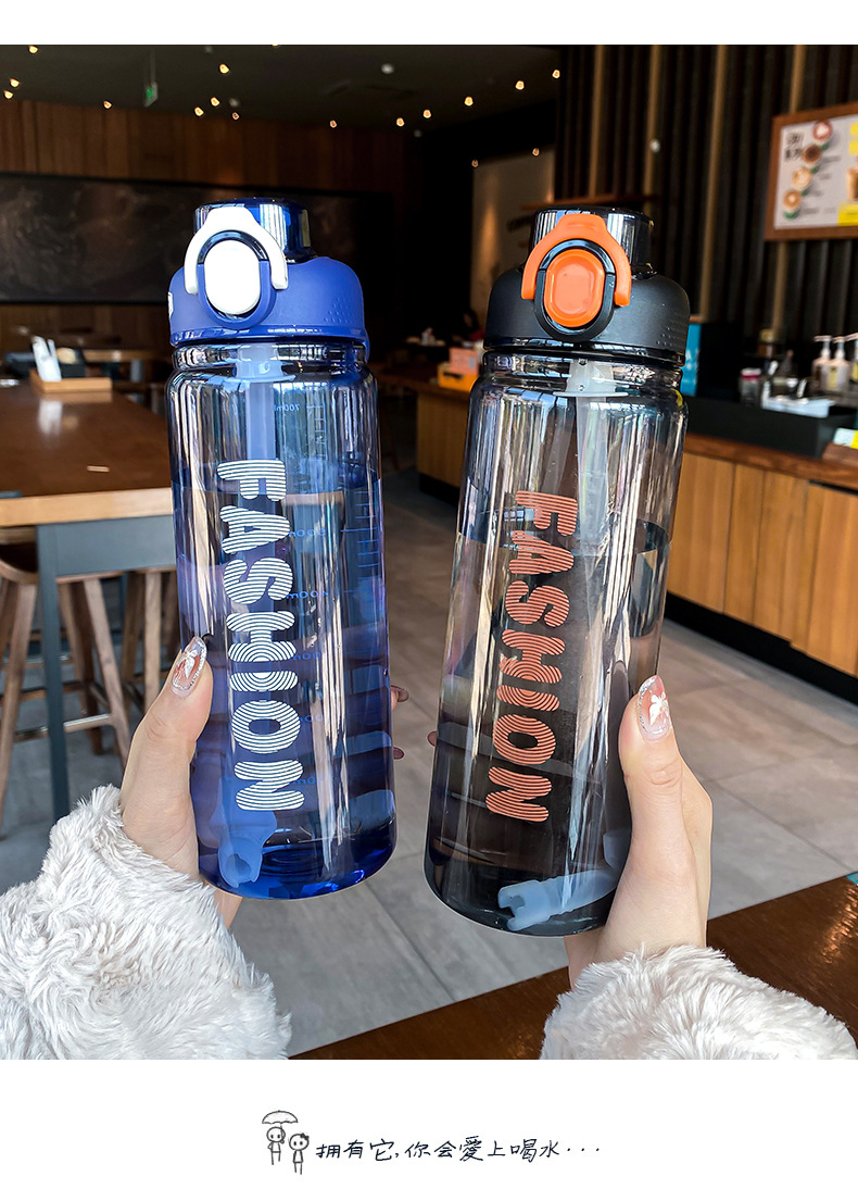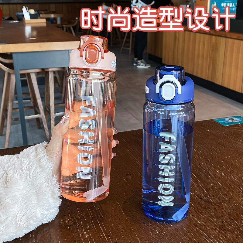 时尚塑料杯夏季大容量带刻度吸管杯户外便携学生运动水瓶随行杯
