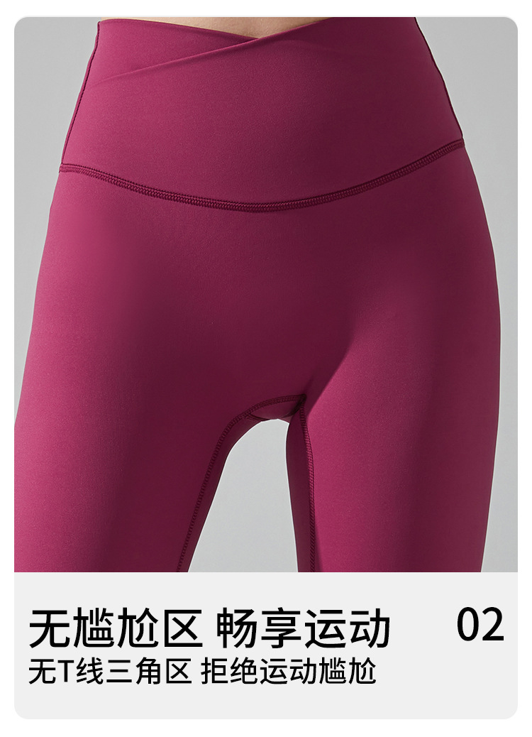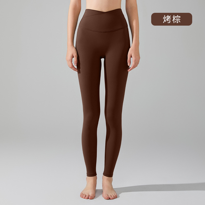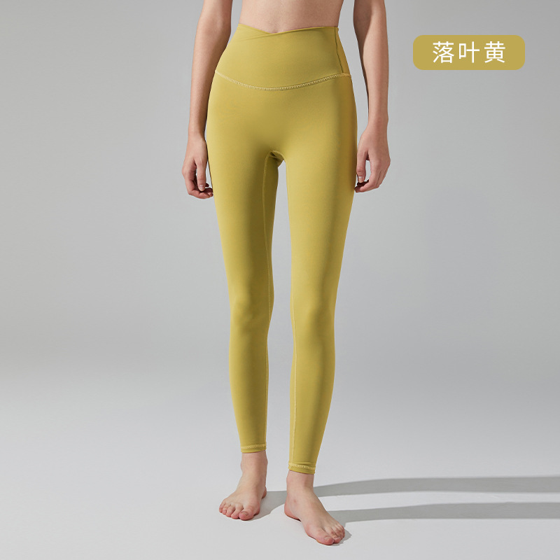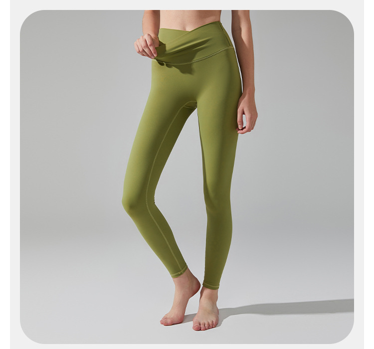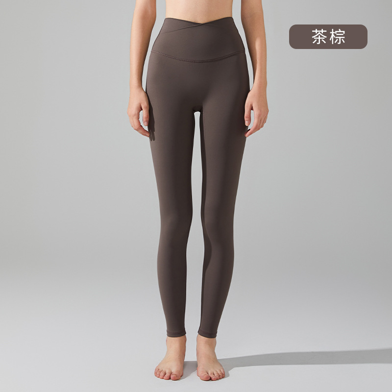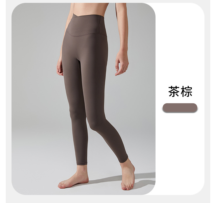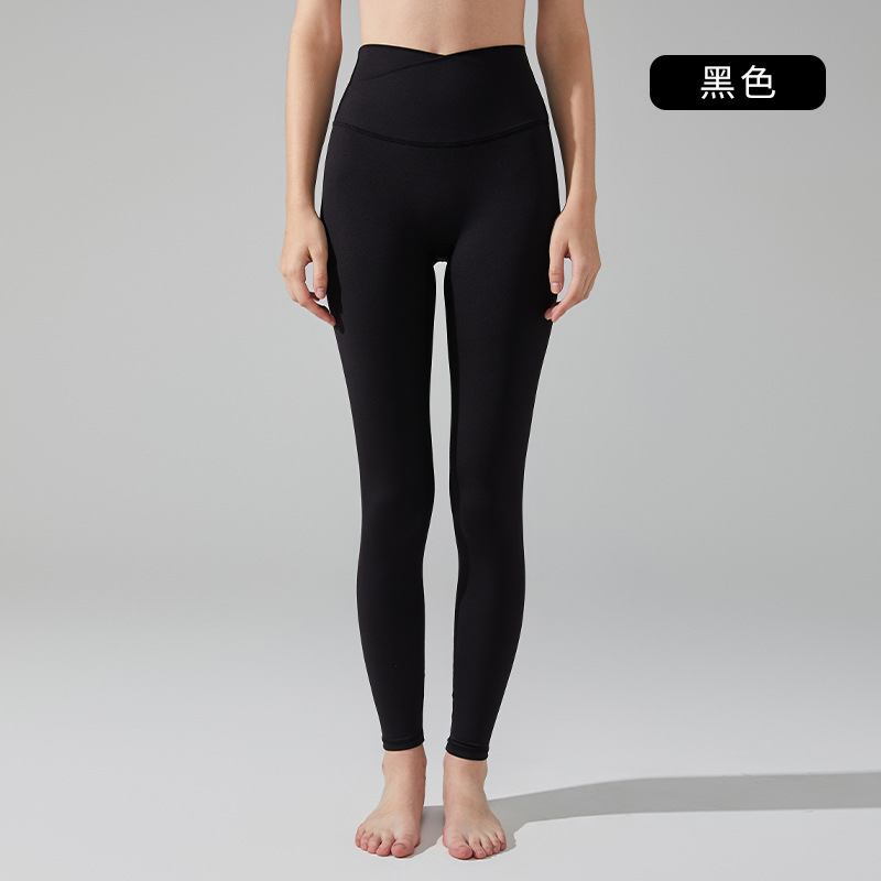 瑜伽服女紧身无痕健身裤交叉高腰收腹运动提臀裸感瑜伽裤蜜桃