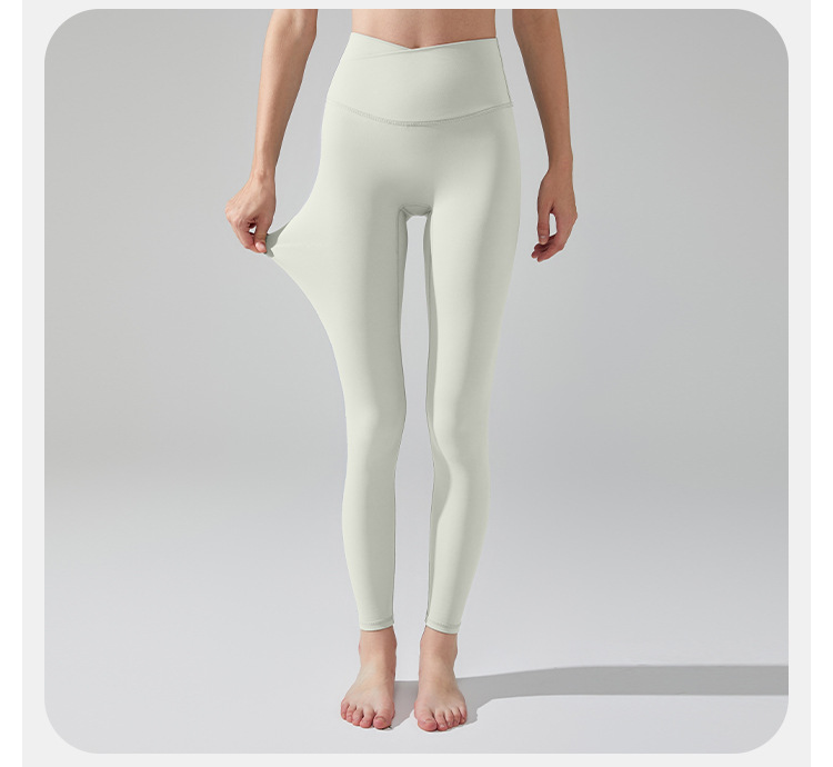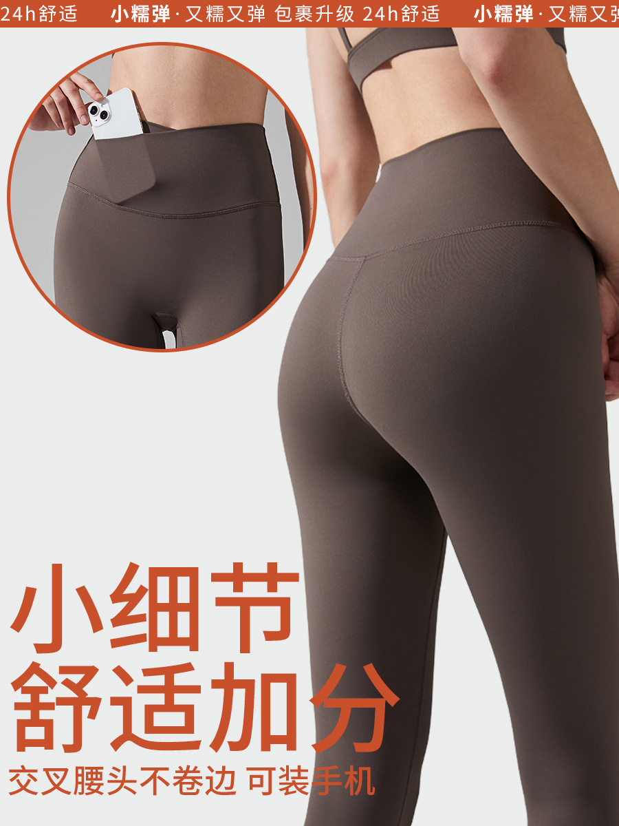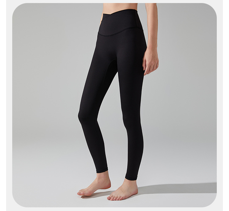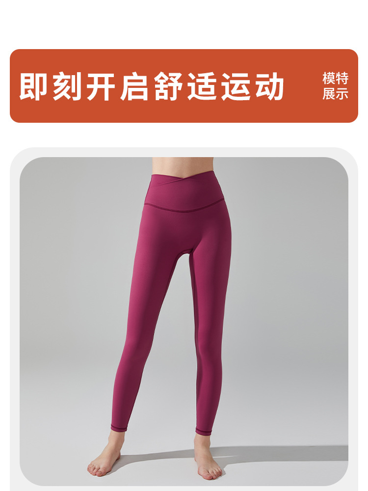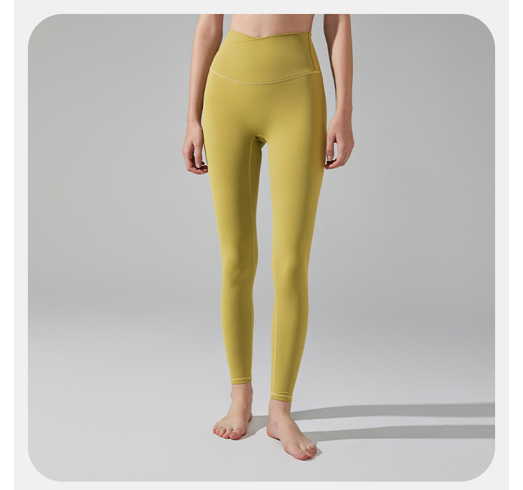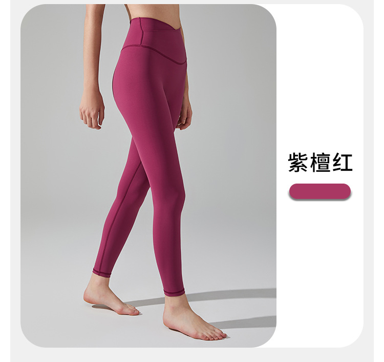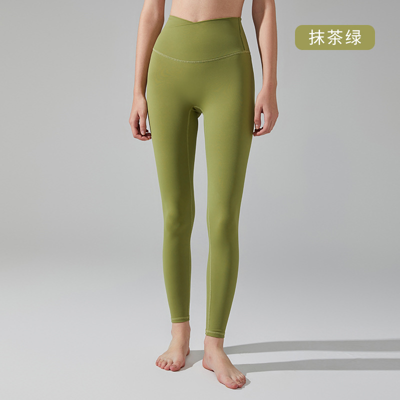 瑜伽服女紧身无痕健身裤交叉高腰收腹运动提臀裸感瑜伽裤蜜桃