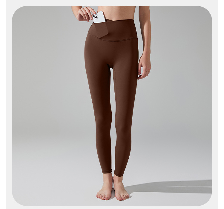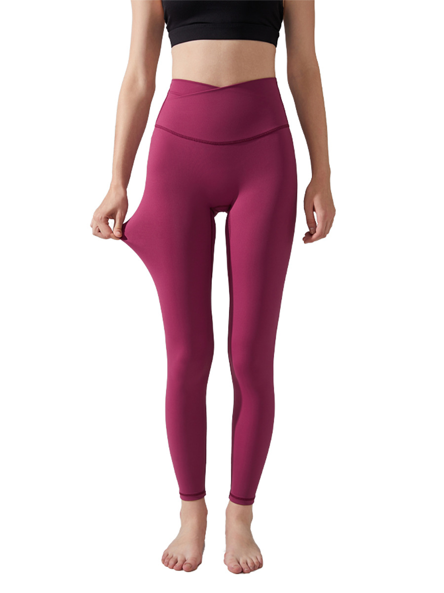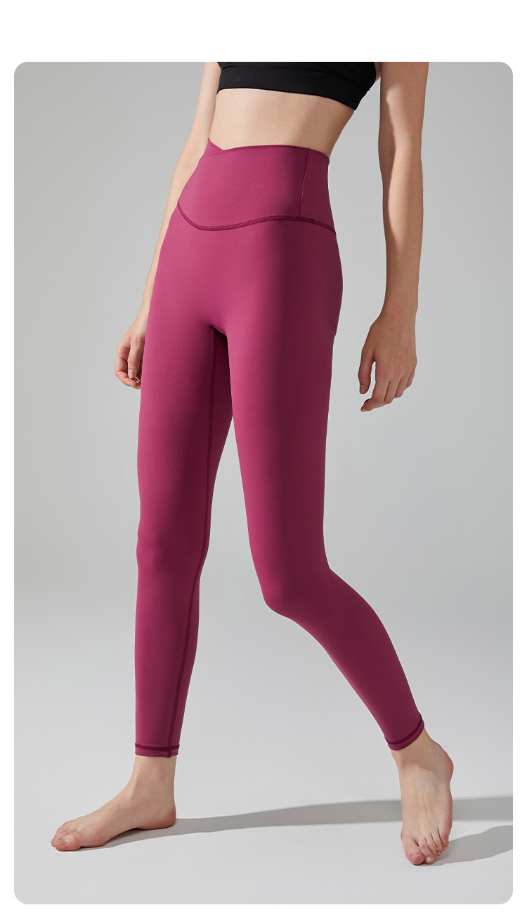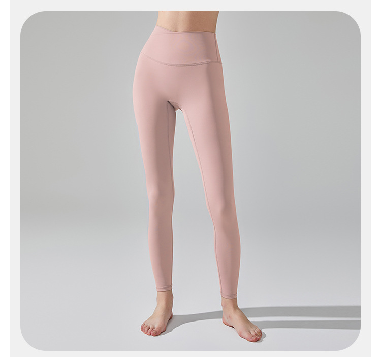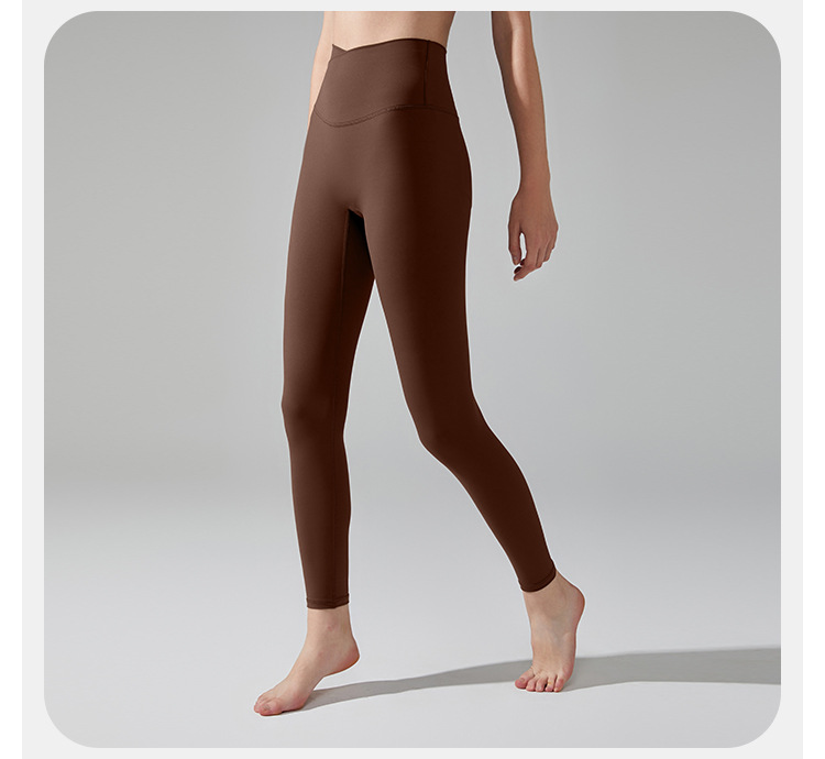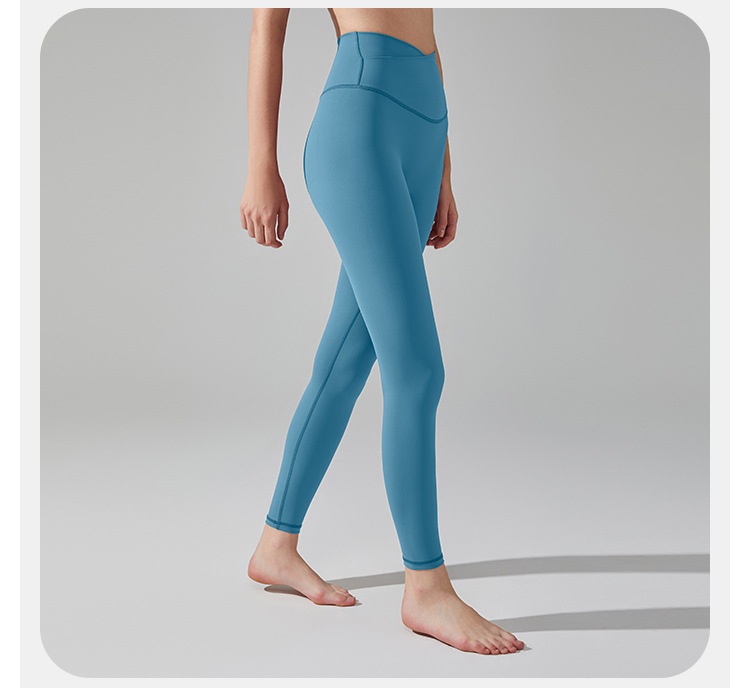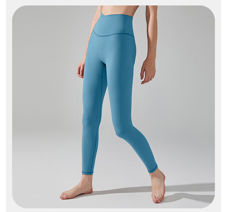 瑜伽服女紧身无痕健身裤交叉高腰收腹运动提臀裸感瑜伽裤蜜桃